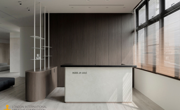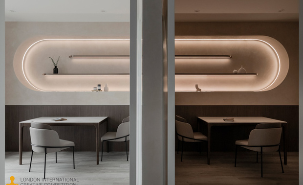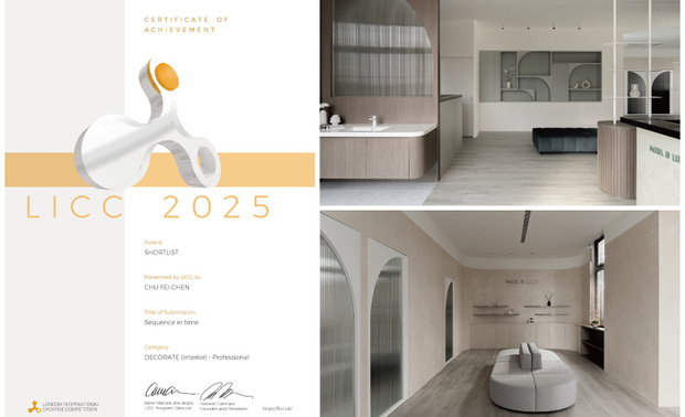 全球指标性设计大奖London International Creative Competition(英国伦敦国际创意大赛,简称LICC),于2006年开展至今,每年皆向多国设计好手发出邀请,藉由评选出当中佼佼之作,引领建筑、绘画、影像等11大创作领域齐步向前!擎森设计 设计总监 陈楚扉 此次以母婴摄影品牌空间《时序》参赛,从孕育生命的意象汲取灵感,以流动曲线串联场域、大地色系铺陈温暖基调,并搭配特殊涂料和实木格栅等环保建材,在细腻的光影层次中,将母爱的包覆感转译为身历其境的感官叙事。从入口延伸至洽谈区,每处转折皆以弧面柔化处理,引导来访者安心游走其间,卸下紧绷情绪,沉浸于静谧而充满生机的氛围,作品理念与大赛核心精神高度契合,荣获本届「shortlist」殊荣!