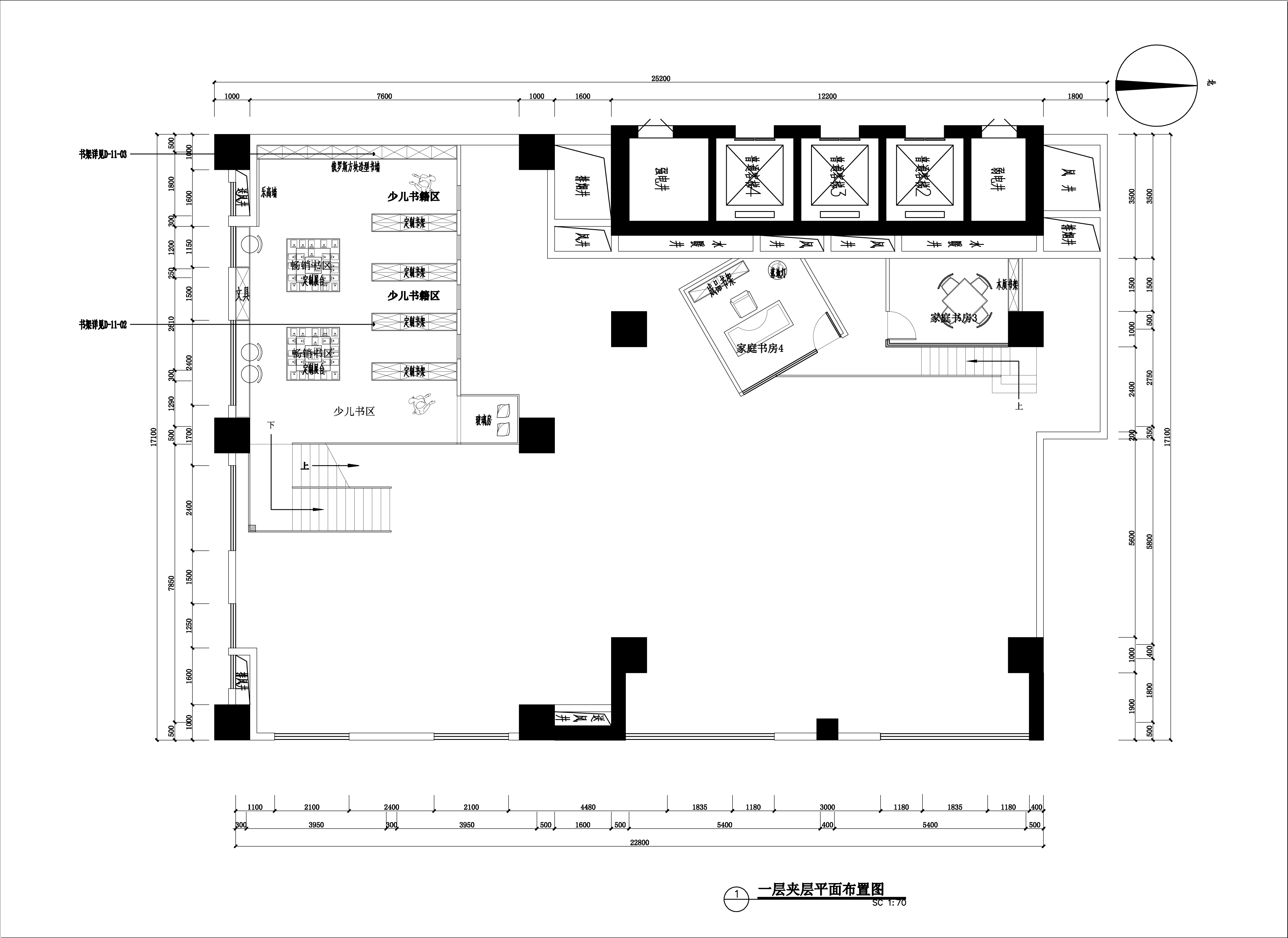 空间布局:在硬性要求上,甲方提出四点,第一需要有第二入口,可以从公寓楼内直通书店;第二需要五个独立的家庭书房;第三需要有读书沙龙活动区;第四需要有单独隔离的儿童区。