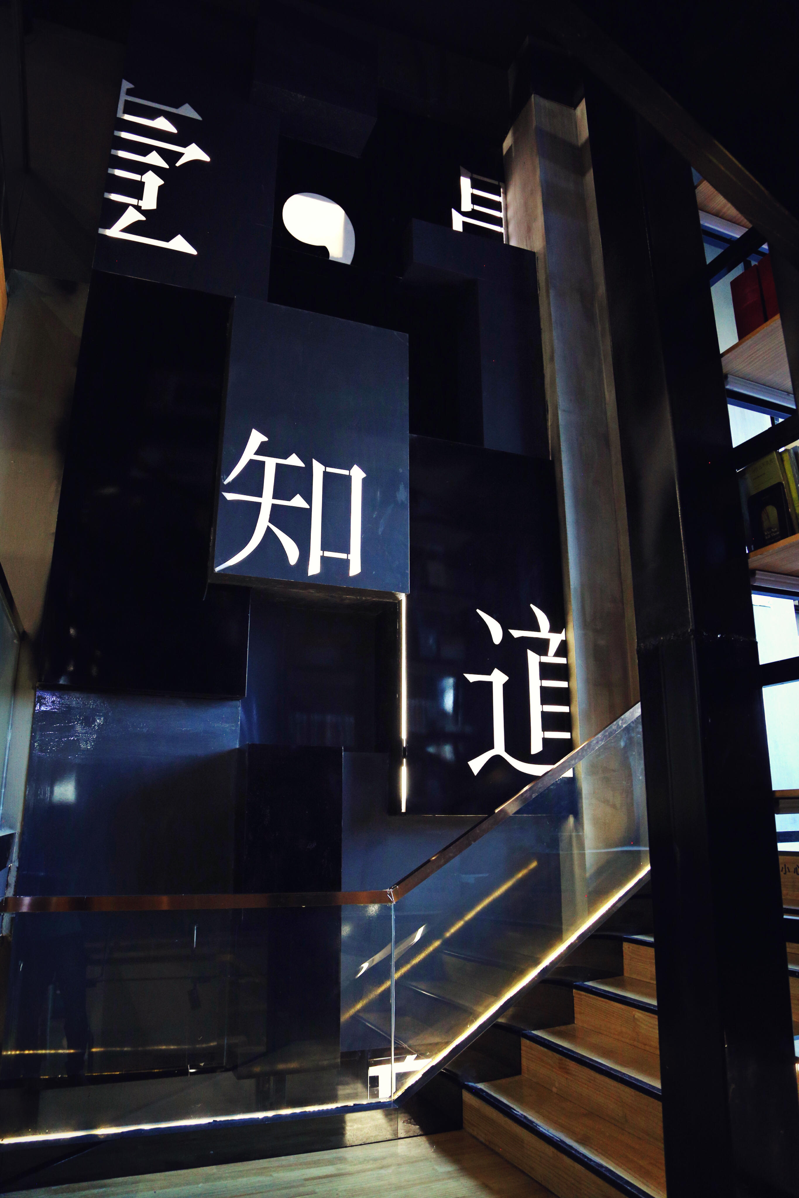 空间意境:在儿童区的划分处理上没有采用童趣的卡通元素作为区分,而是引入了著名抽象画家蒙德里安的构成元素,使整个空间颇具独特的现代感,同时将这一元素进行延伸,在主入口的正对面形成一个富有冲击力的体量装置,功能上同时作为甲方所需求的家庭书房。儿童区内划分有绘本阅读区,儿童活动区,小龄段书籍以及大龄段书籍区,原木色白色的主色调亲近且自然。钢结构的环形主楼梯围绕中间的书塔层层而上,寓意“书籍是人类进步的阶梯”,穿梭其中可看到以活字印刷为元素创作的装饰墙面,书籍与文字相互交织,营造出浓郁的氛围,同时在形式上具有和整体风格一致