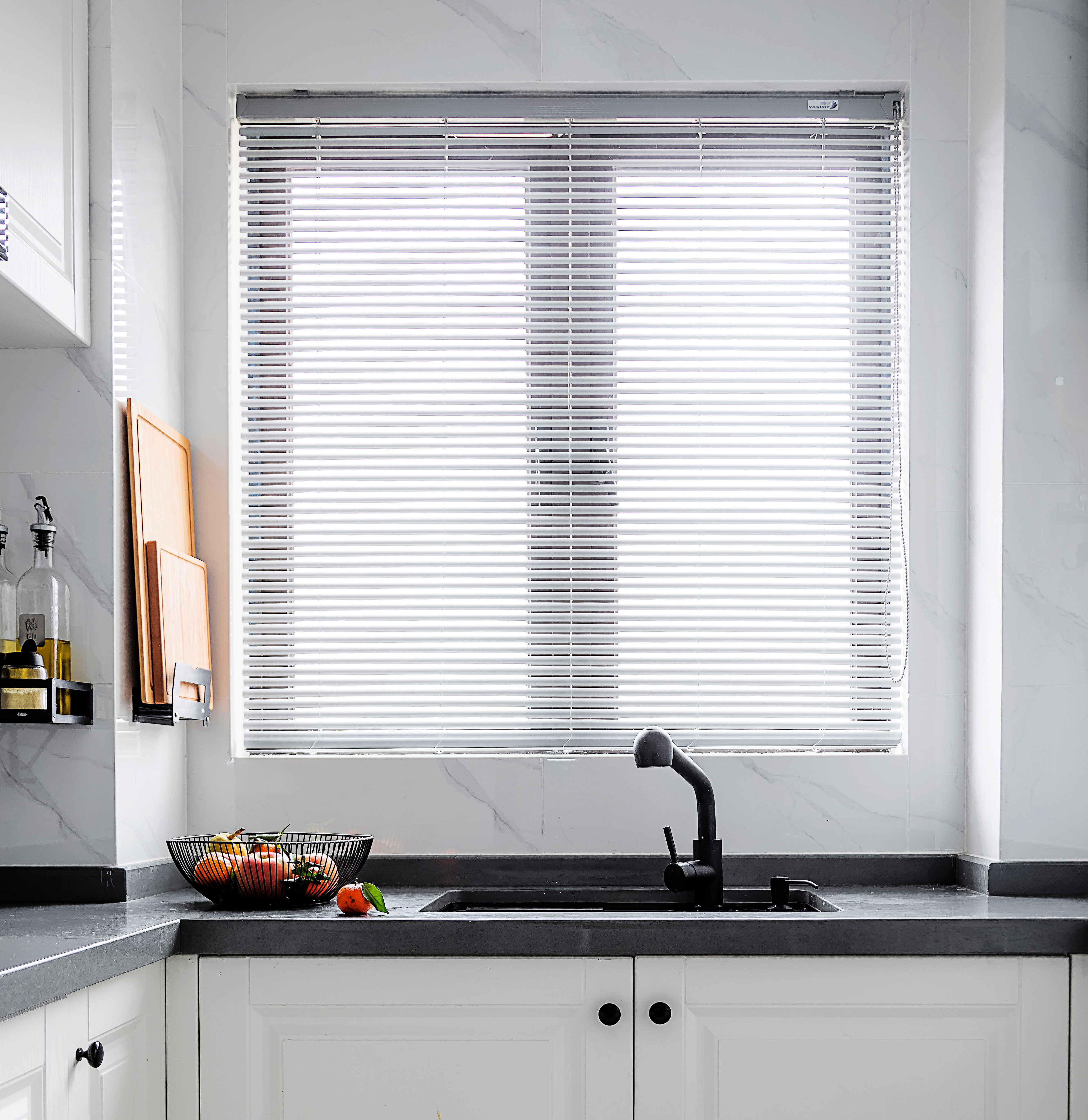 扩大后的厨房空间,视野也更开阔了。 厨房整体色调以简洁浅色系设计,延续整个空间的风格, 地面采取大理石的瓷砖,让整个空间显得清爽干净。 吊柜,橱柜,也能最大程度的满足我们日常所需要要的厨具收纳。