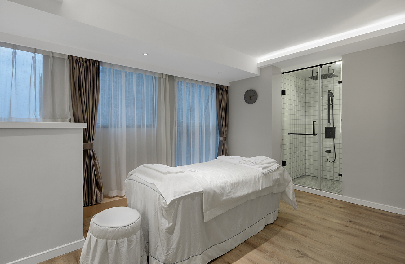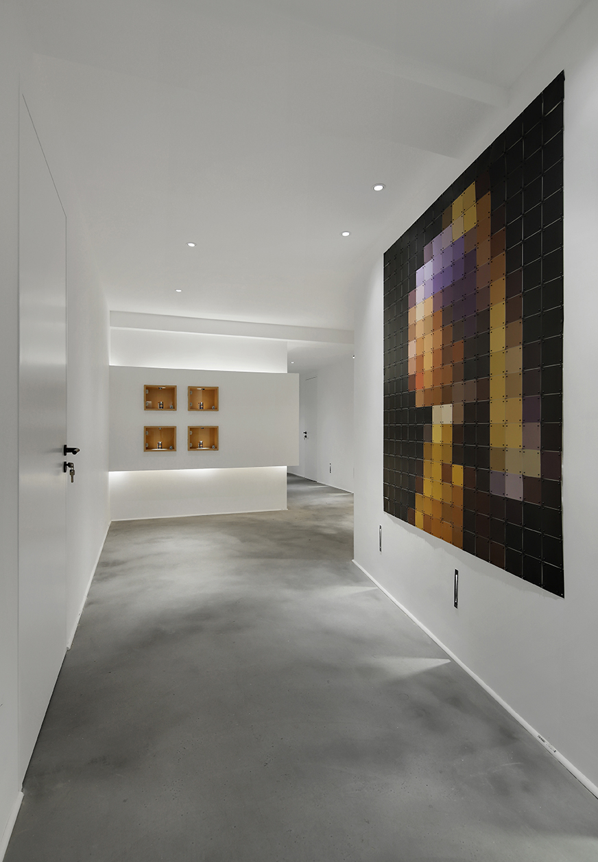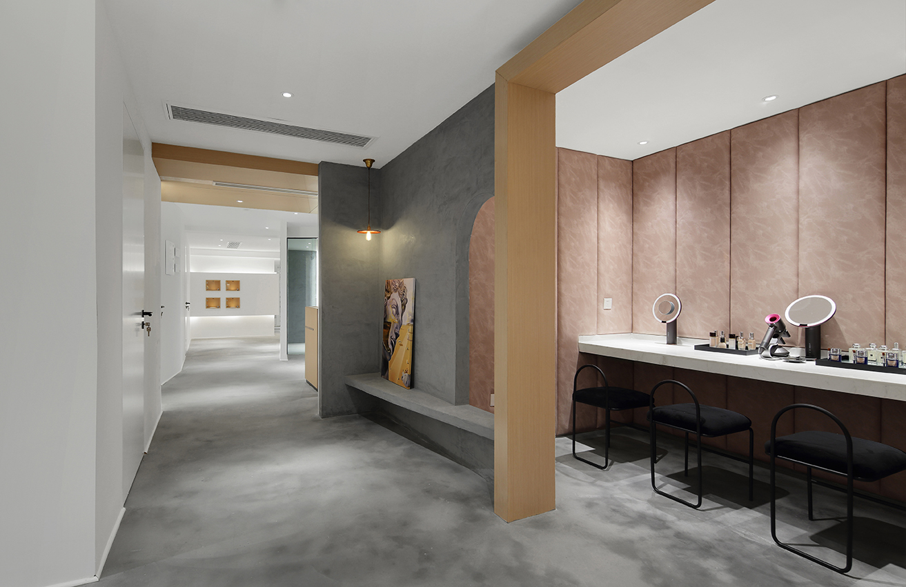 极简门以及1cm的踢脚线也是初次尝试, 墙地灯丰富了廊道。