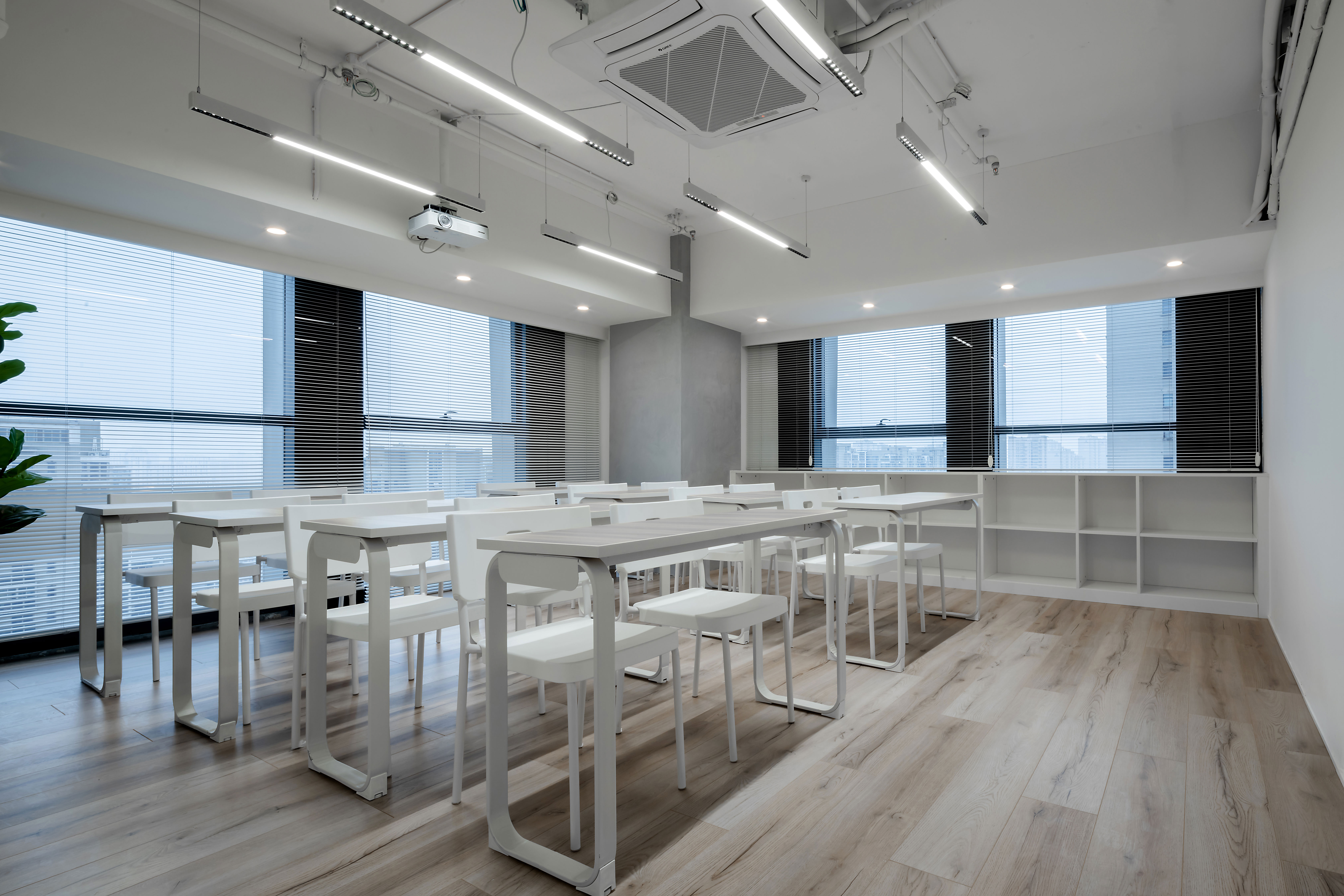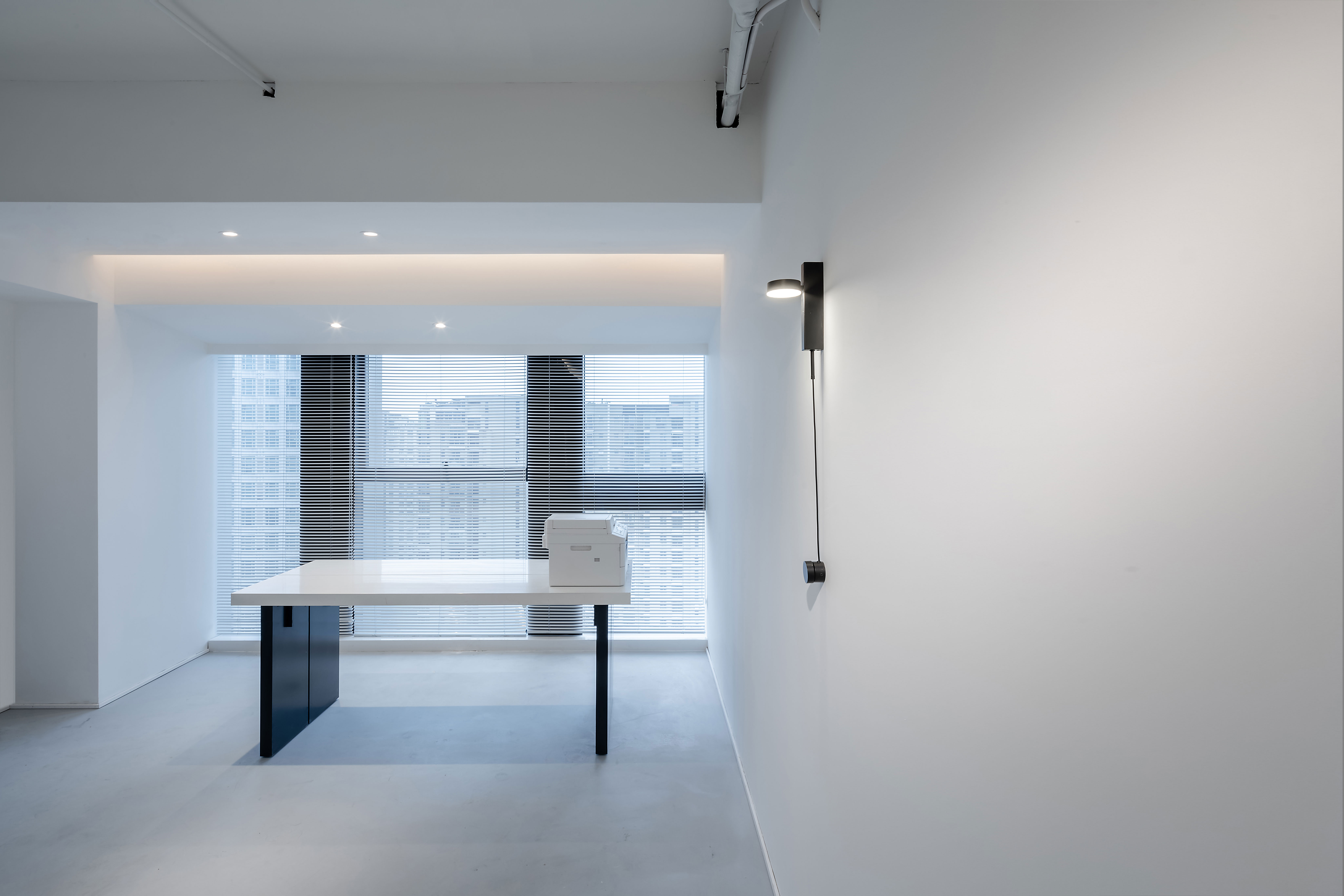 办公区整体的颜色是白灰色调,后场偏工业风,透过四周落地玻璃,可以清楚的看见窗外的风景。