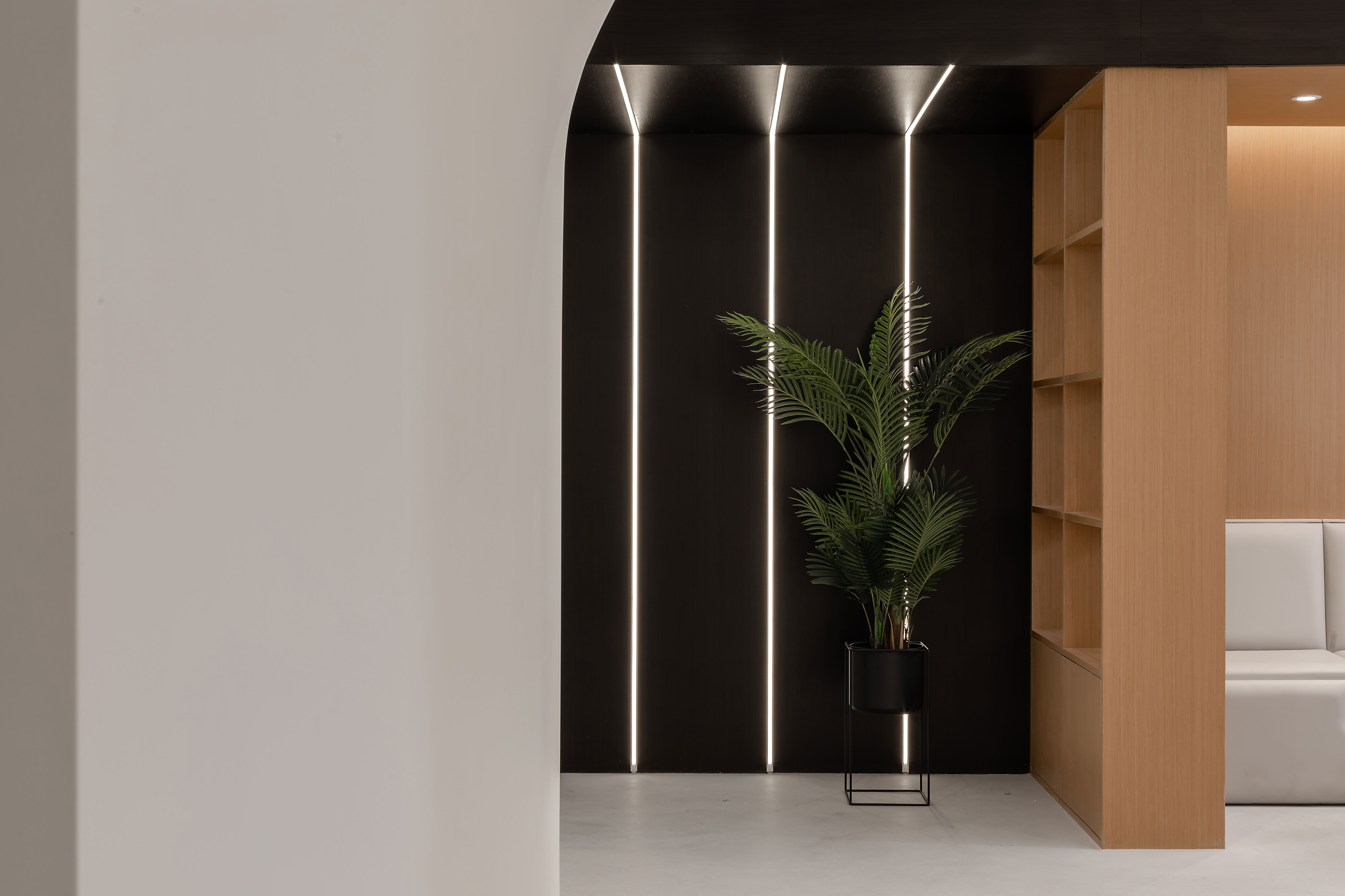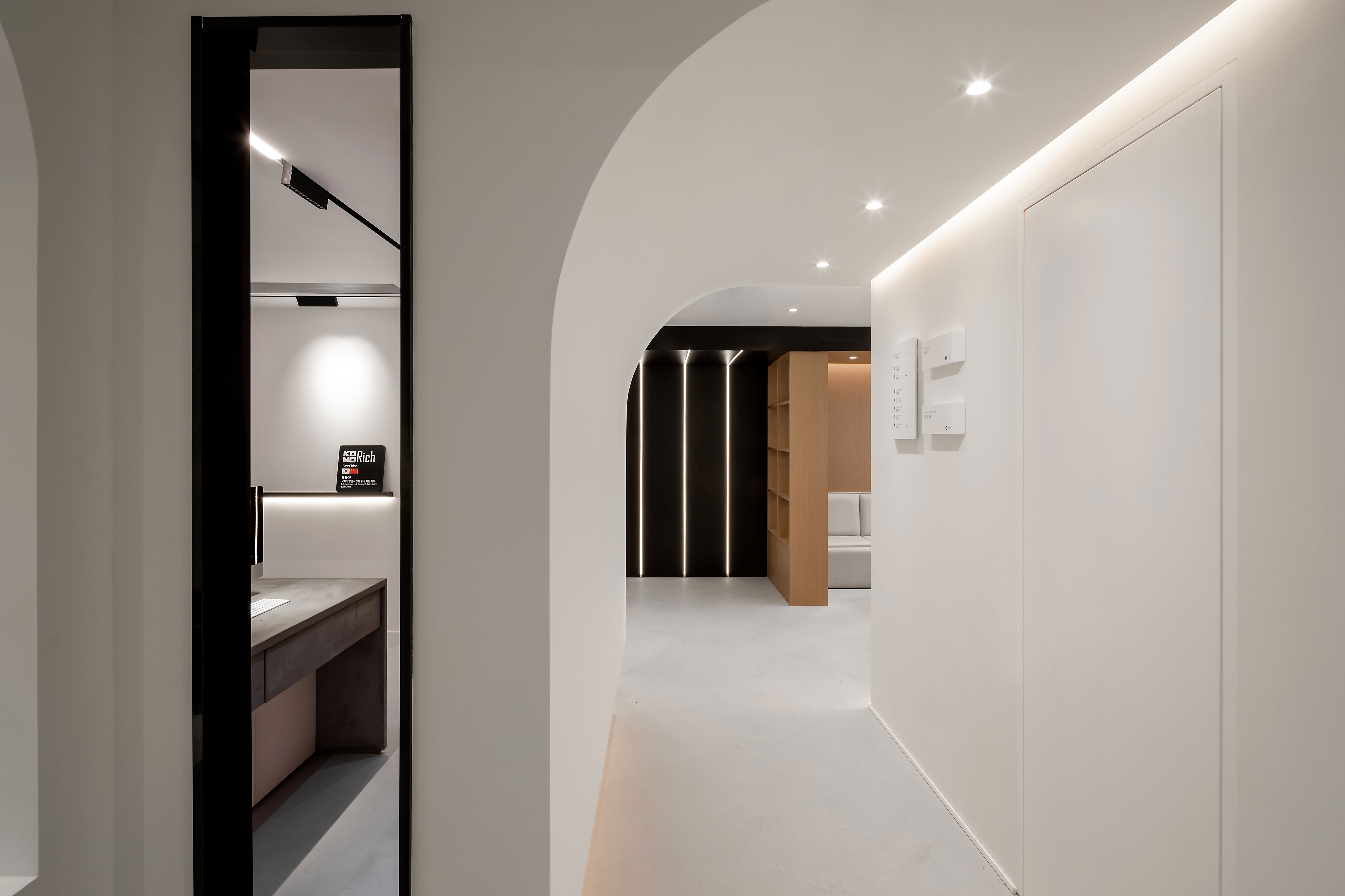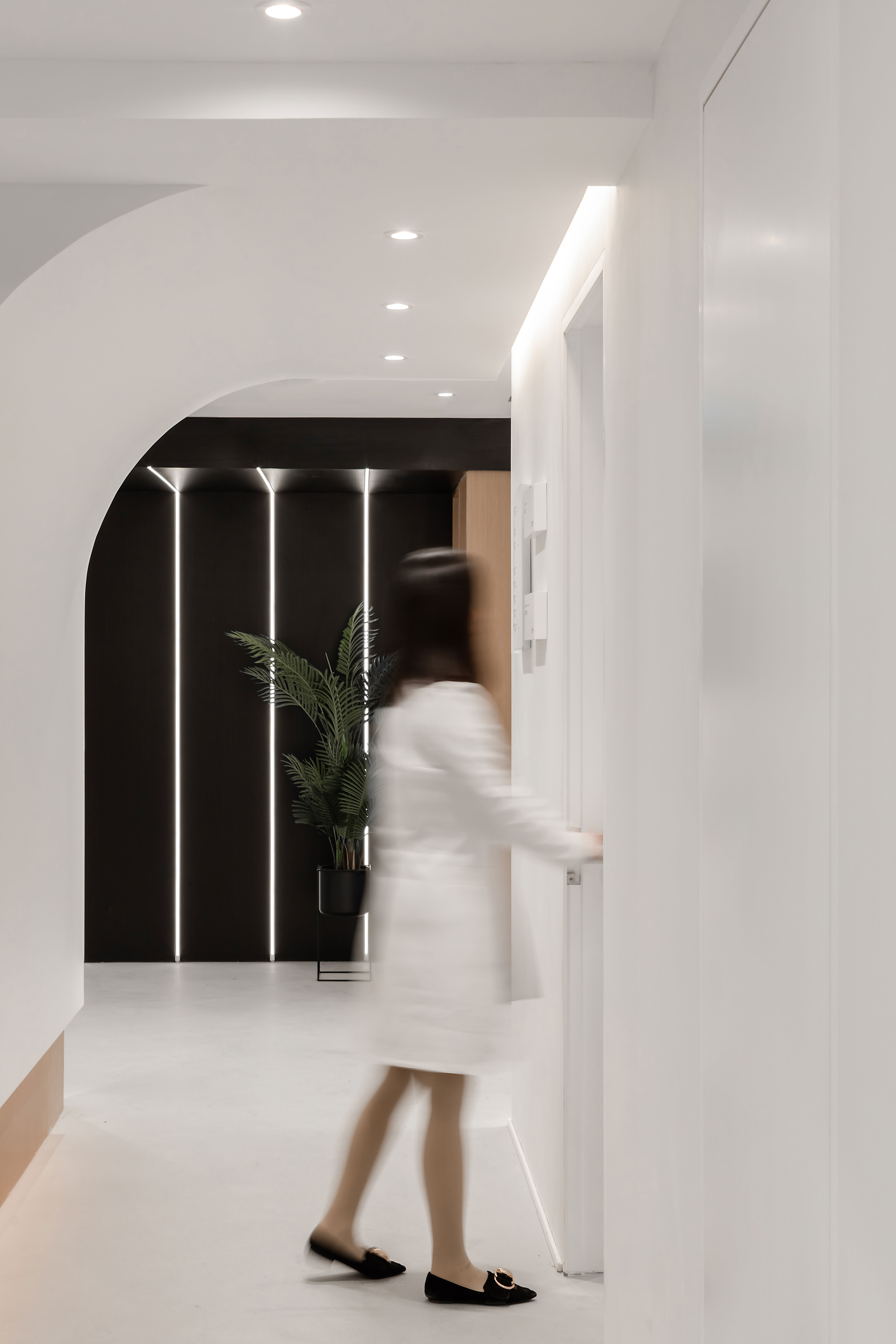 采用圆弧型的设计,会在视觉上给予柔软感,让我们的空间更加的舒适柔和。 并配合柔和的光线,让整个人的步伐都轻盈了起来。