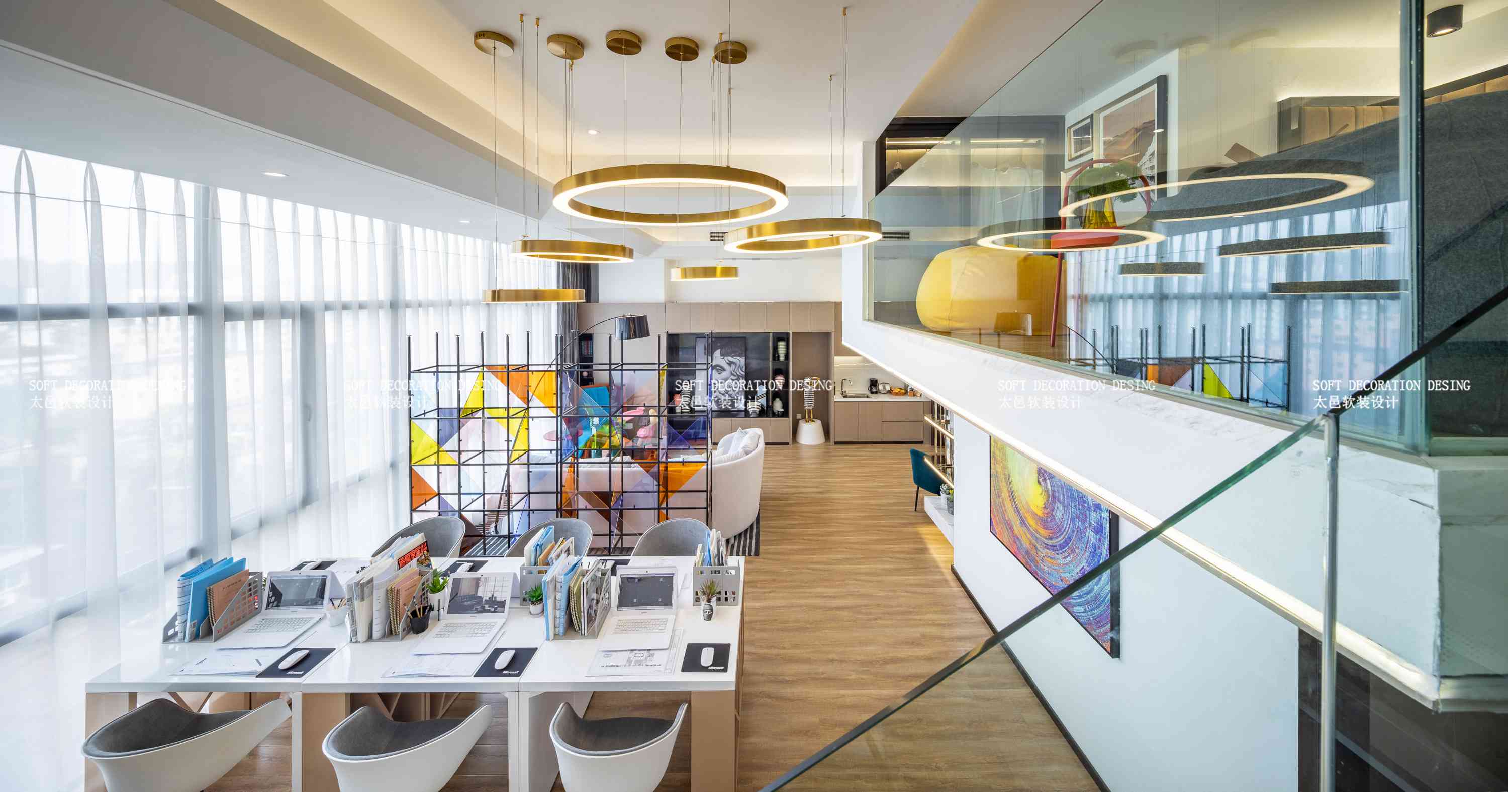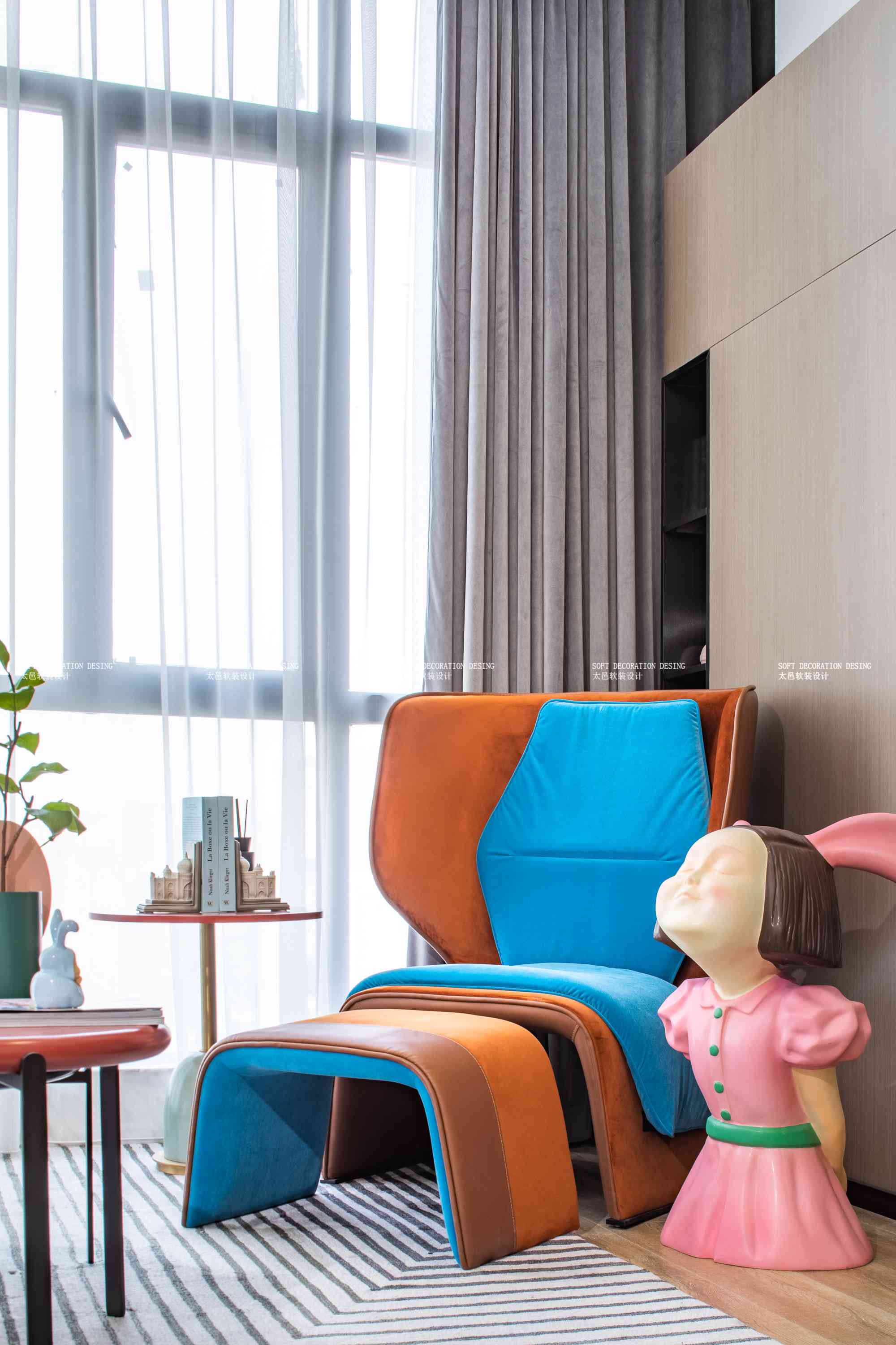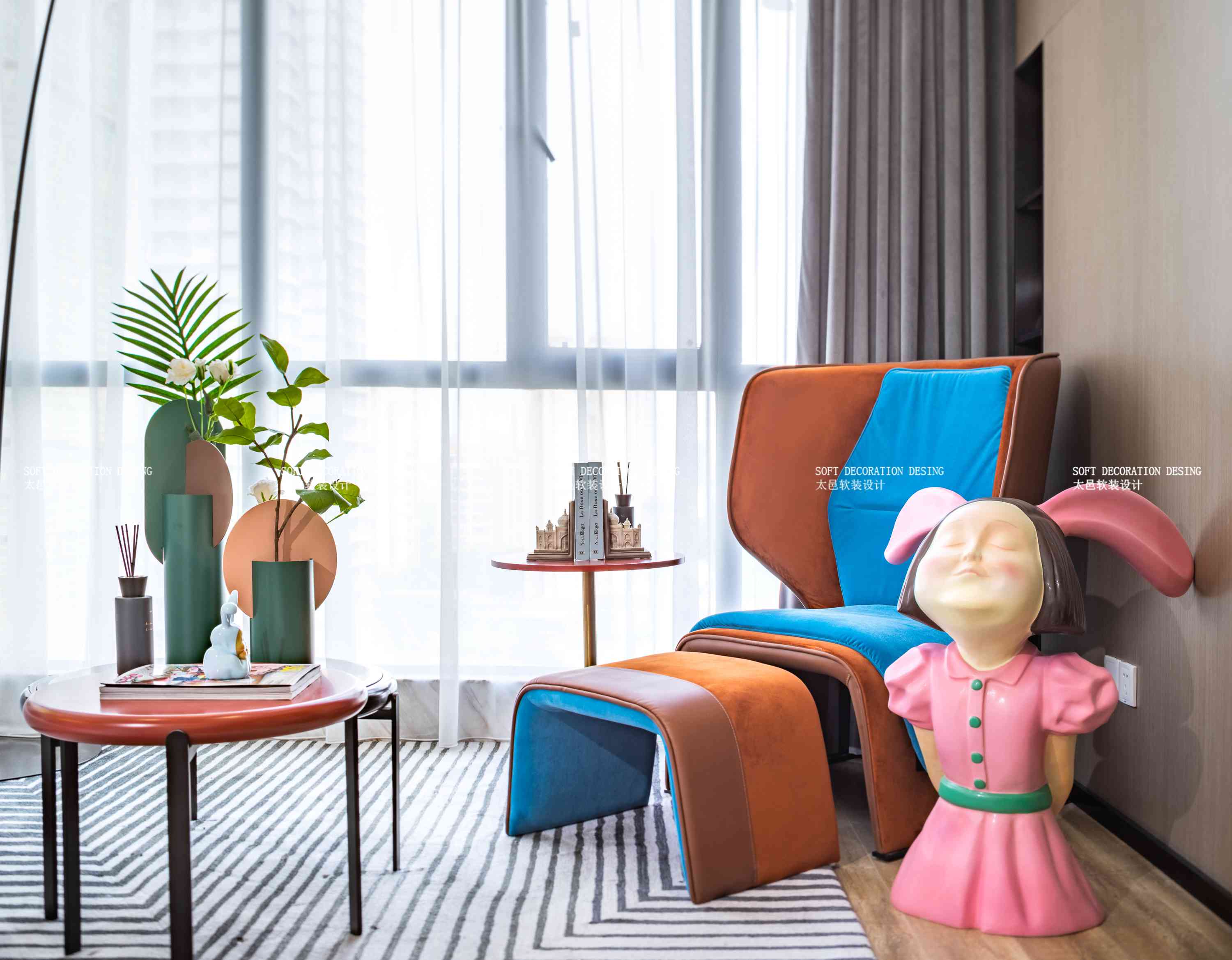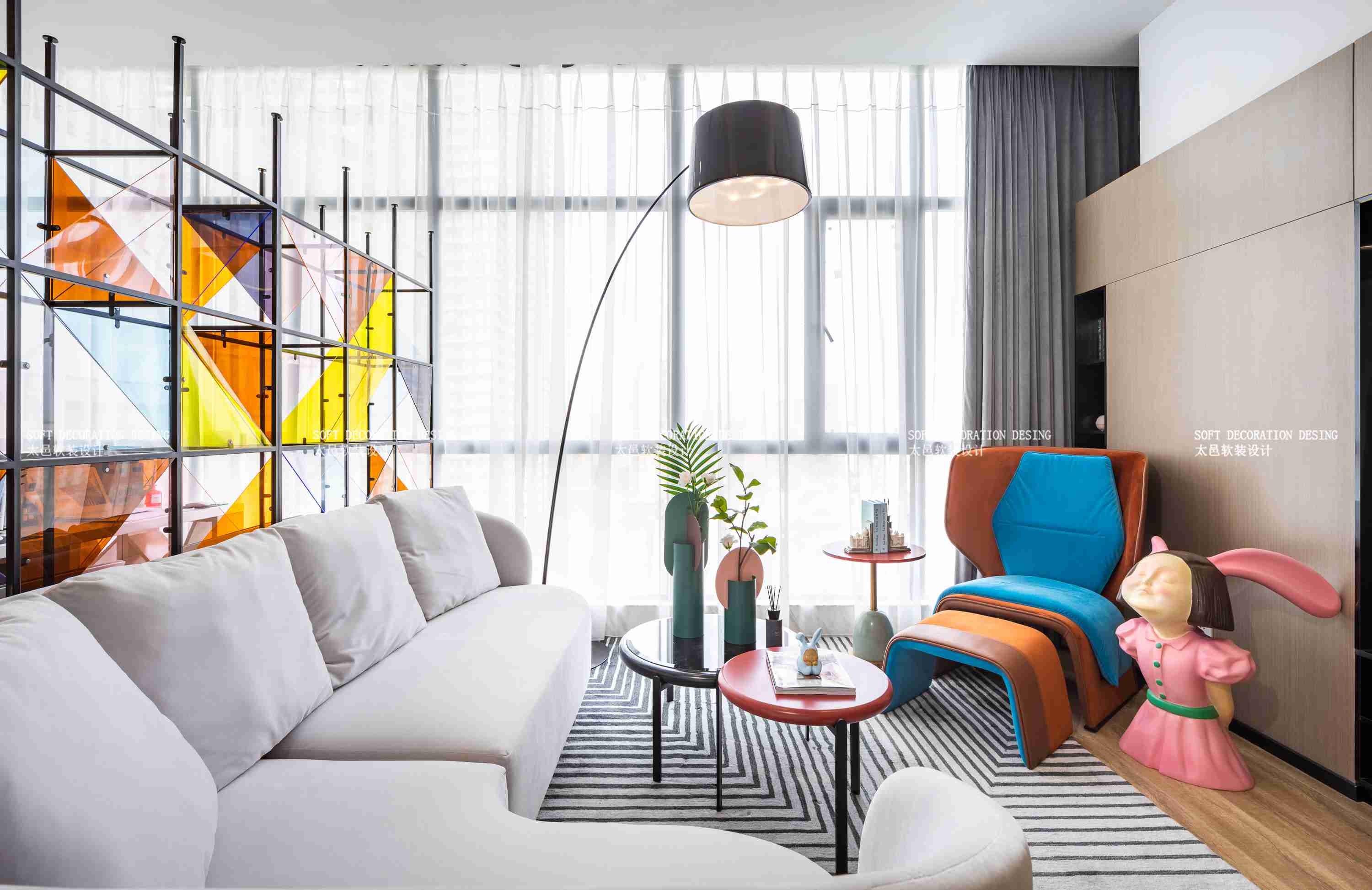 空间意境:loft风格搭配悦动的雕塑以及大胆的色彩搭配,大面积的空白和局部缤纷色彩搭配,让空间不仅不失活力更不会视觉疲劳。