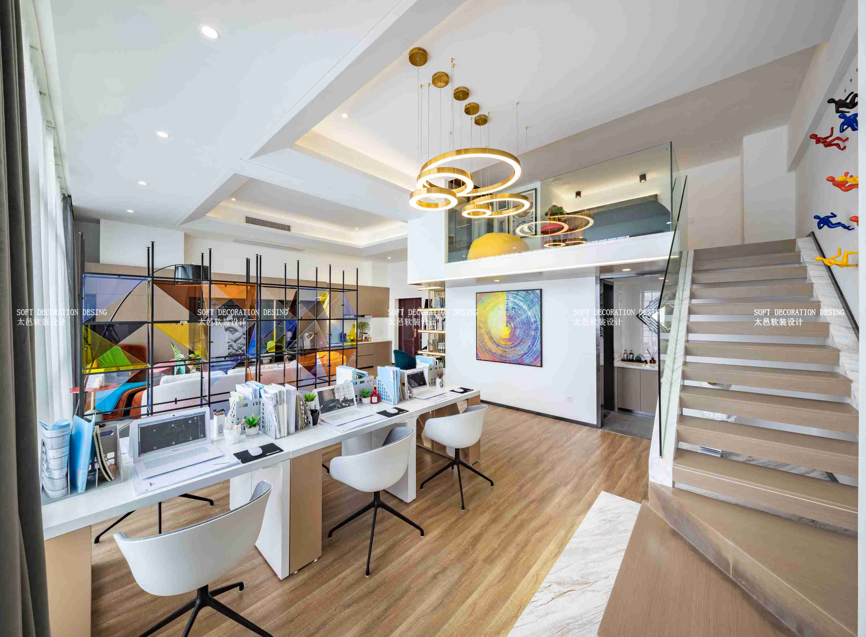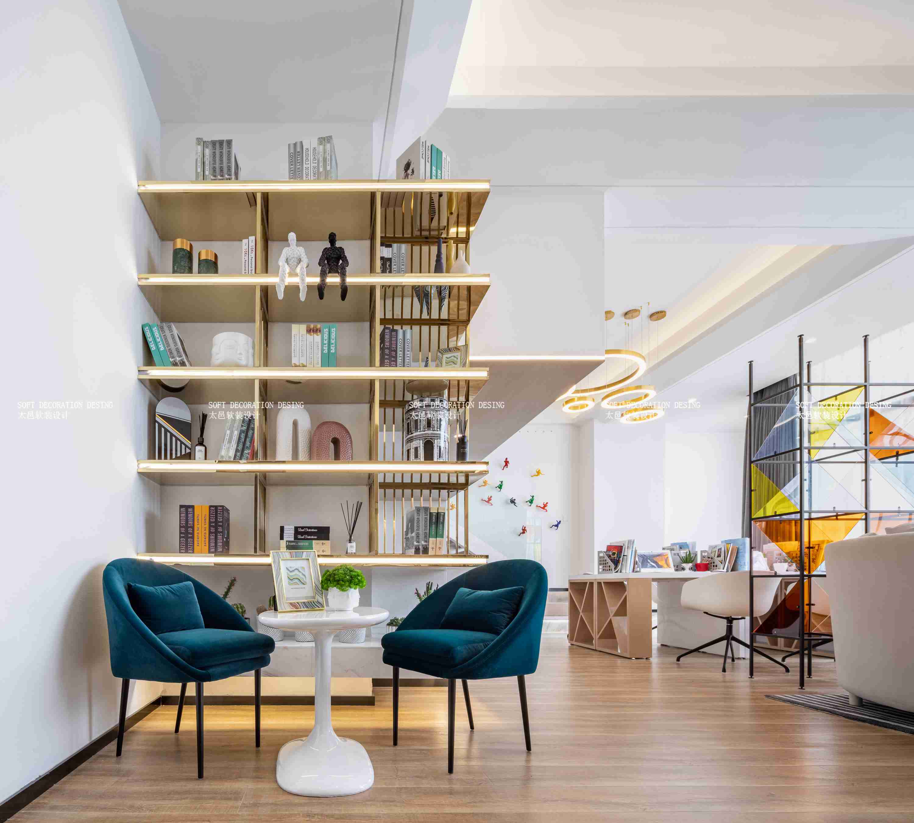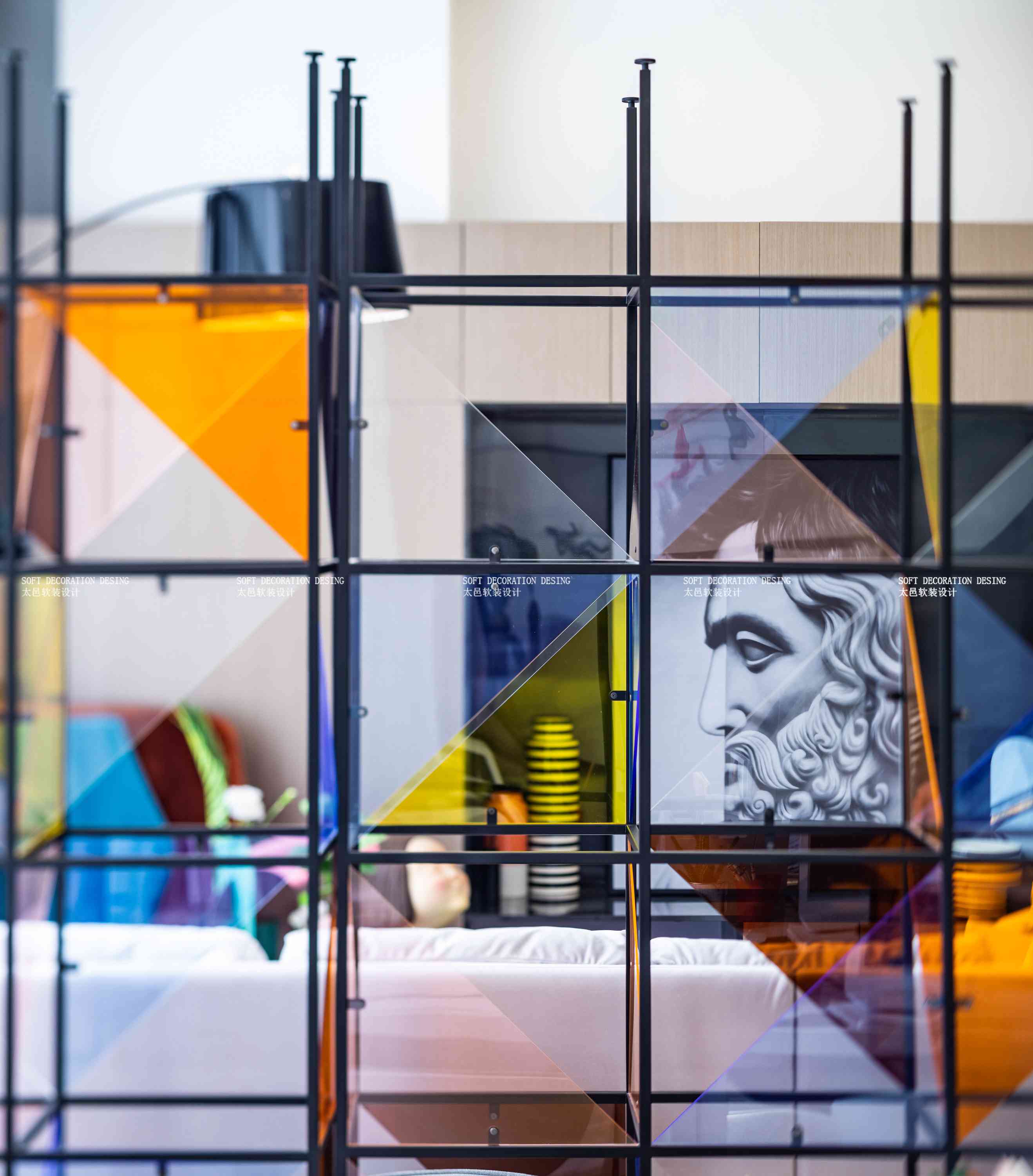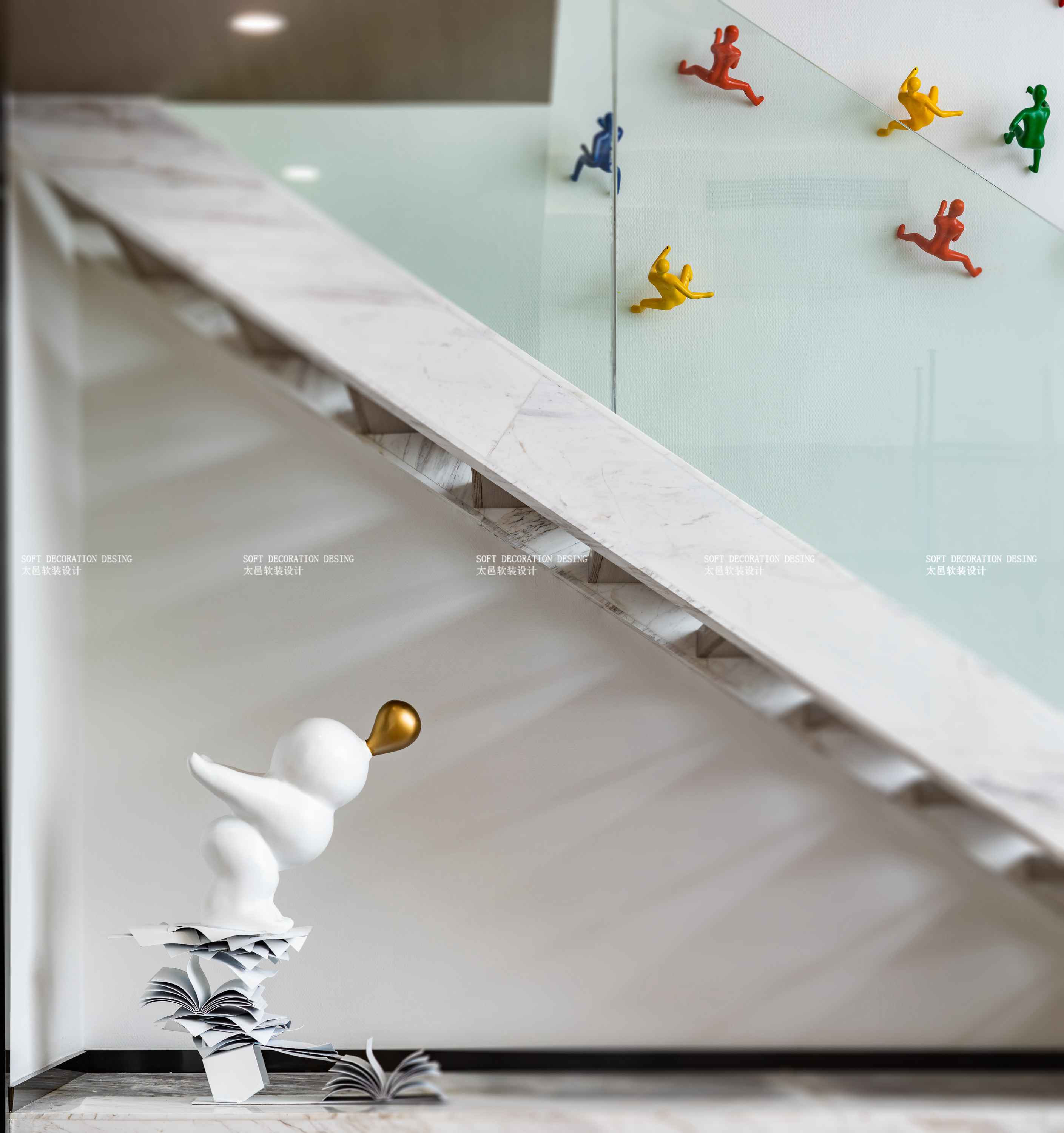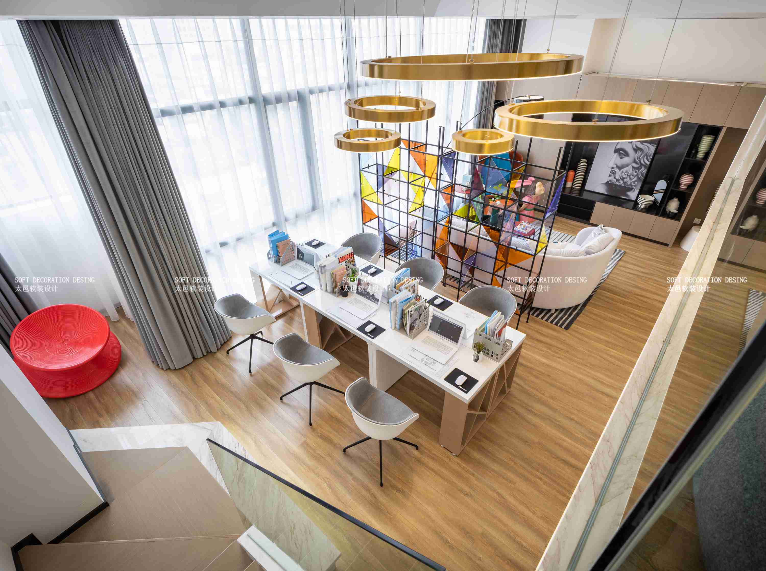 空间意境:loft风格搭配悦动的雕塑以及大胆的色彩搭配,大面积的空白和局部缤纷色彩搭配,让空间不仅不失活力更不会视觉疲劳。