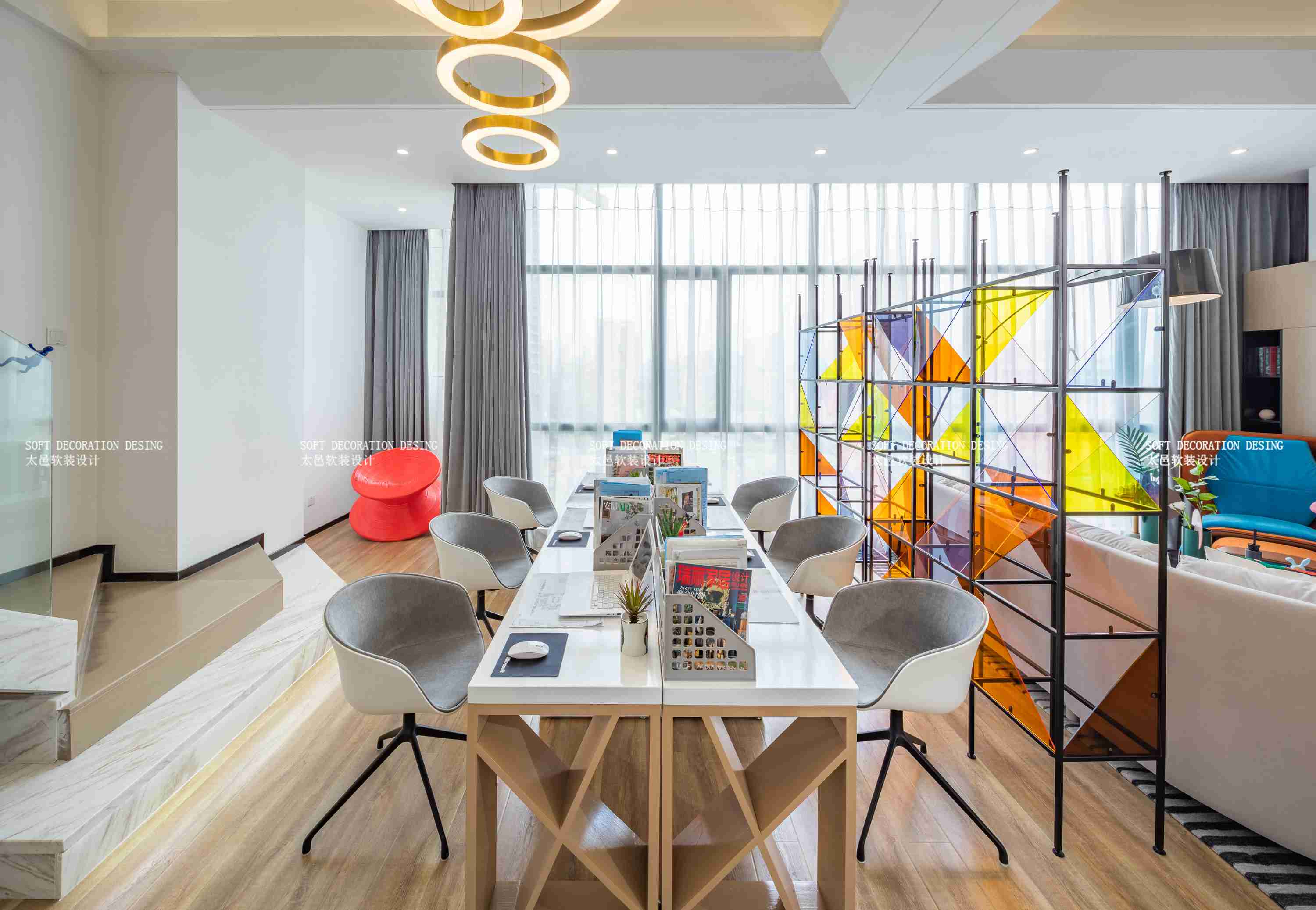 项目定位:国潮中心98平,一个专为年轻创意群体打造的办公空间,跳动的色彩以及悦动的软装搭配彰显办公室的年轻活力与魅力。
