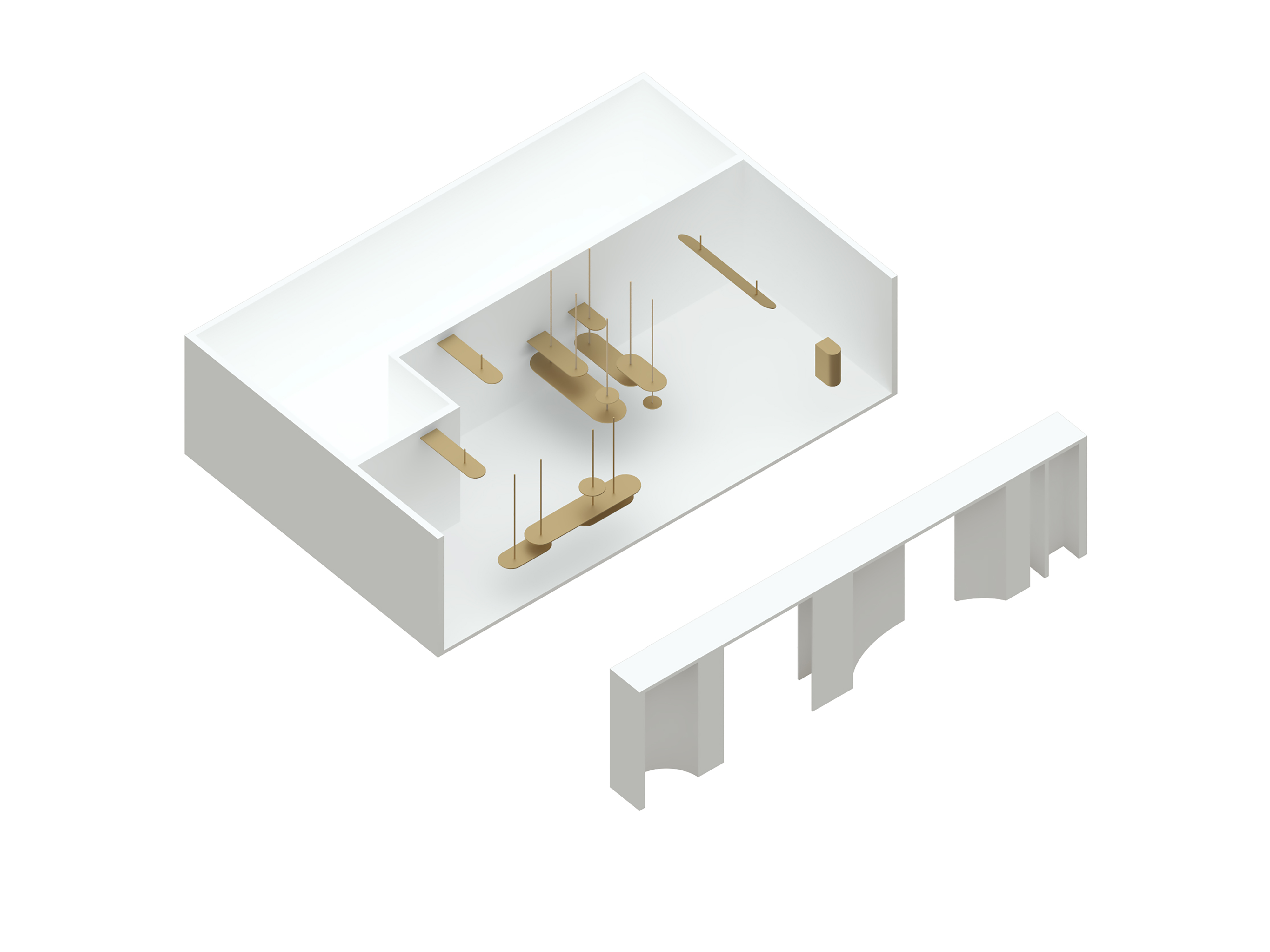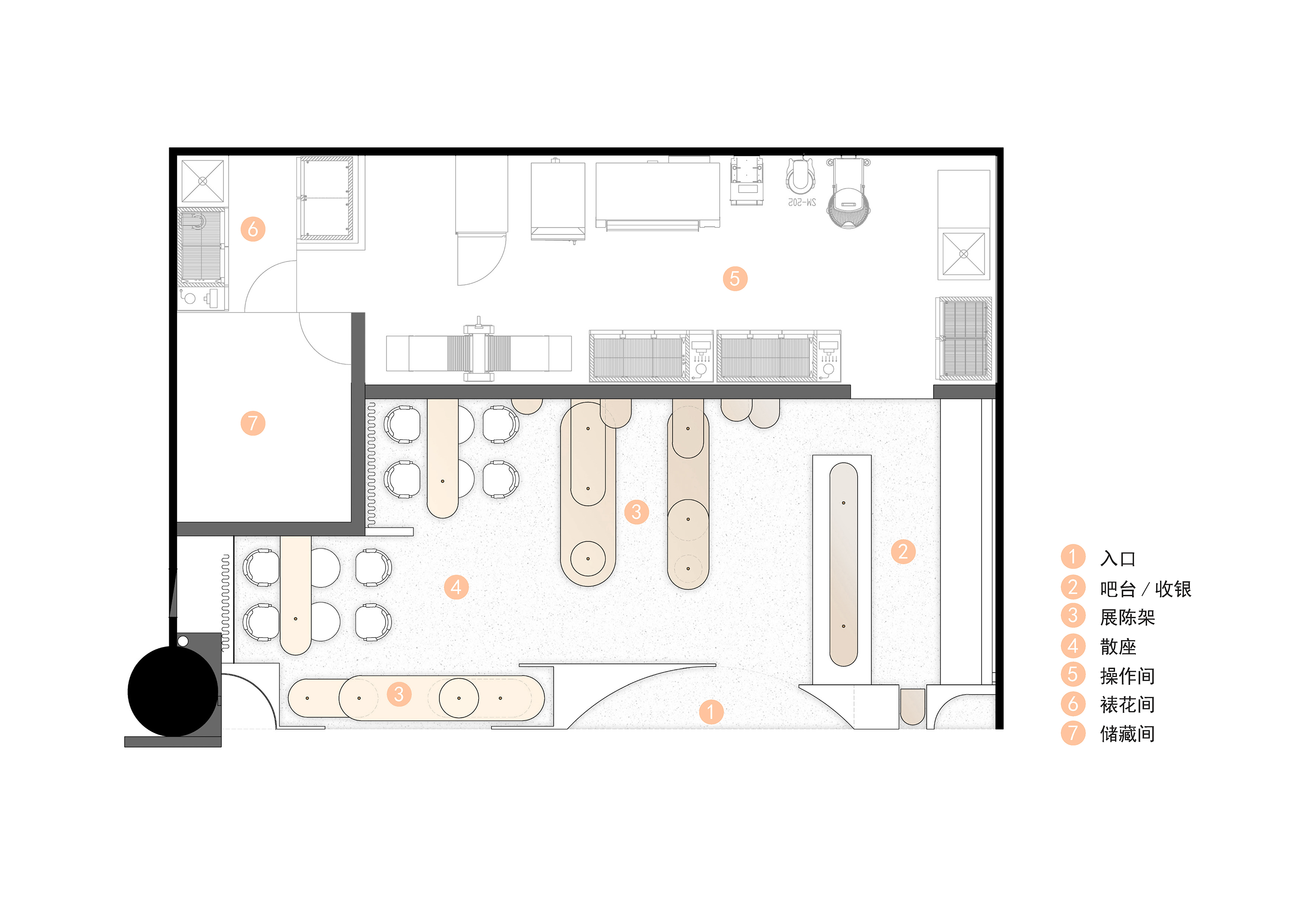 项目定位:作为一家空间以展陈为主,生产烘焙与甜品的零售体验店,我们希望以概念营造空间特质,塑造独特的空间氛围延展店铺设计的可能性。