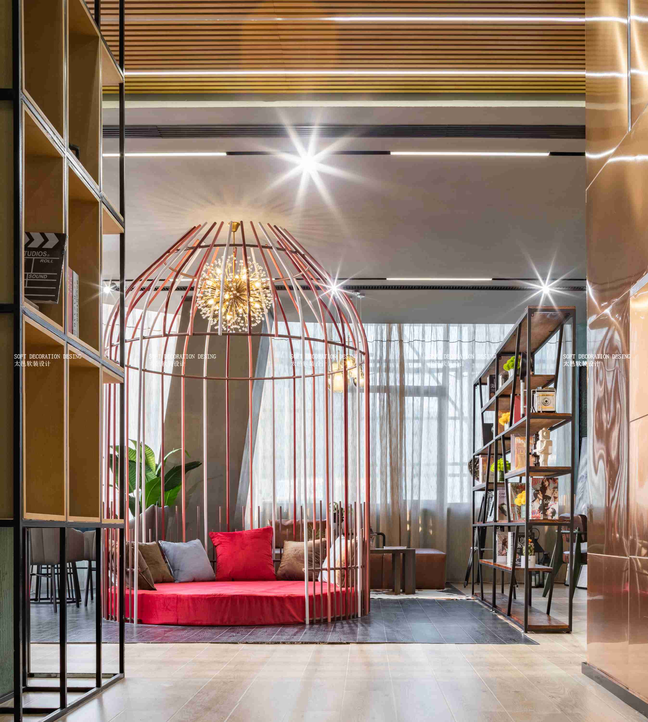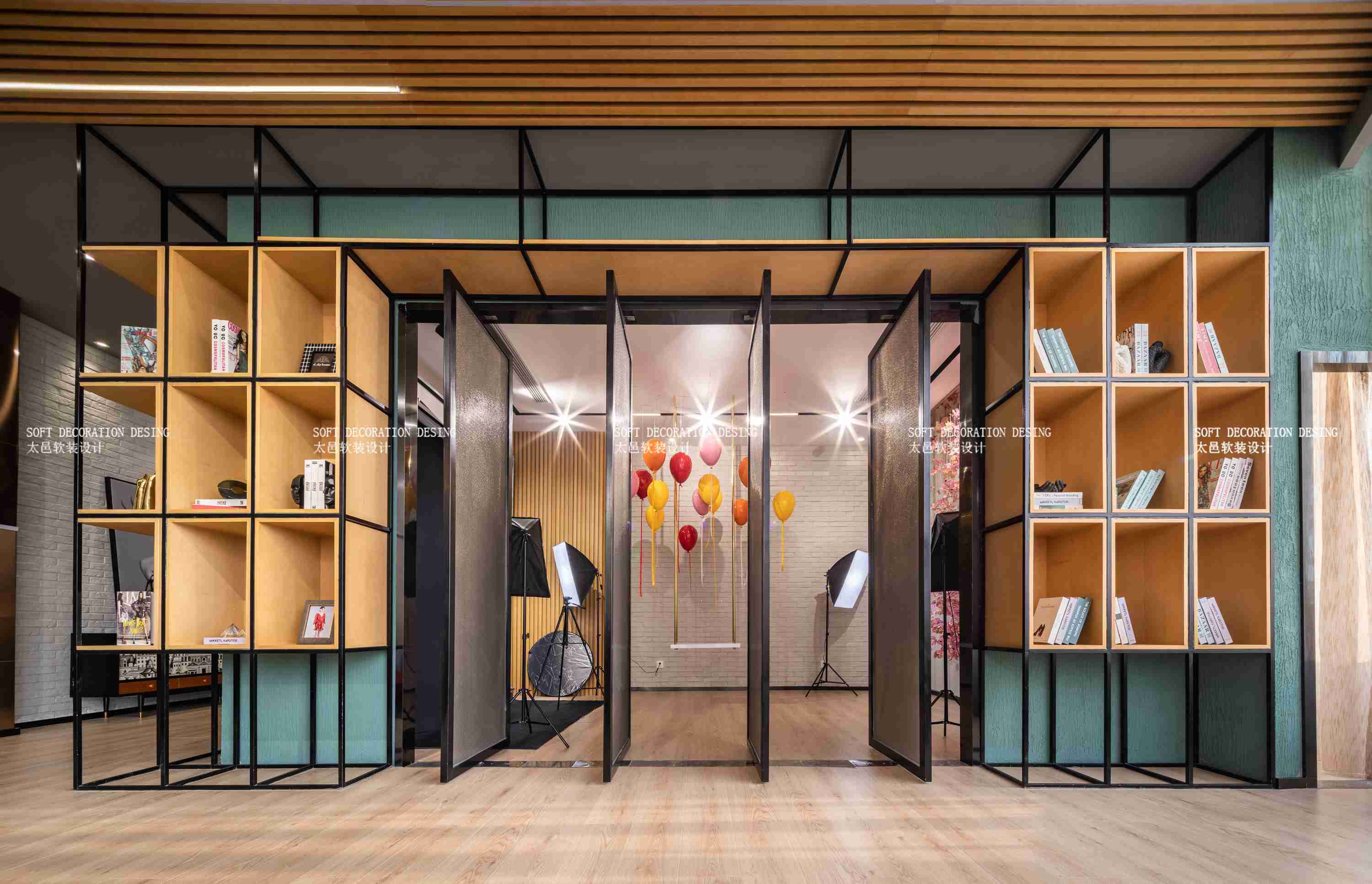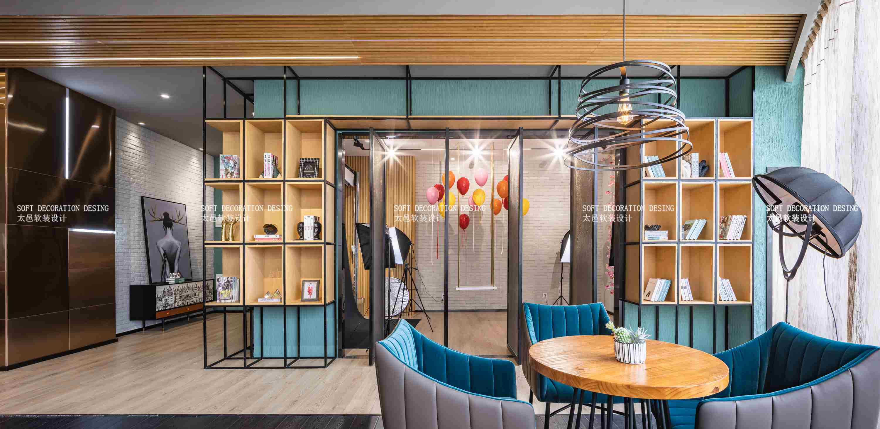 空间意境:本案在风格中延续动静结合的特点,作为摄影工作室既不能太过于悦动,缺少基本需求空间,又不能太过于呆板,休息室,更衣室,洽谈区,展示间的设计以及相互交融很重要,整体空间尽可能以摆设装饰品为主,增加整体空间趣味性。
