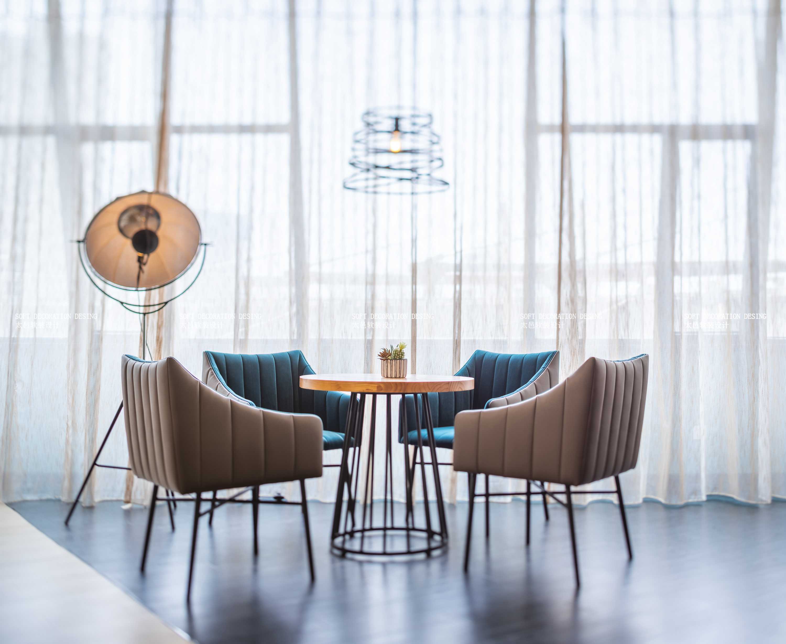 空间布局:在布局上,尽可能的以半开放为主,增大空间开阔性的同时用屏风做私密性隔断,做到视觉上的开阔,使用上的私密。