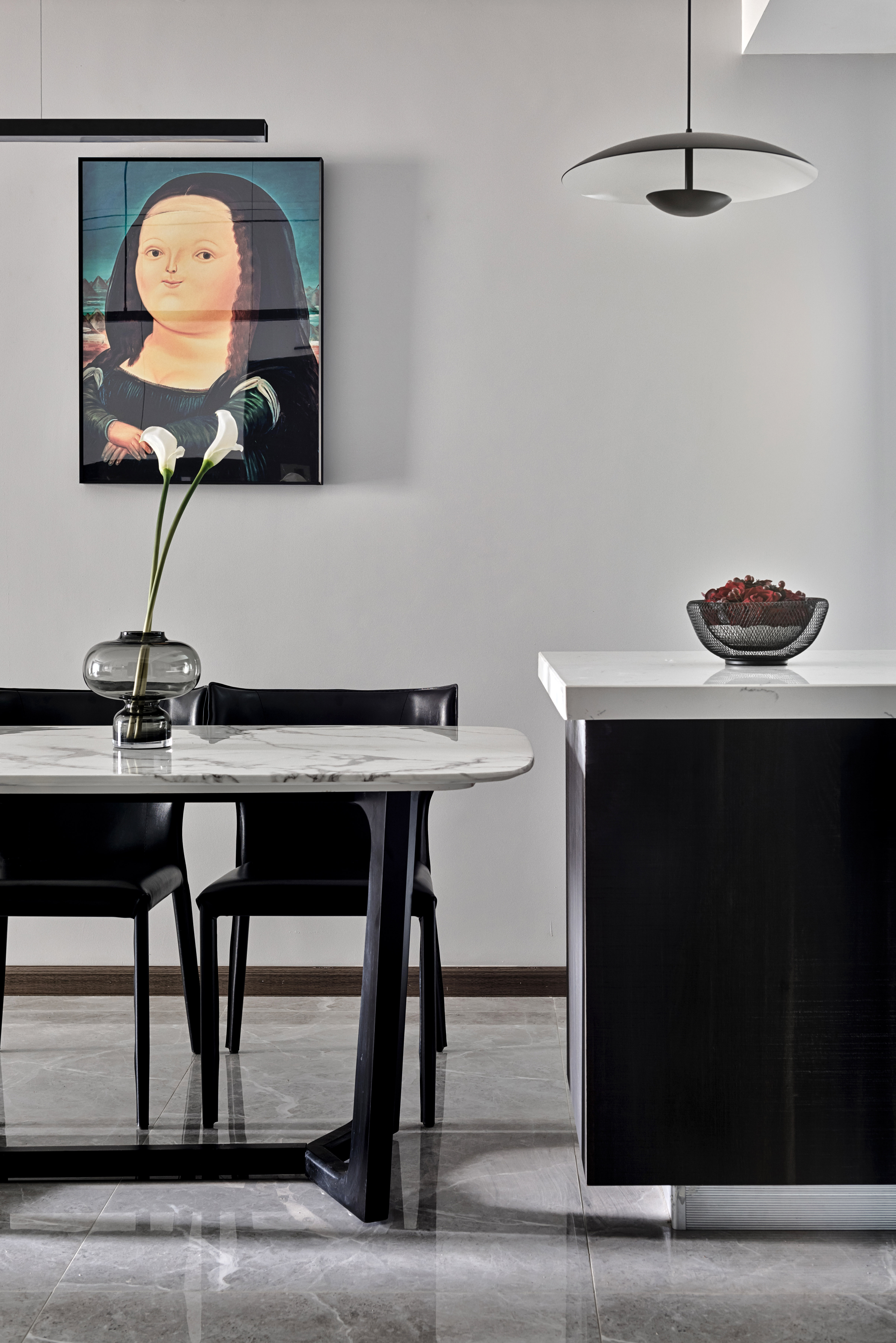 细碎的阳光穿透客厅为餐厅镀上了一层暖意,几个家常小菜,再酌上几杯小酒,便能享受每餐的不同,味蕾的满足会让整个人都变得容光焕发,(也会变pang,😜😜😜😜哈哈哈)就像是在还没开始装修之前就已经买好的挂画胖蒙娜丽莎