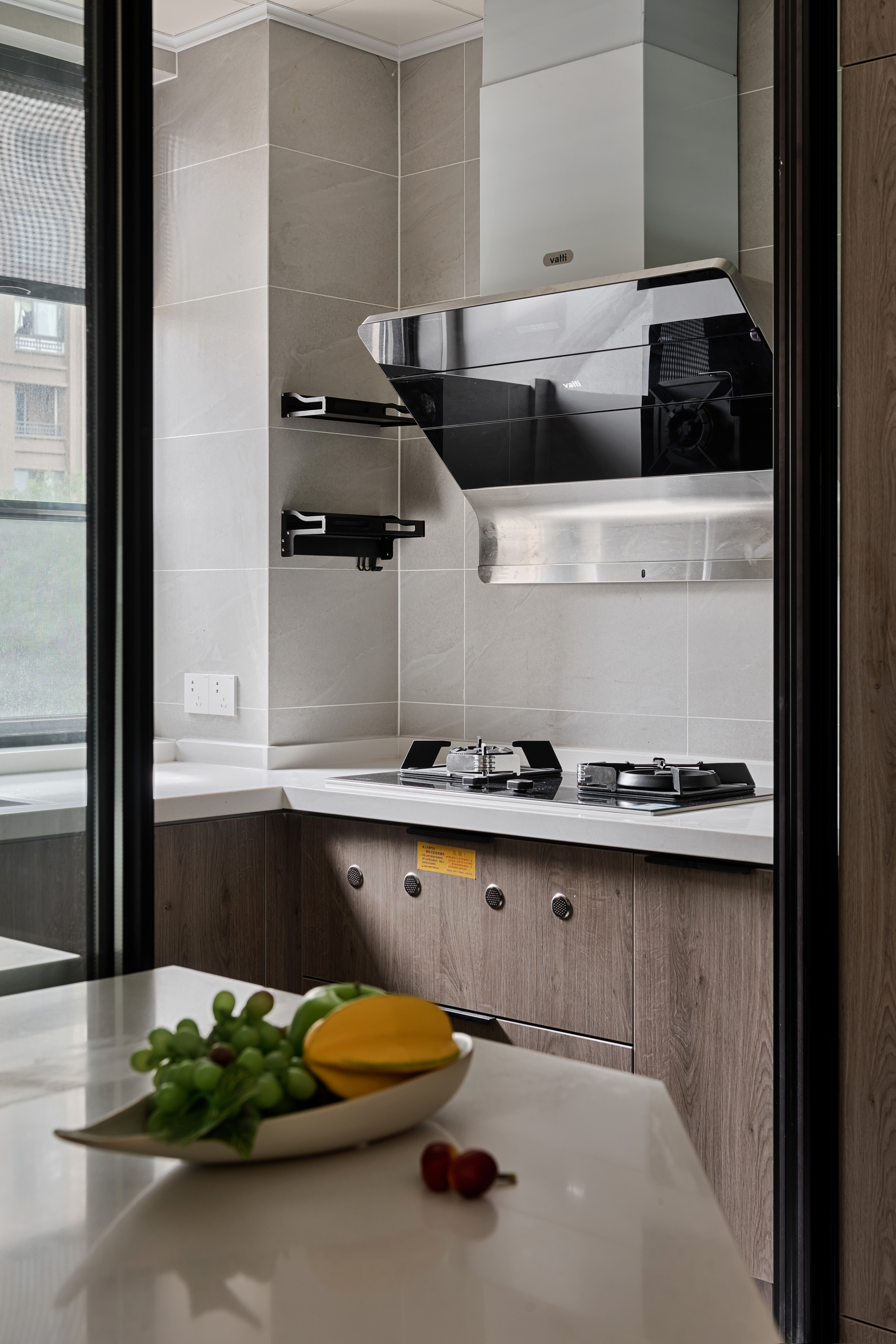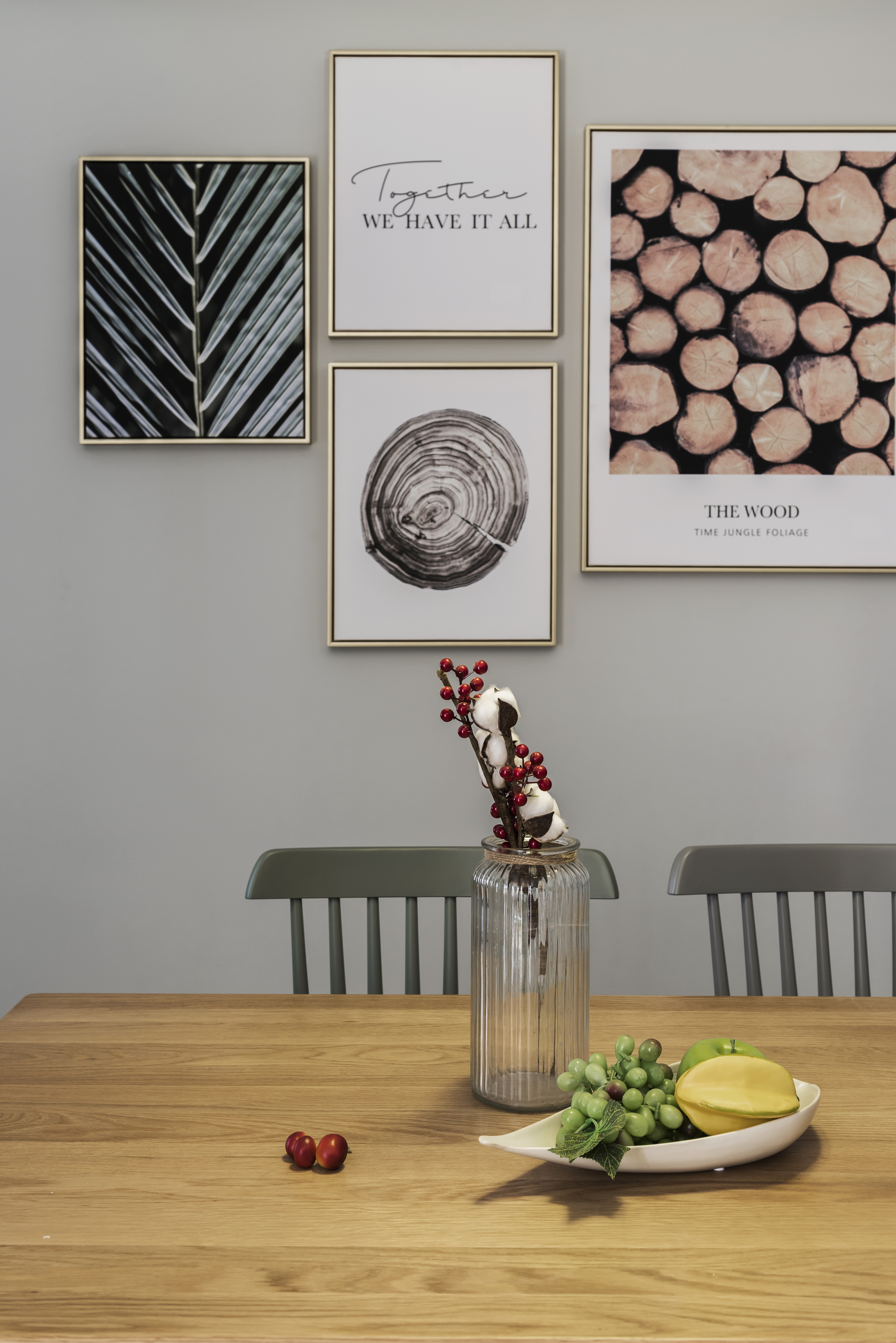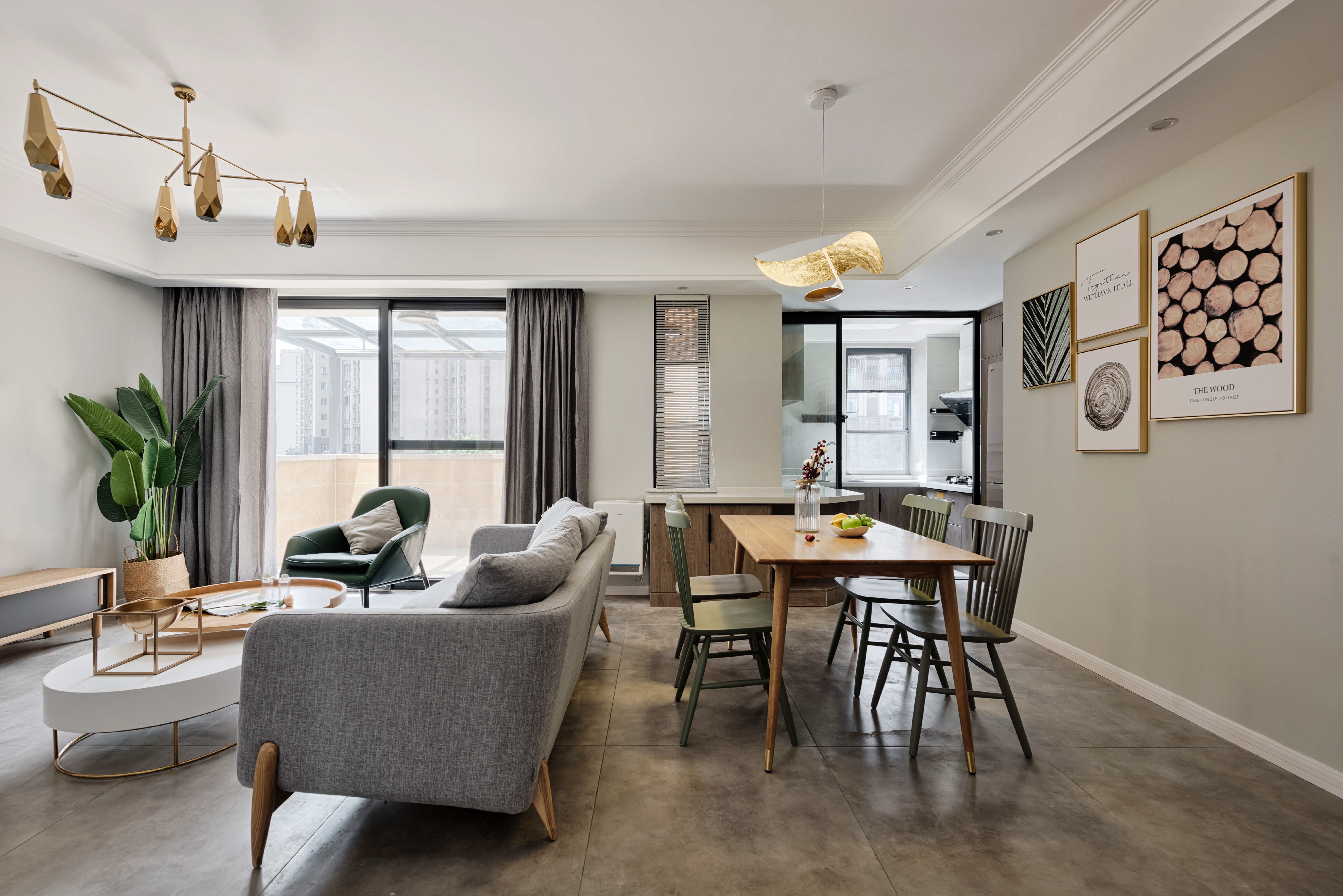 森系的挂画和墨绿色的餐椅更加符合这个空间的氛围,自然、淡雅、素净,与不同色泽的木质形成一股独特的气质,被改造过的厨房在视觉上变得更加的通透,不再拘泥小小的一角