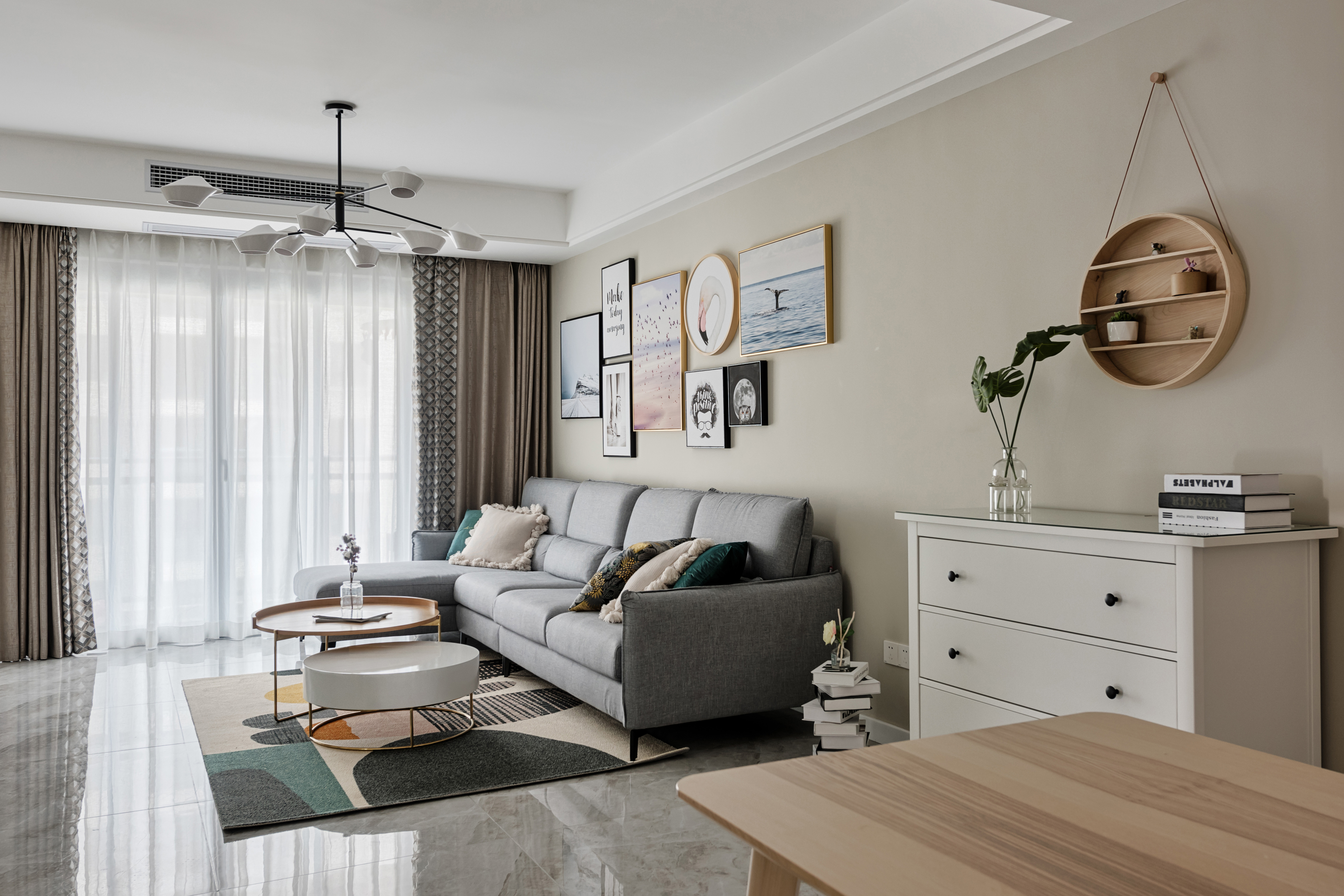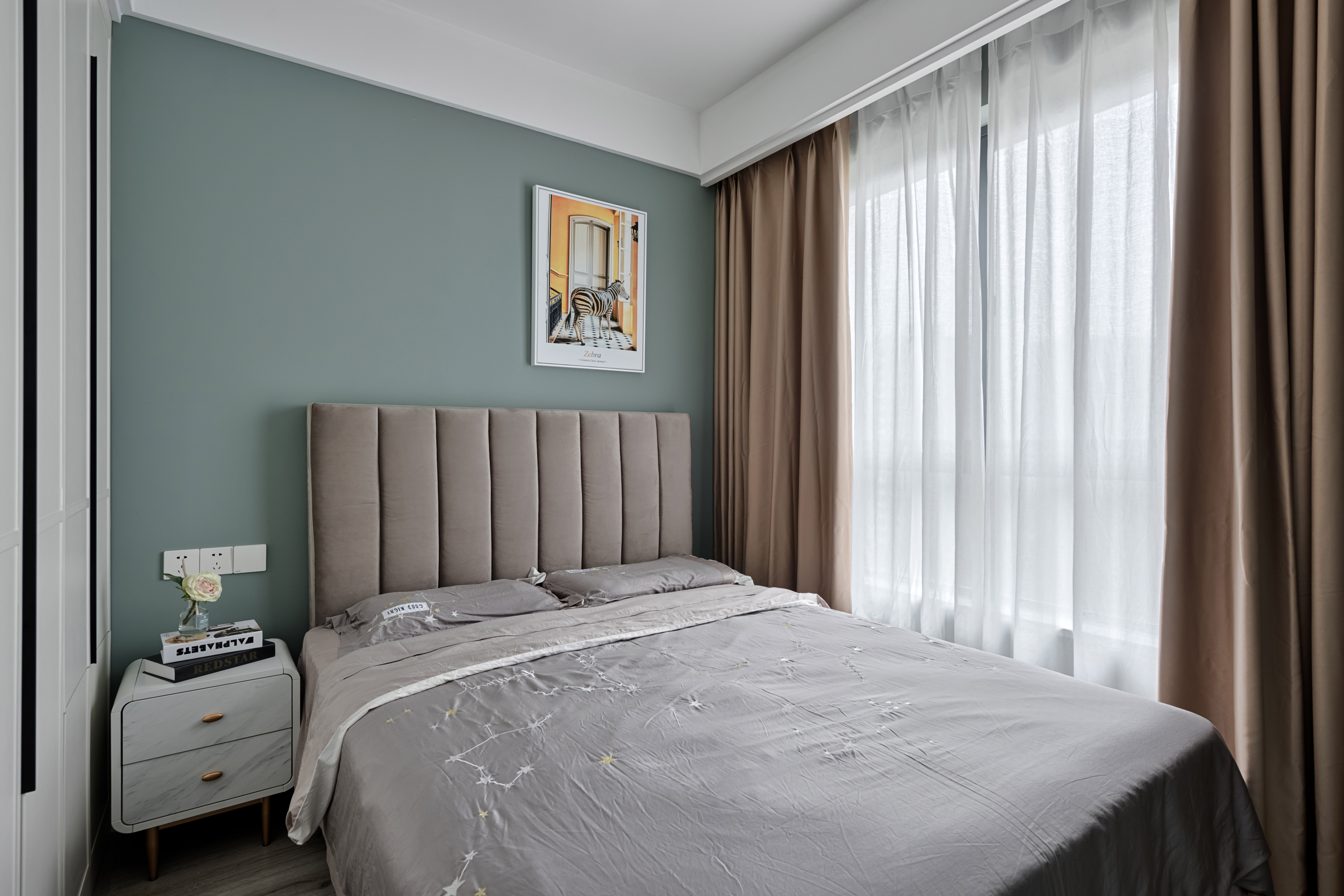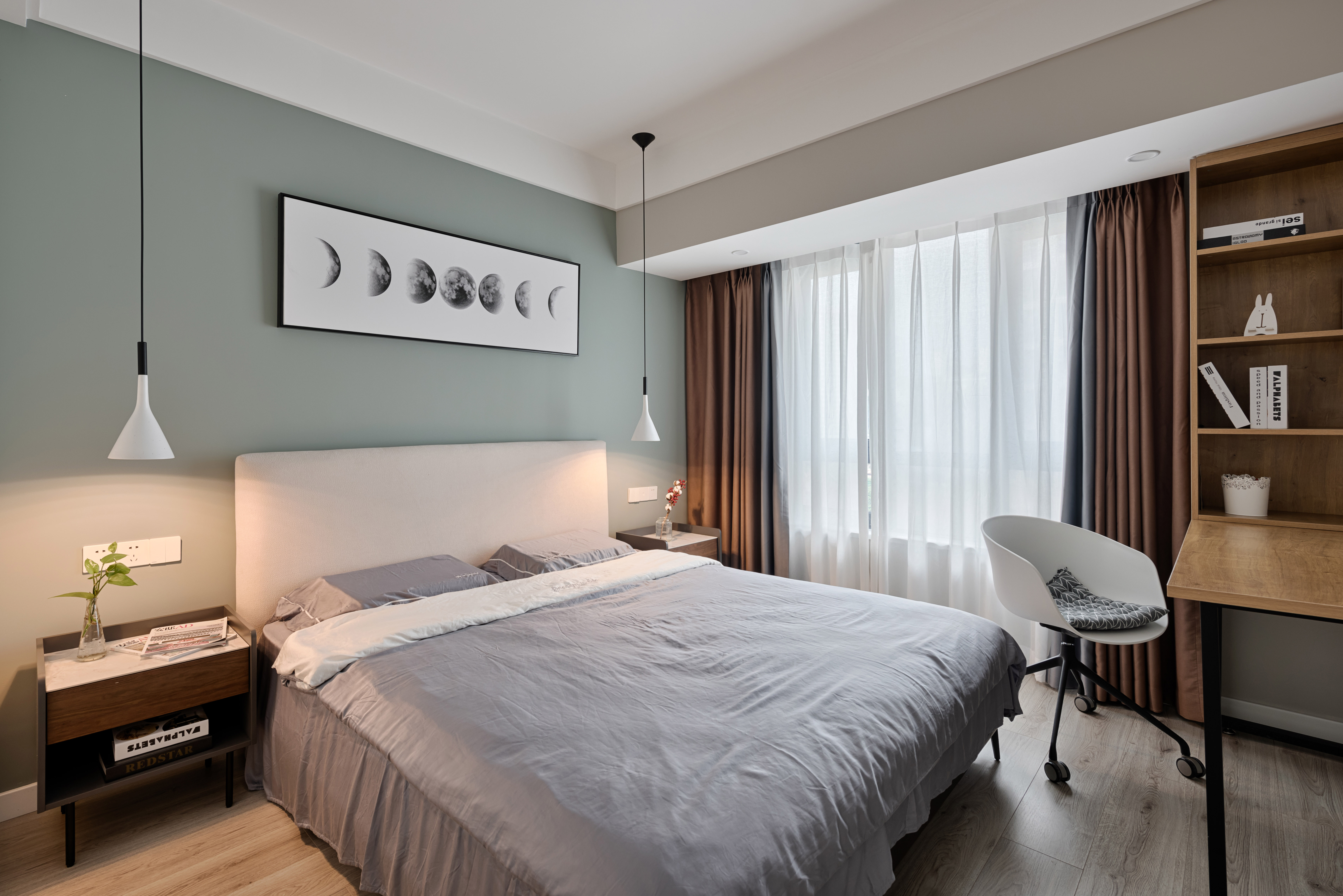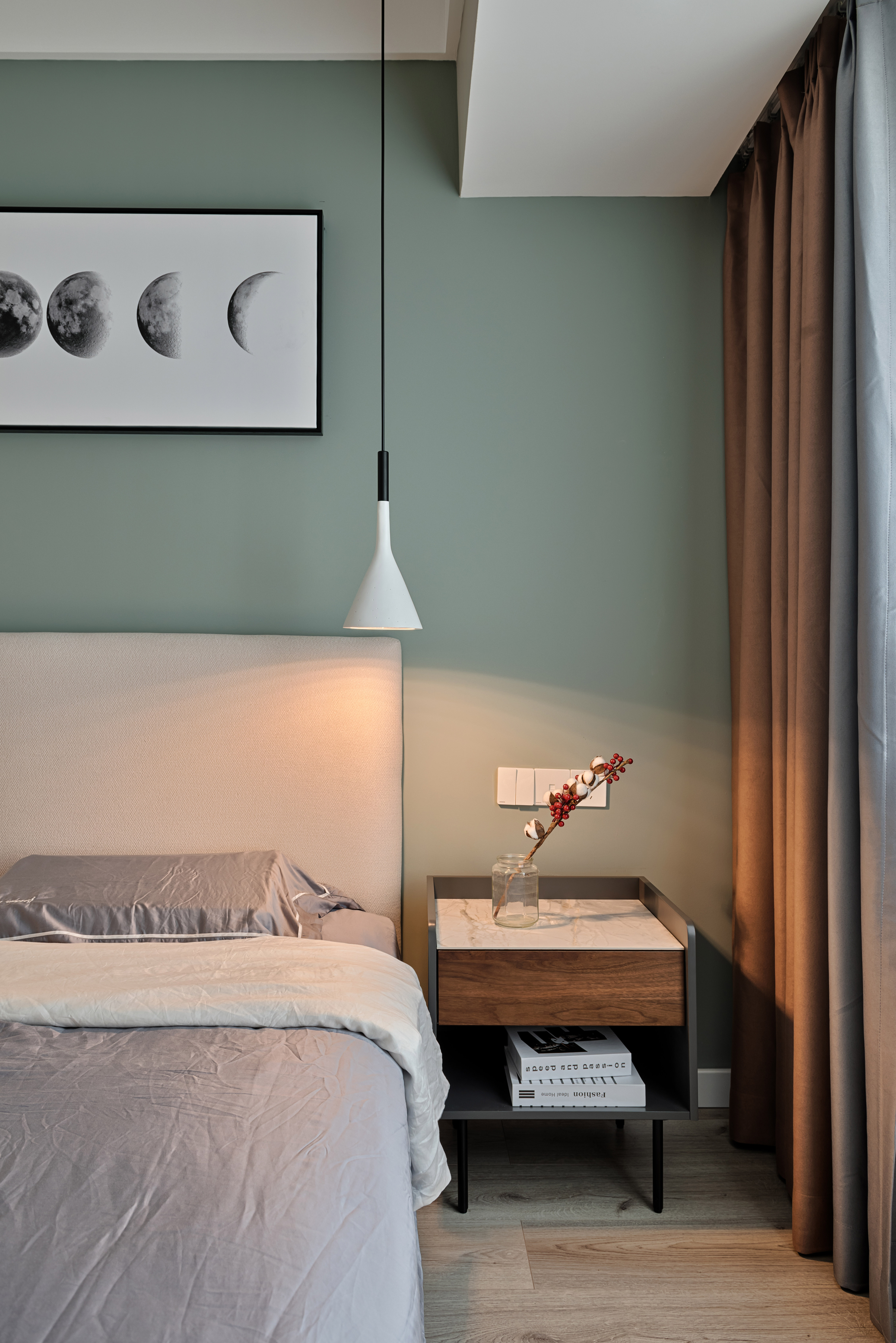 整个空间采用莫兰迪色系的加持,裹上一层合适的外套装扮,让拂过洁白窗纱的微风轻轻抚过你的心房,再让空气里弥漫着初秋浪漫令人放松的味道,在熟悉的日常乏味中放松,日复一日