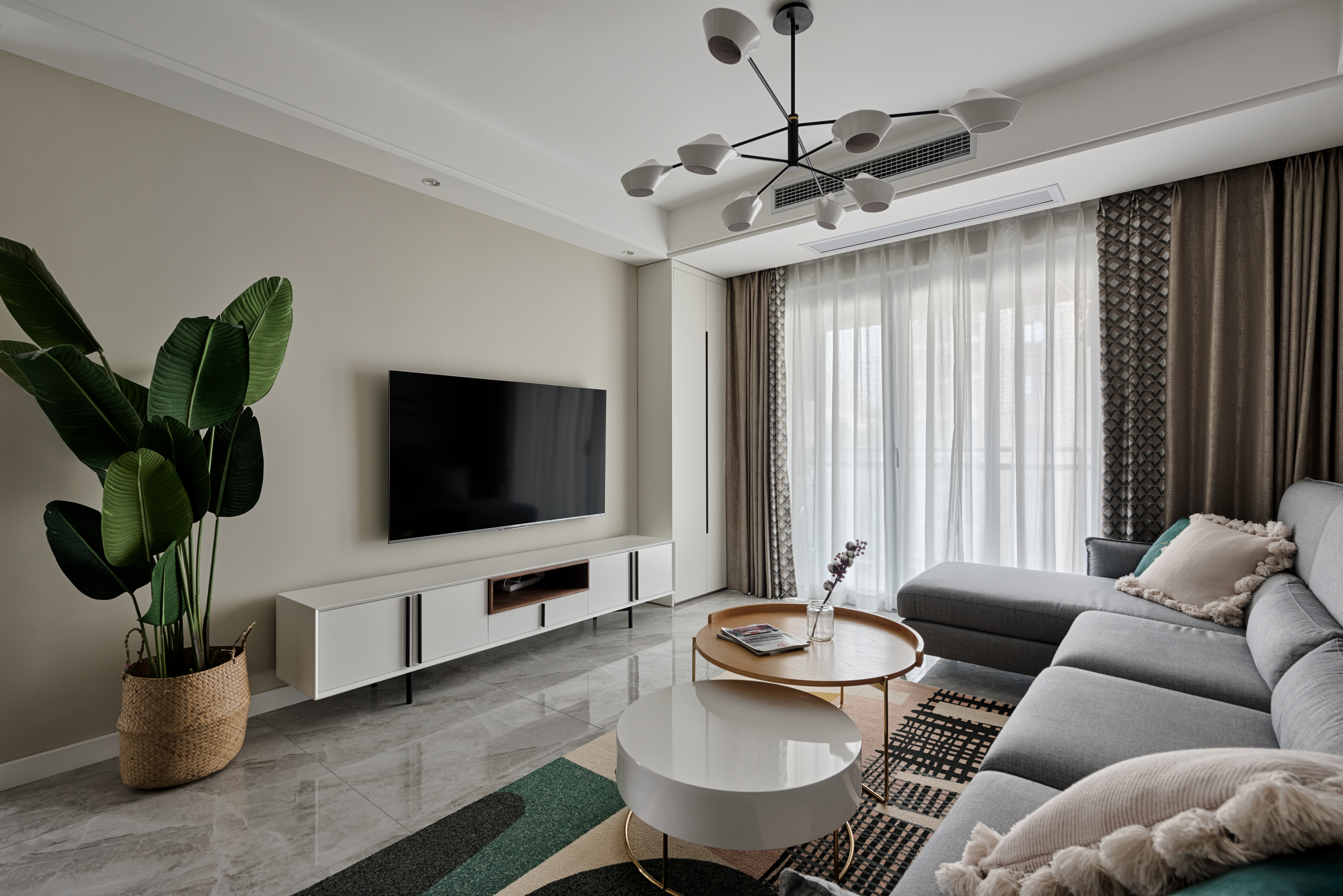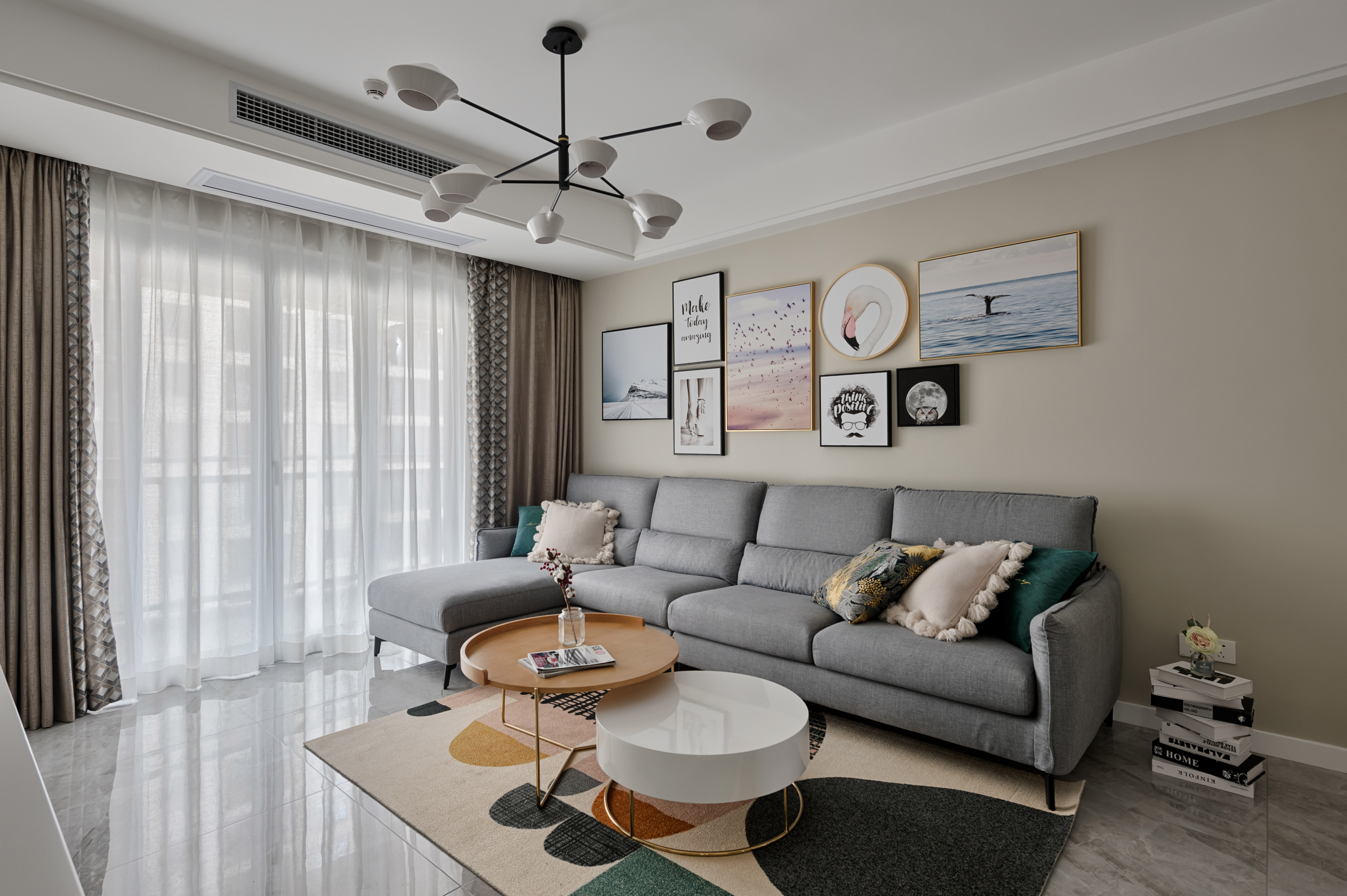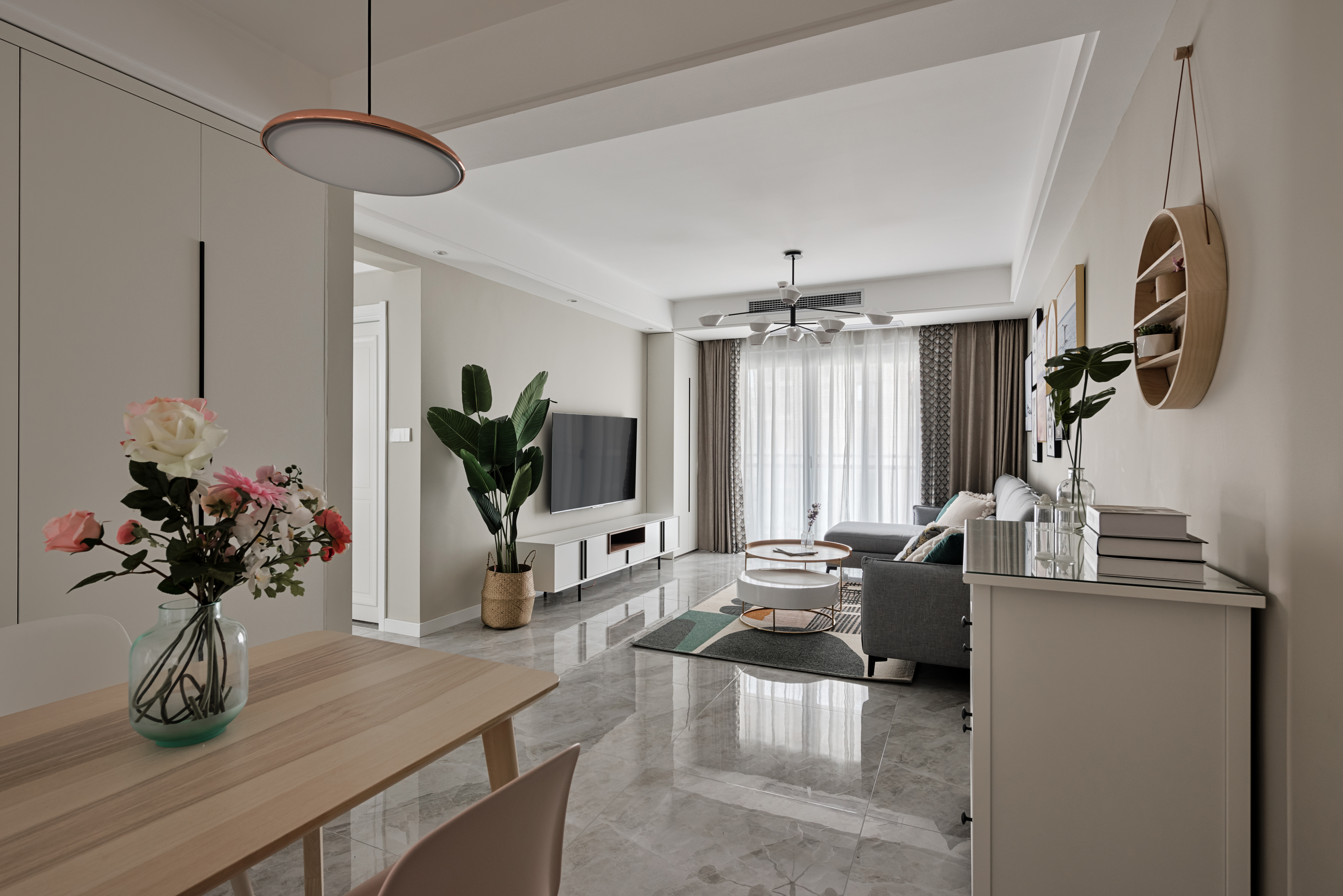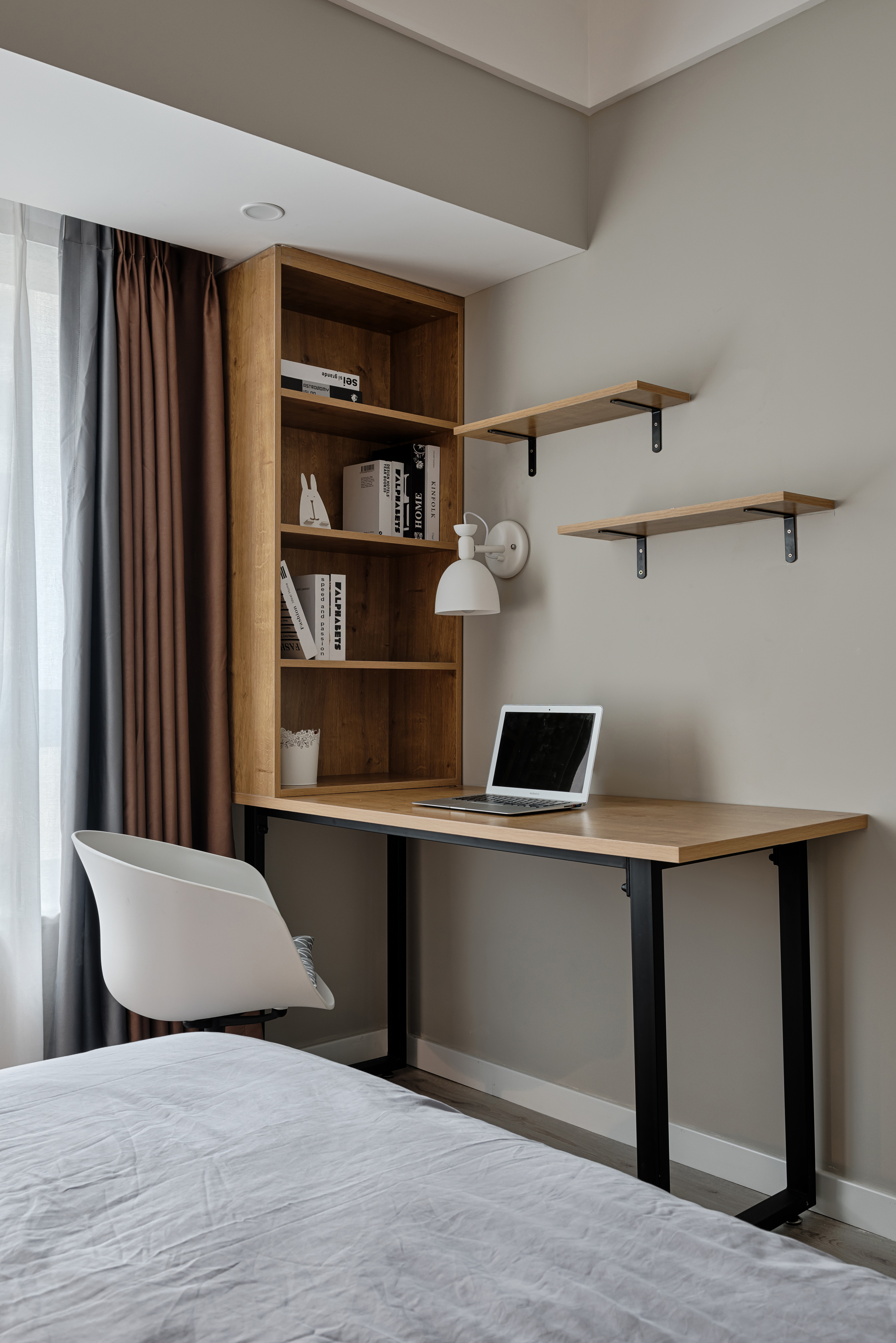 整个空间采用莫兰迪色系的加持,裹上一层合适的外套装扮,让拂过洁白窗纱的微风轻轻抚过你的心房,再让空气里弥漫着初秋浪漫令人放松的味道,在熟悉的日常乏味中放松,日复一日