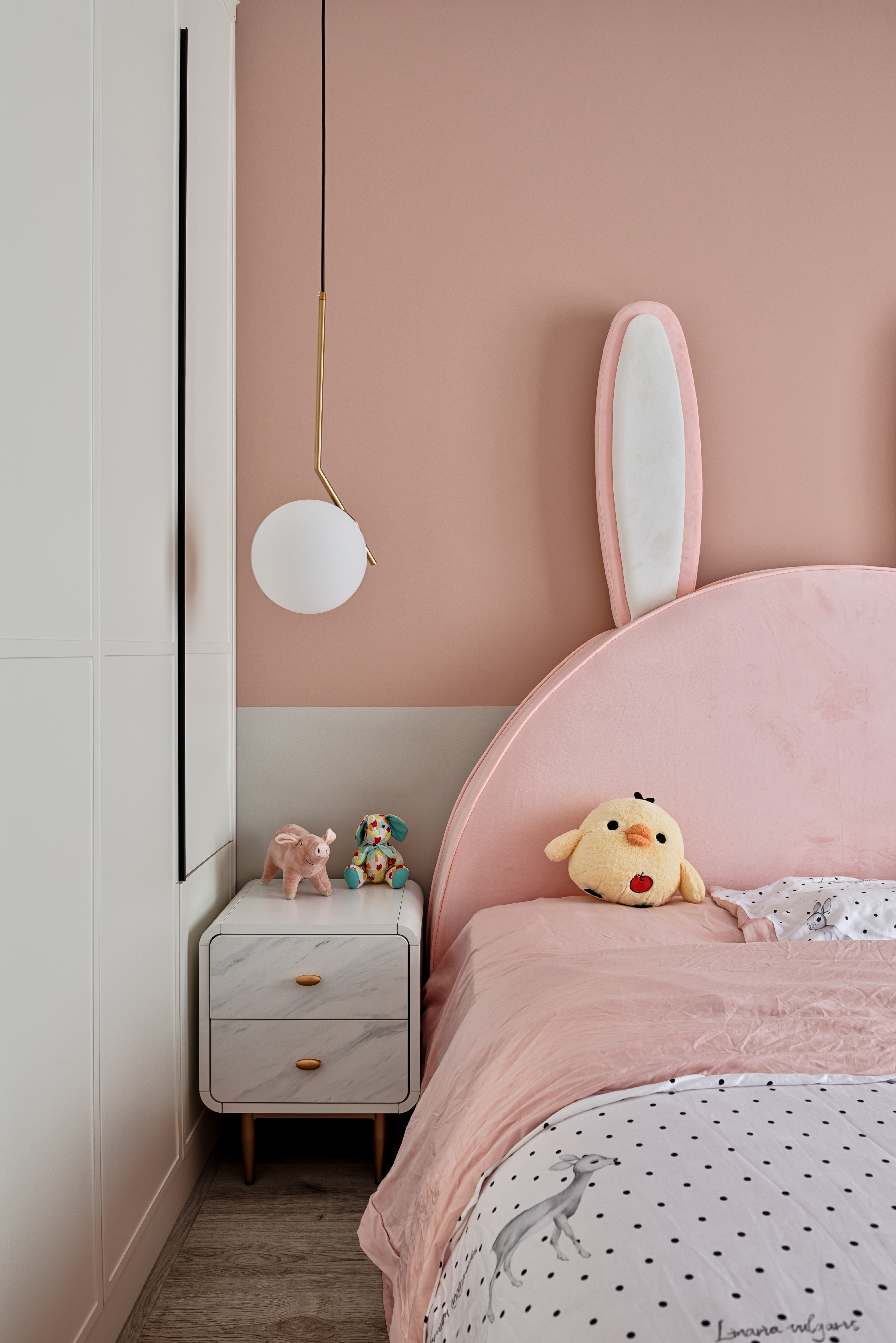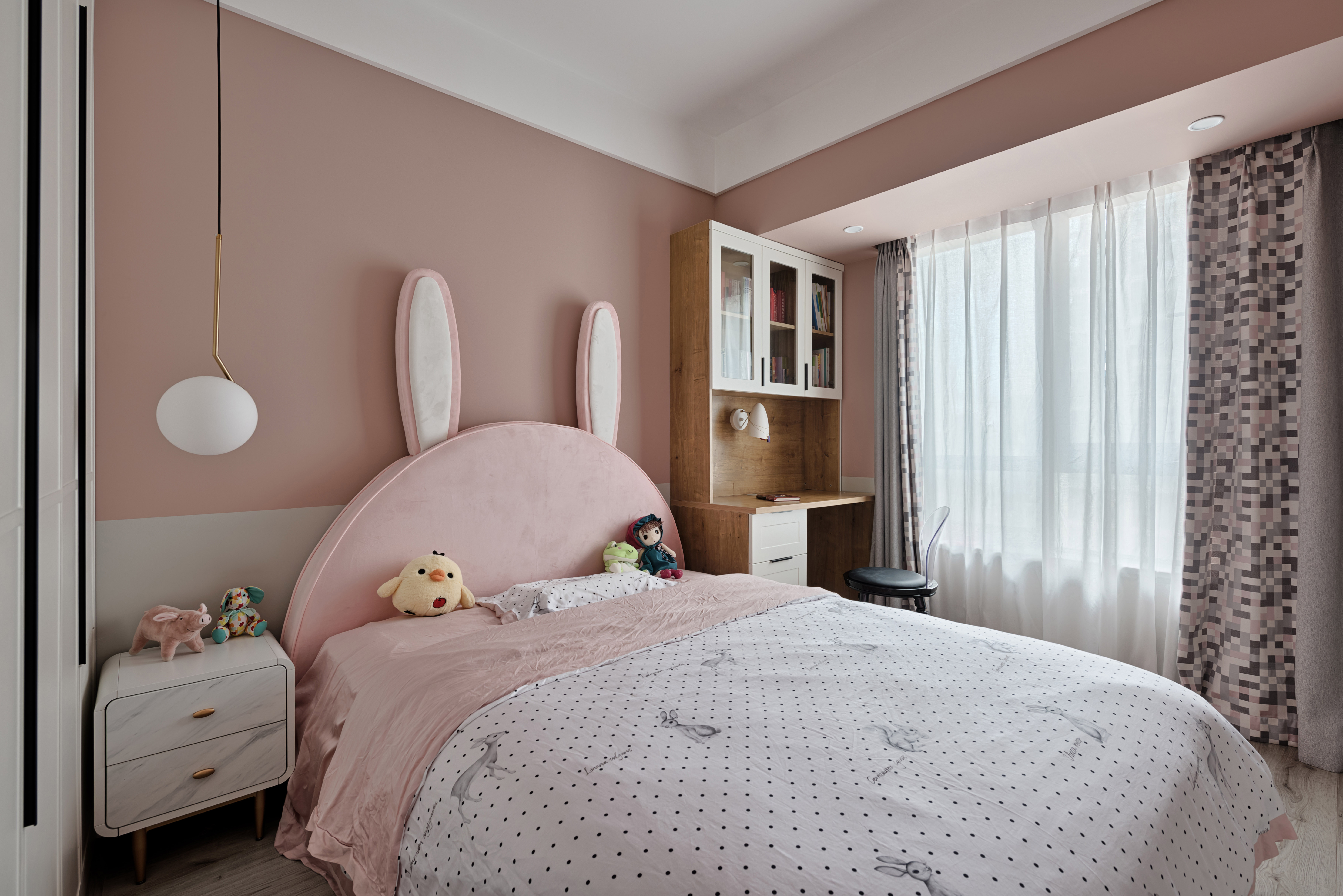 童心是值得留念珍藏的。软萌满分,甜美满分,兔子耳朵床靠的设计+甜美的造型必须能撩起内心深处隐藏的那份柔软,粉色的空间里,“少女心”在房间翩翩起舞,粉色世界每天都能有好心情