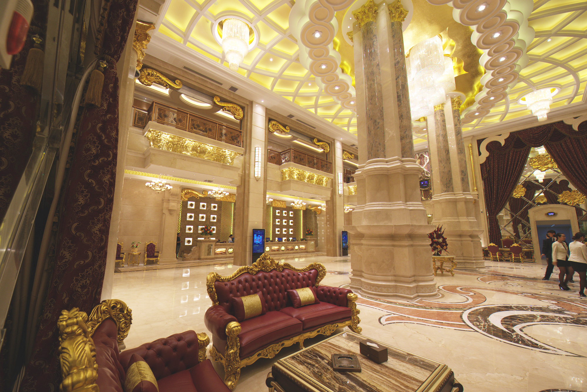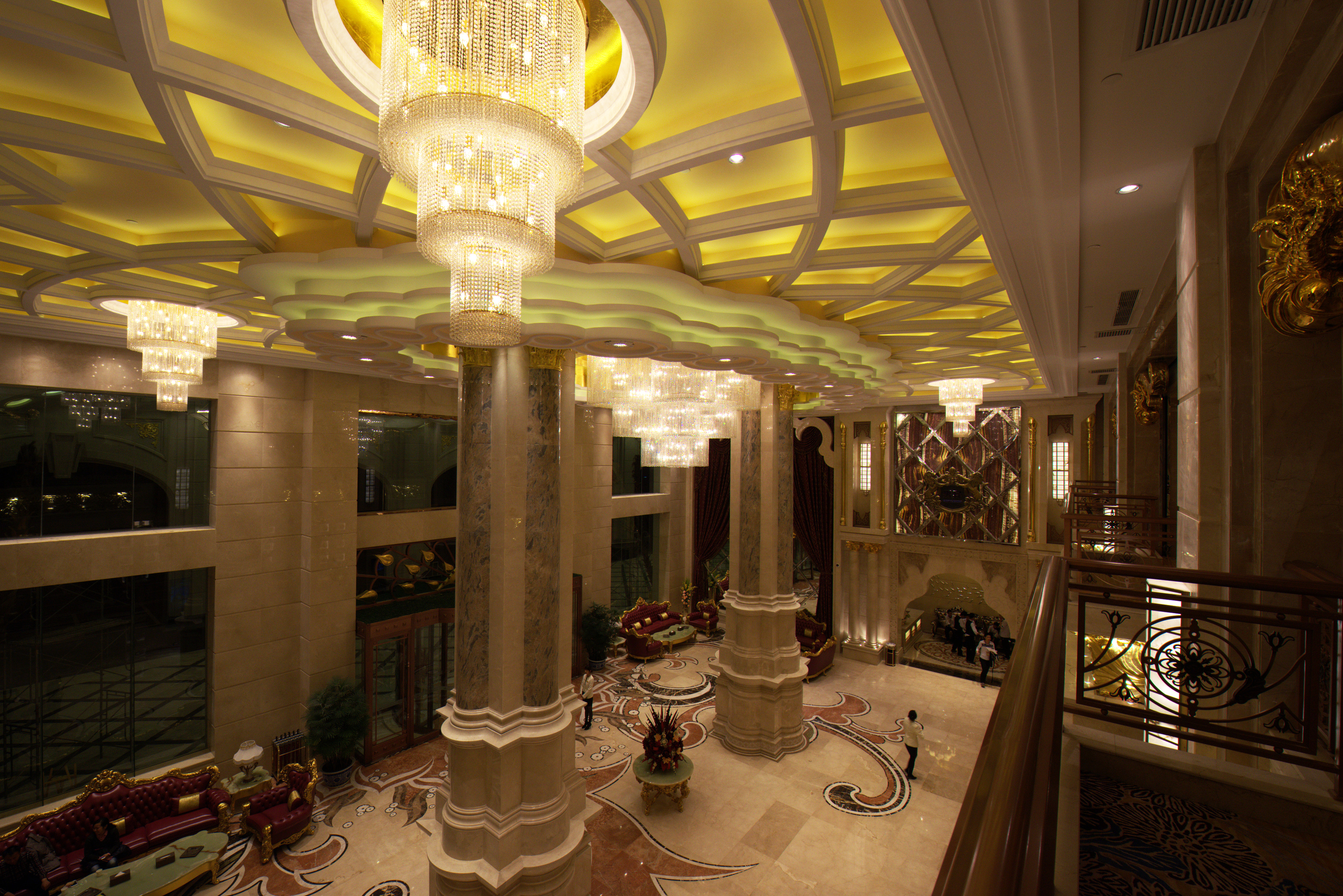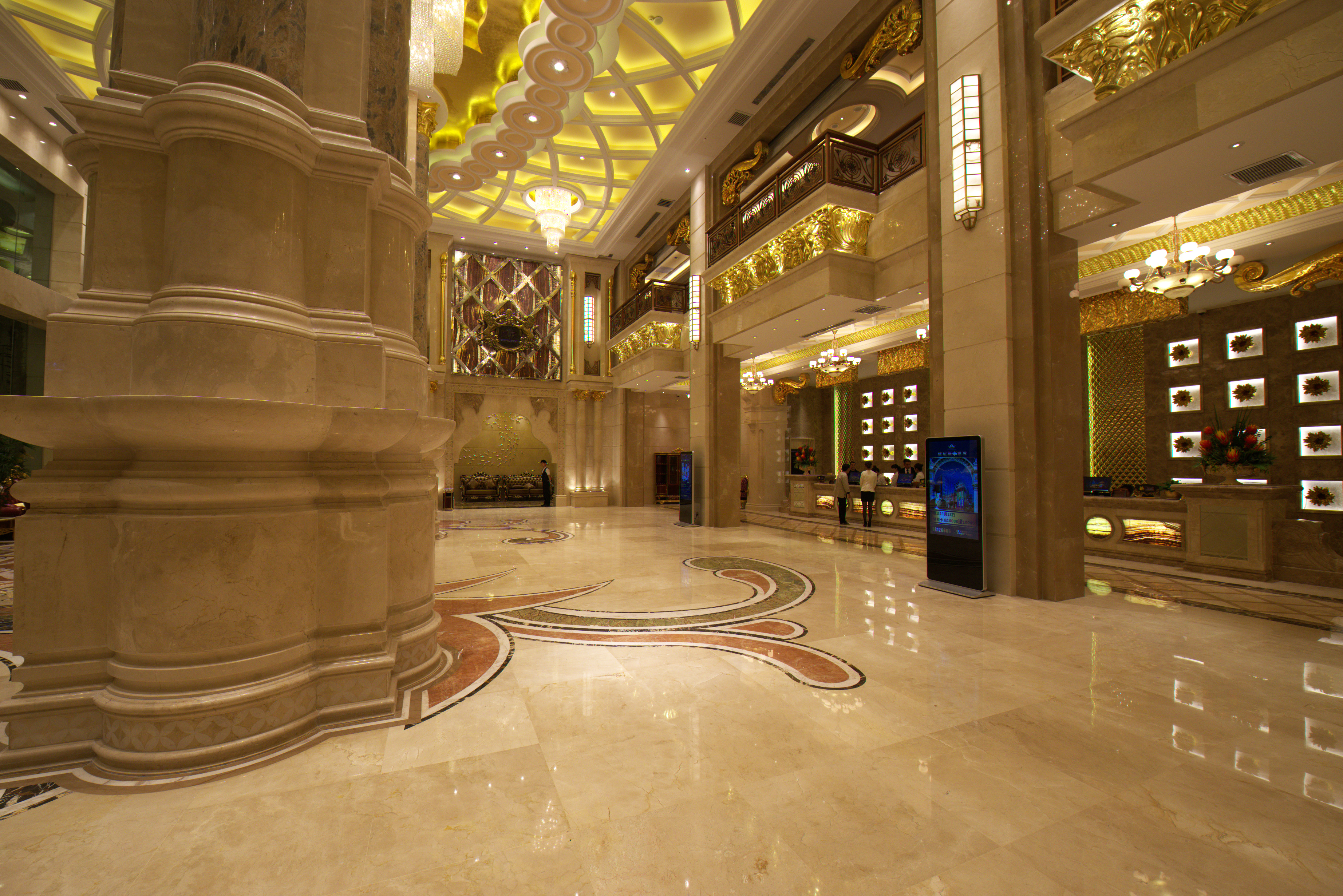 项目定位:设计简约独特,各式花样图案,散发出幽然的光亮,显得生机勃勃,气韵盎然。既有着庄重高贵的气势,也富含宽敞华丽的点缀,呈现出一室的古典韵味,令人顿感扑面而来是的端正稳健。细节上则崇尚自然情趣,散发出清新自然焕然一新的气息。整个空间以暖黄色调为主,内敛而深沉,炫而多彩的吊顶配饰有着金黄色华丽的外表,各色景致相互映衬,一如既往的雅静,仿若置身于奢魅自然的一方天地