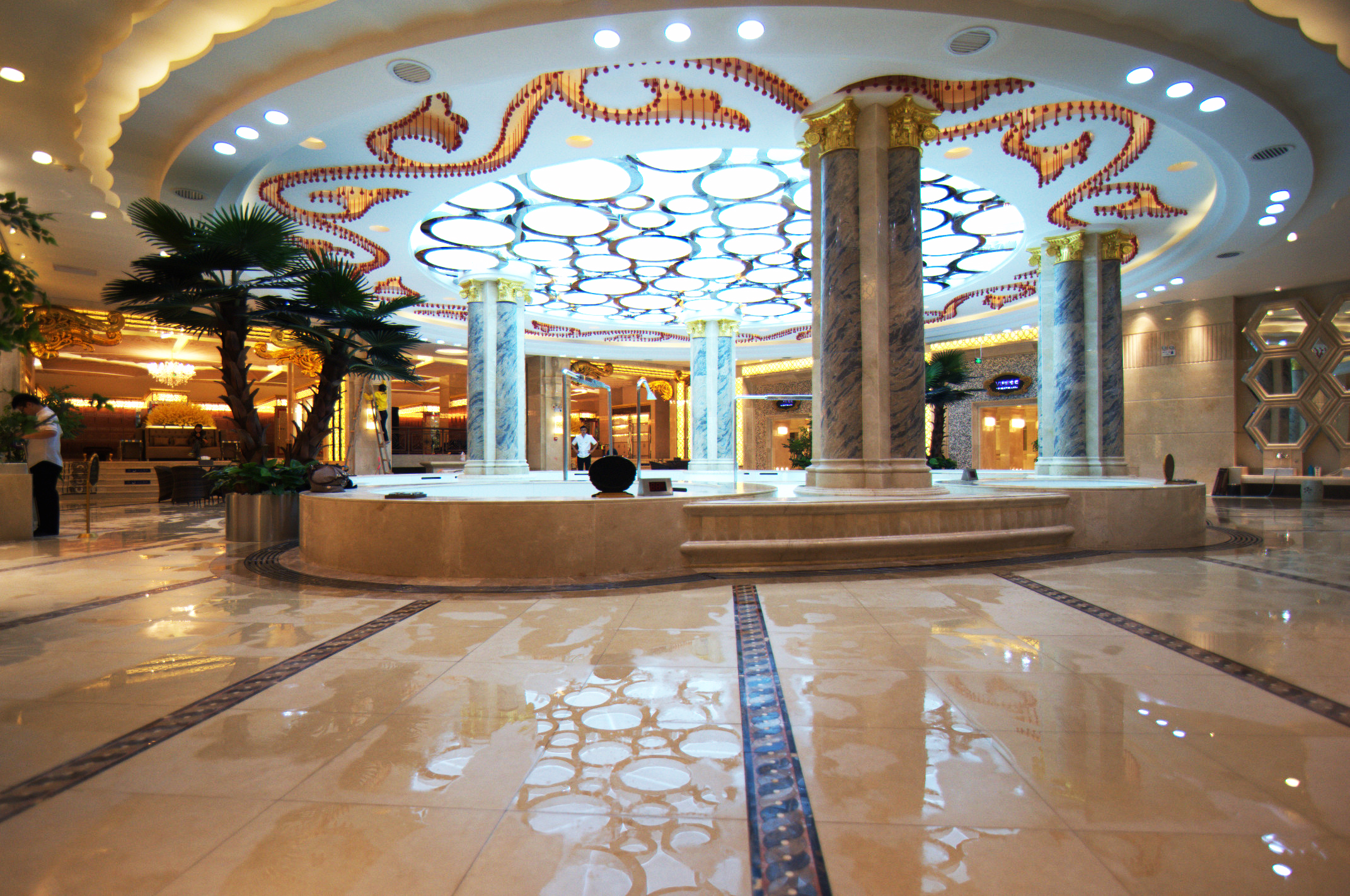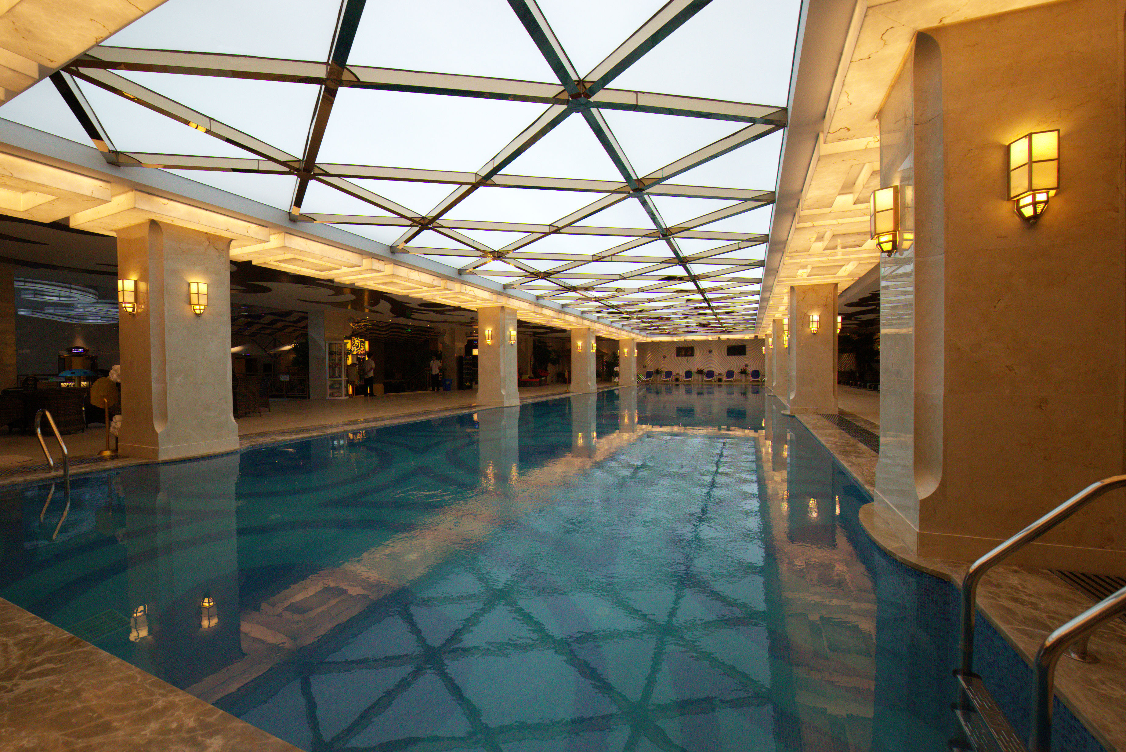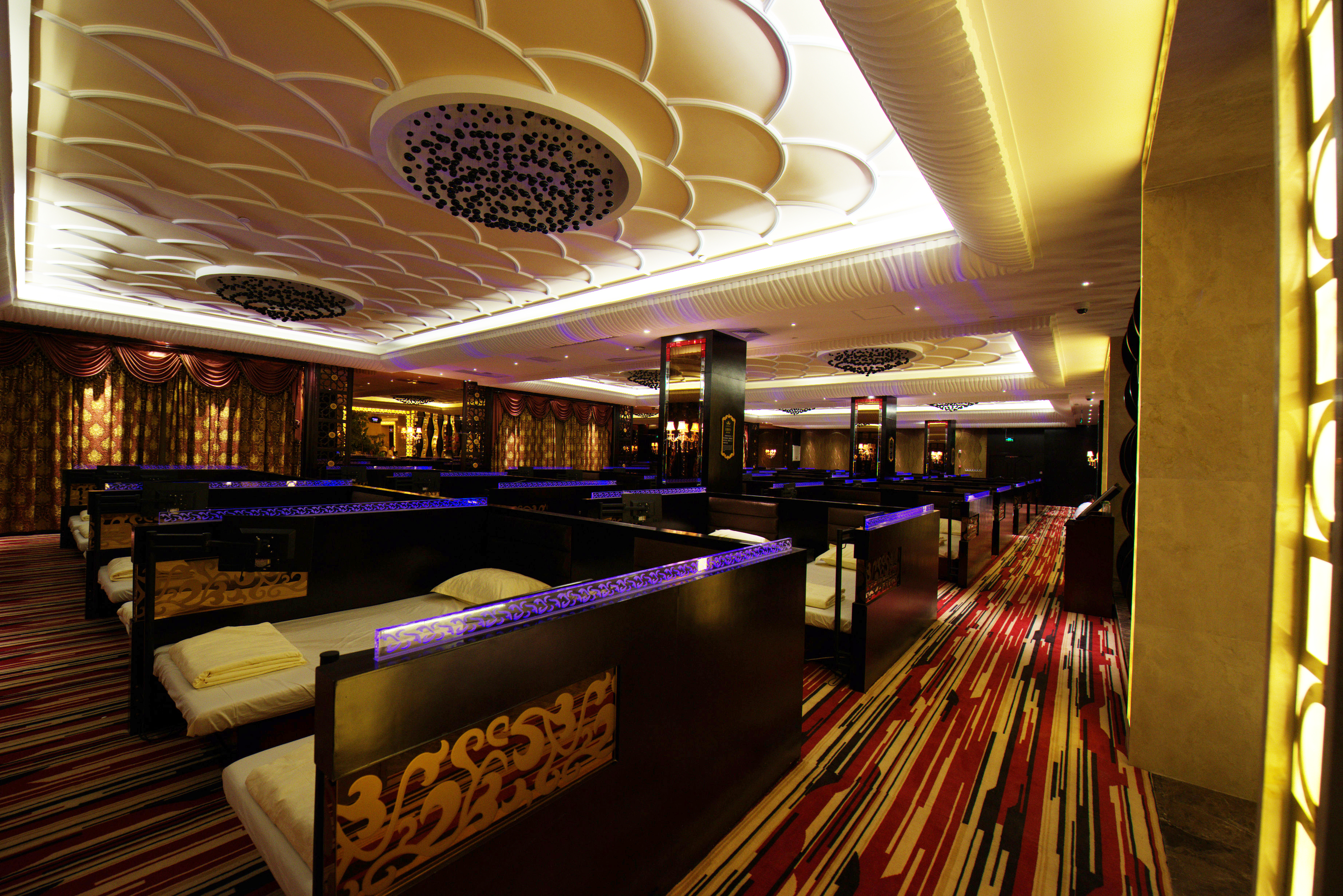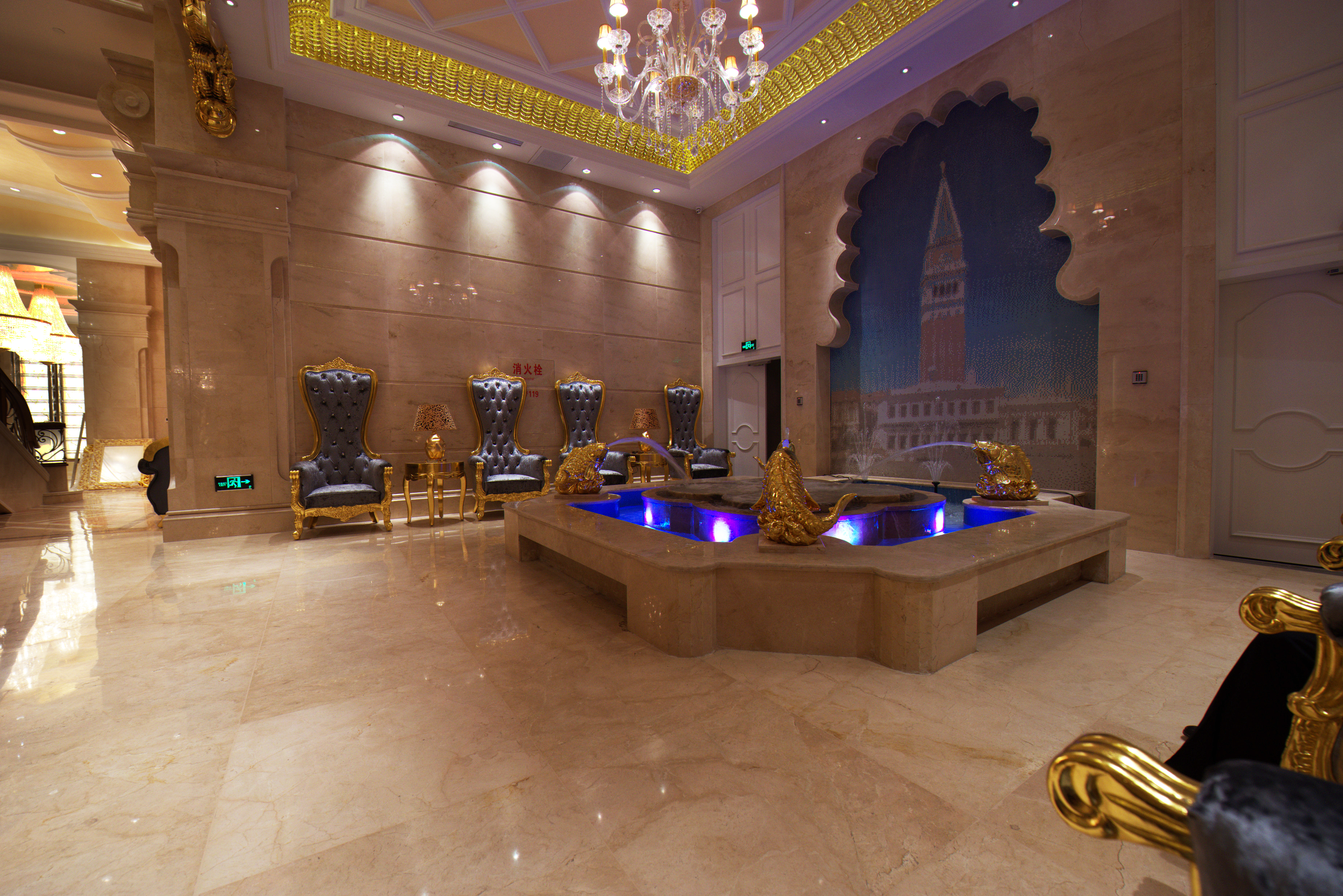 空间布局:会所最鲜明的特点就是定位高端,该设计从建筑结构、色彩、灯光、家具搭配、装饰摆设等各个方面,做到了整体协调、优雅大方、舒适,颇具豪华感、舒适性、优越感,其气派的氛围,让整体凸显独特的气质和与众不同的尊贵,带给客人以和谐与舒适感,完美地呈现水上乐园的主题意蕴和档次