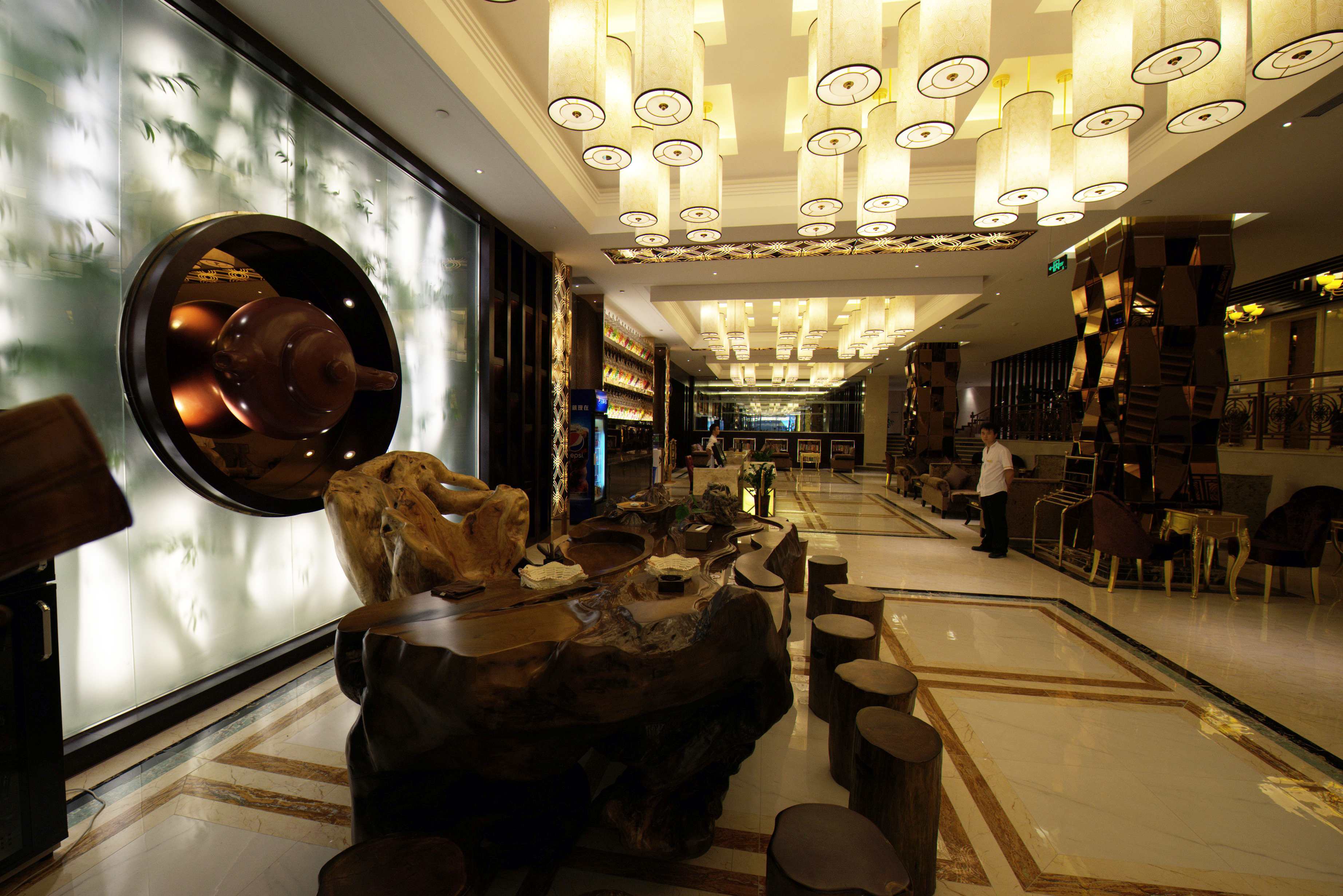 空间意境:幽幽古灯华彩映射而出的妙然之景,皆仿若染了古典月影的清辉,透着一种清澈、静怡、宁和、雅致之美,暖色调和材质质地上取得对比性的协调或统一性的协调,增添了对环境舒适度的提高和景观焕然一新的比例。既融括了多种色彩,又借助色彩的变化凸显风格元素的结合,引得人们流连忘返、心驰神往。