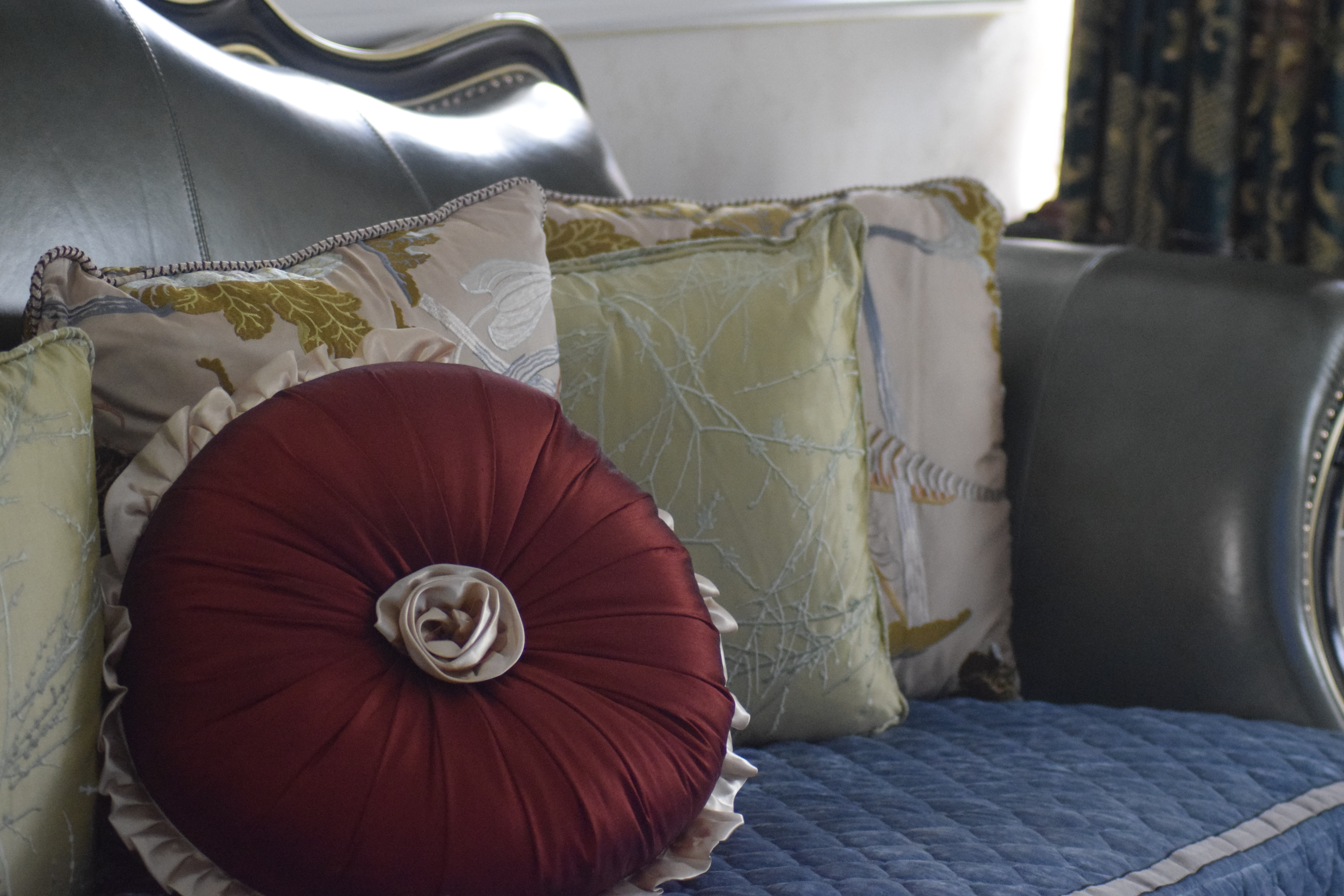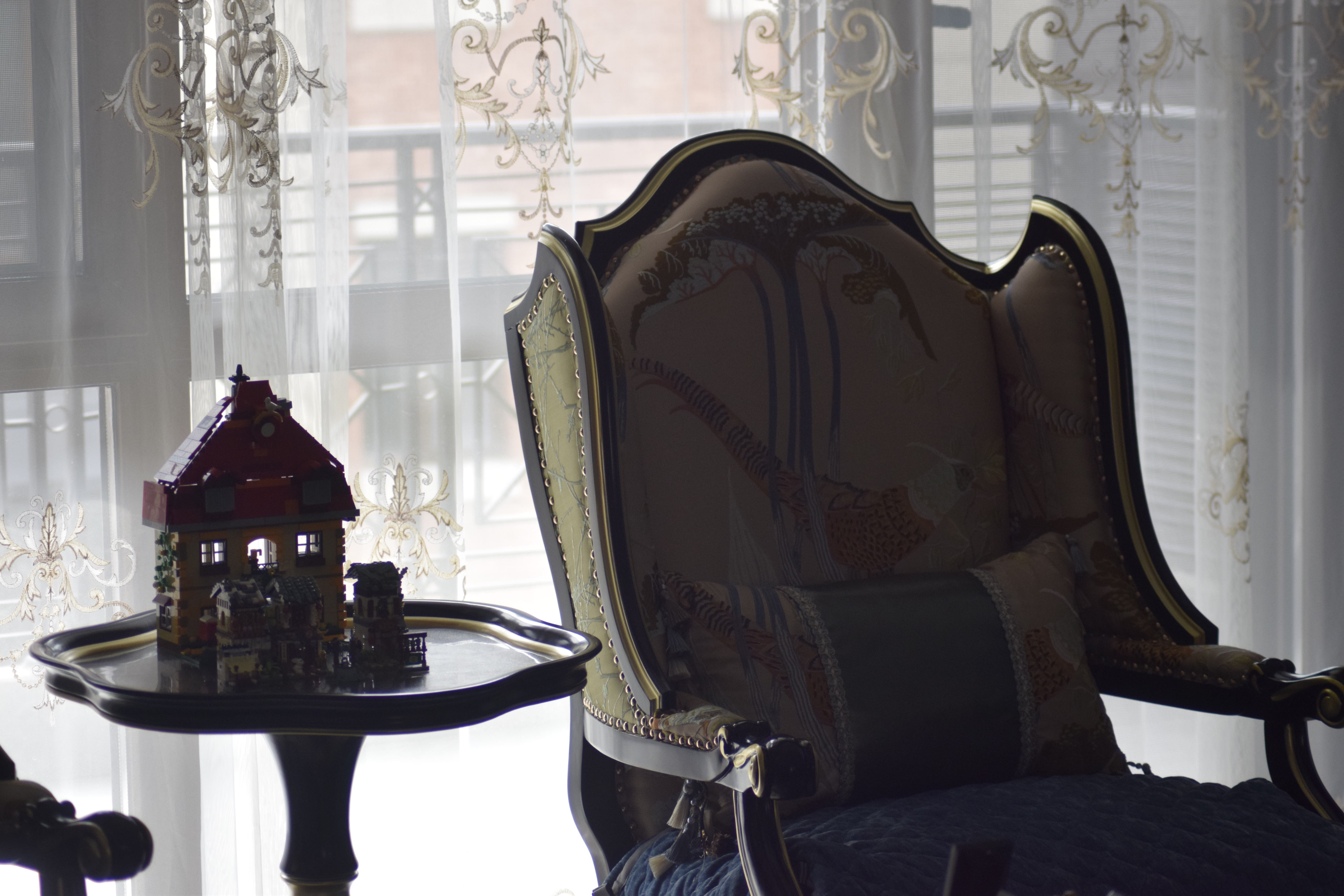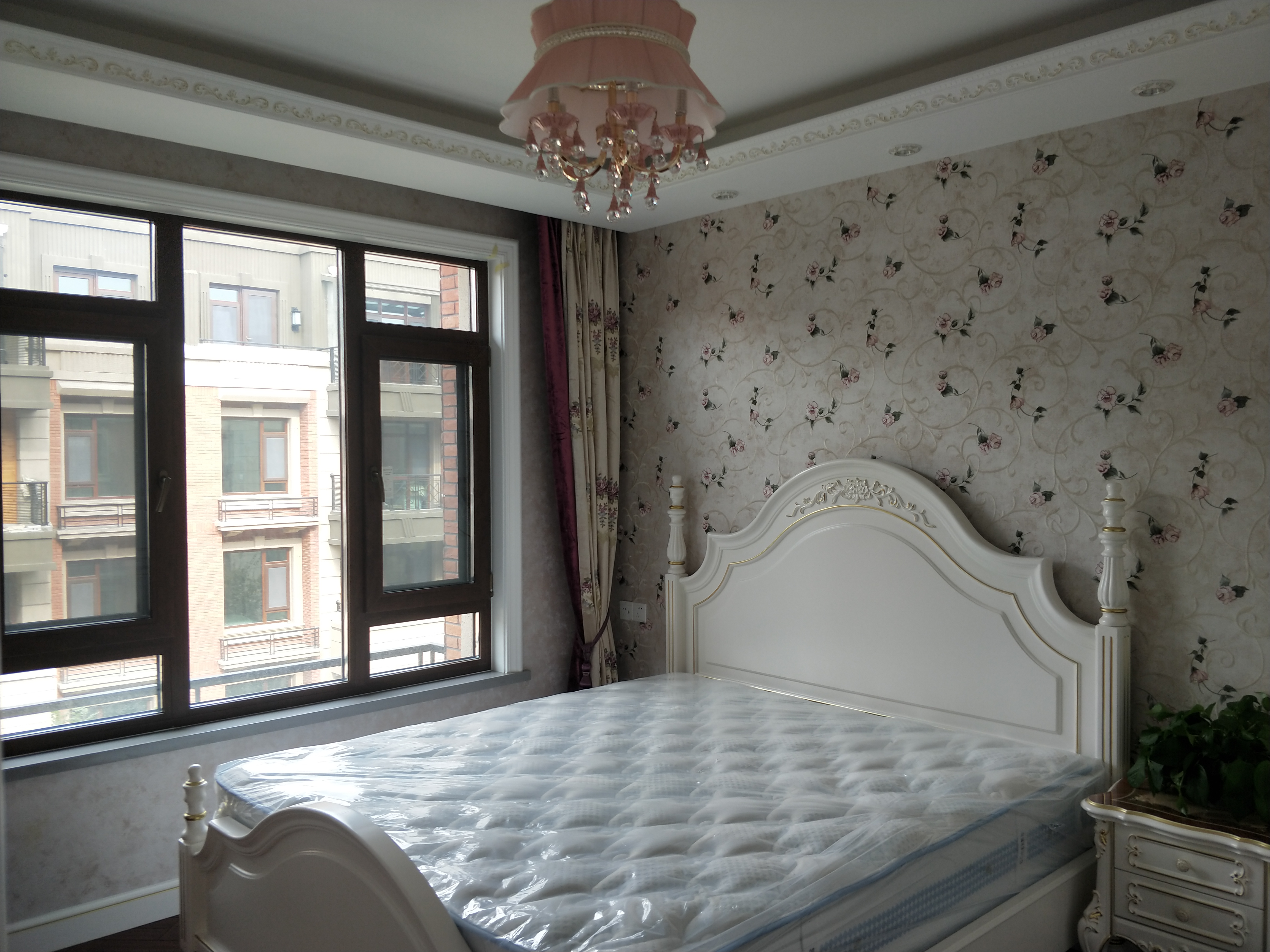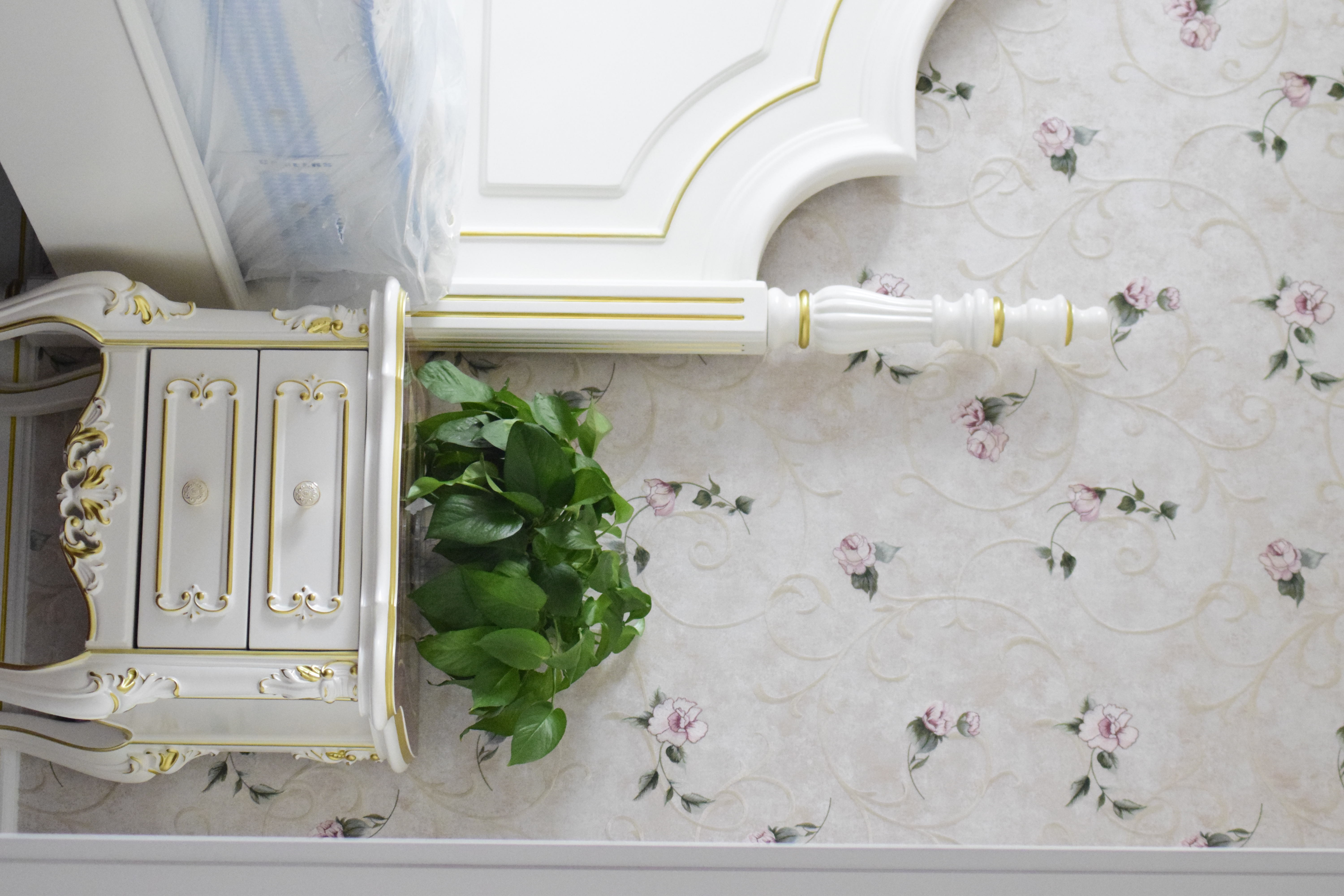 空间意境:色彩对比明确,浅色丝光质感墙纸及深色墙纸提升质感,灰色、金色互补在浅色基调架构起高贵典雅的清新浪漫环境,且到处弥漫着女性的温柔及梦幻。