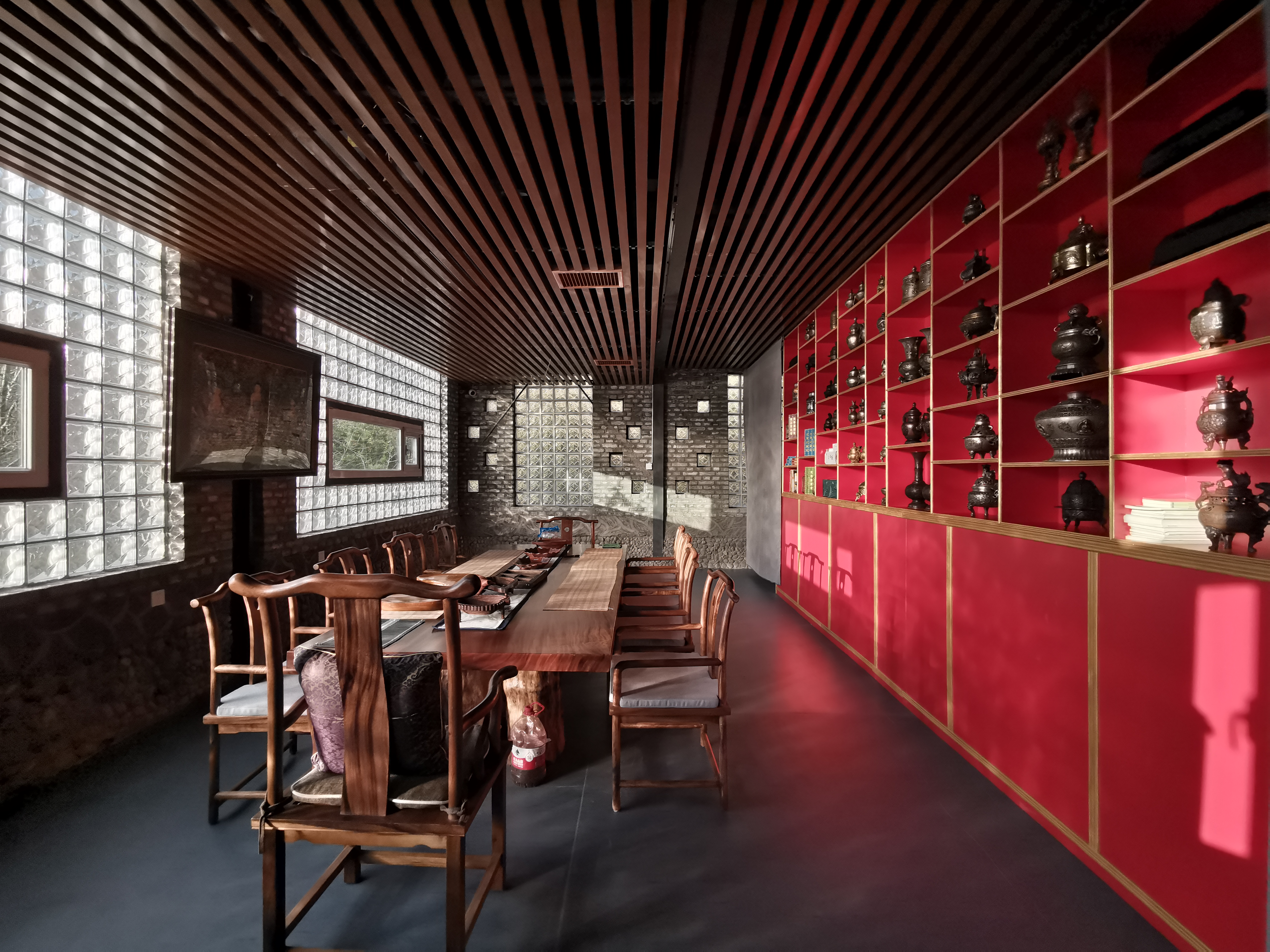 项目定位:该项目在地域上首先就有其唯一性,项目地位于国家级森林公园石佛沟国家森林公园内,其在地性也是其唯一性,而且紧邻灵岩禅寺,在这个地方做一个唐卡和佛像为主的展厅在合适不过。主体结构为三层框架建筑,展厅位于其上,新建钢架结构两层,分上下两层,中间为中空挑高为6米,一层200平米。项目定位为私人收藏博物馆,主要以精致唐卡和尼泊尔手工精美佛像为主。其中有一套存世不多的卓尼版藏文大藏经为镇馆之宝,具有独特性和稀有性。我们想做一间不囿于固定年龄和性别、别开生面的展厅,让观者看有就心生欢喜。希望人与空间产生互动,可以好奇、