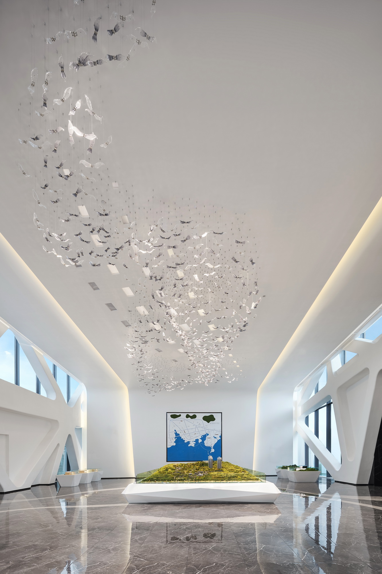 空间意境:艺术馆软装设计,呼应建筑及硬装“山海共融、回归自然”的设计理念,以丰富的艺术想象升华自然之美。
