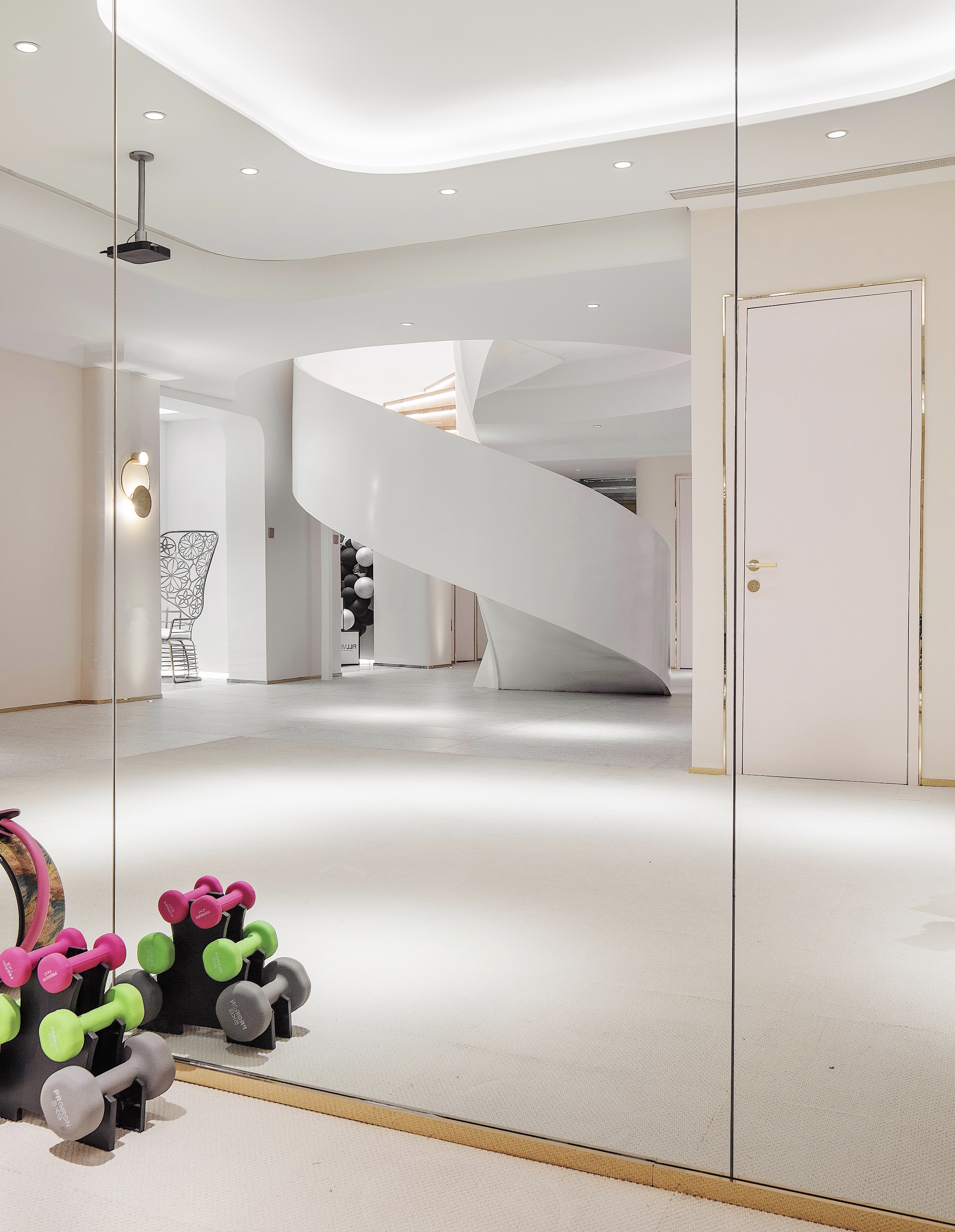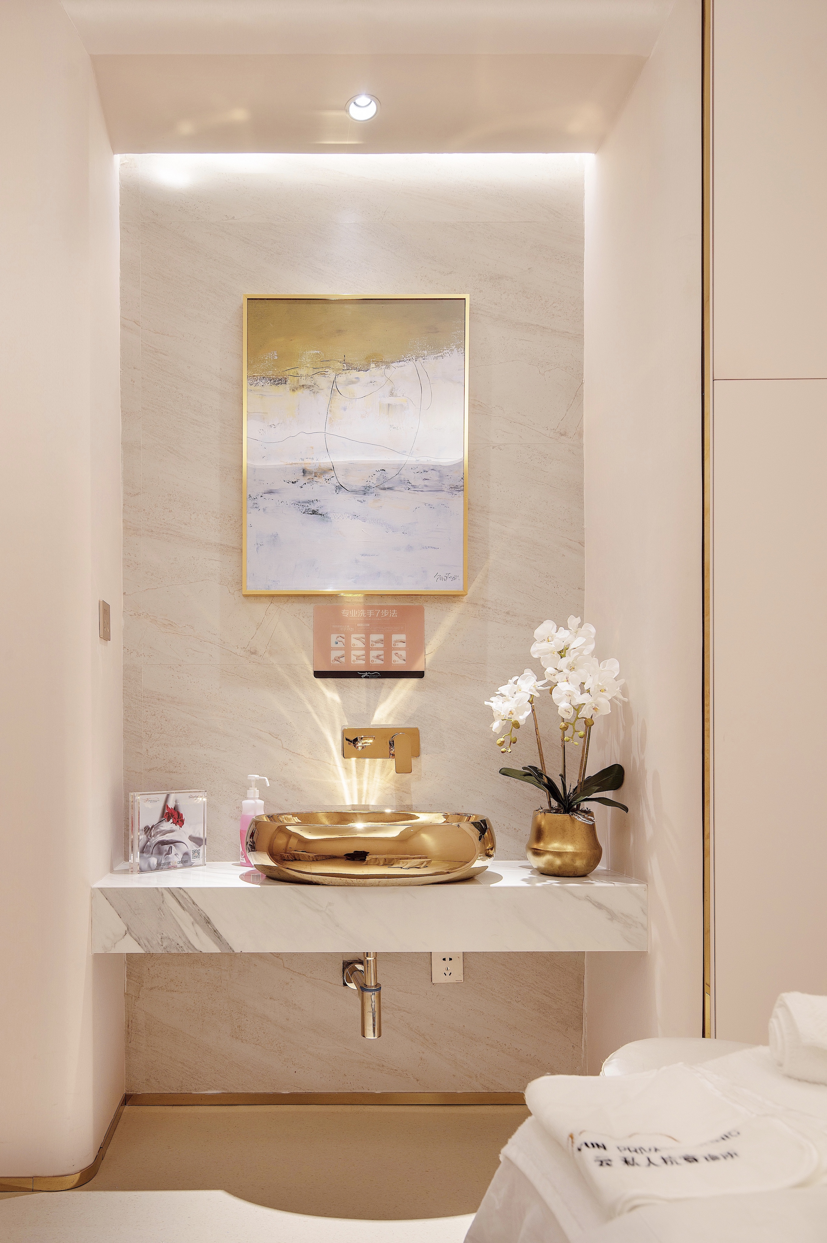 大面积的米白色配上金色的装置和摆件点缀,使整体空间的纵深感得以立体张扬。