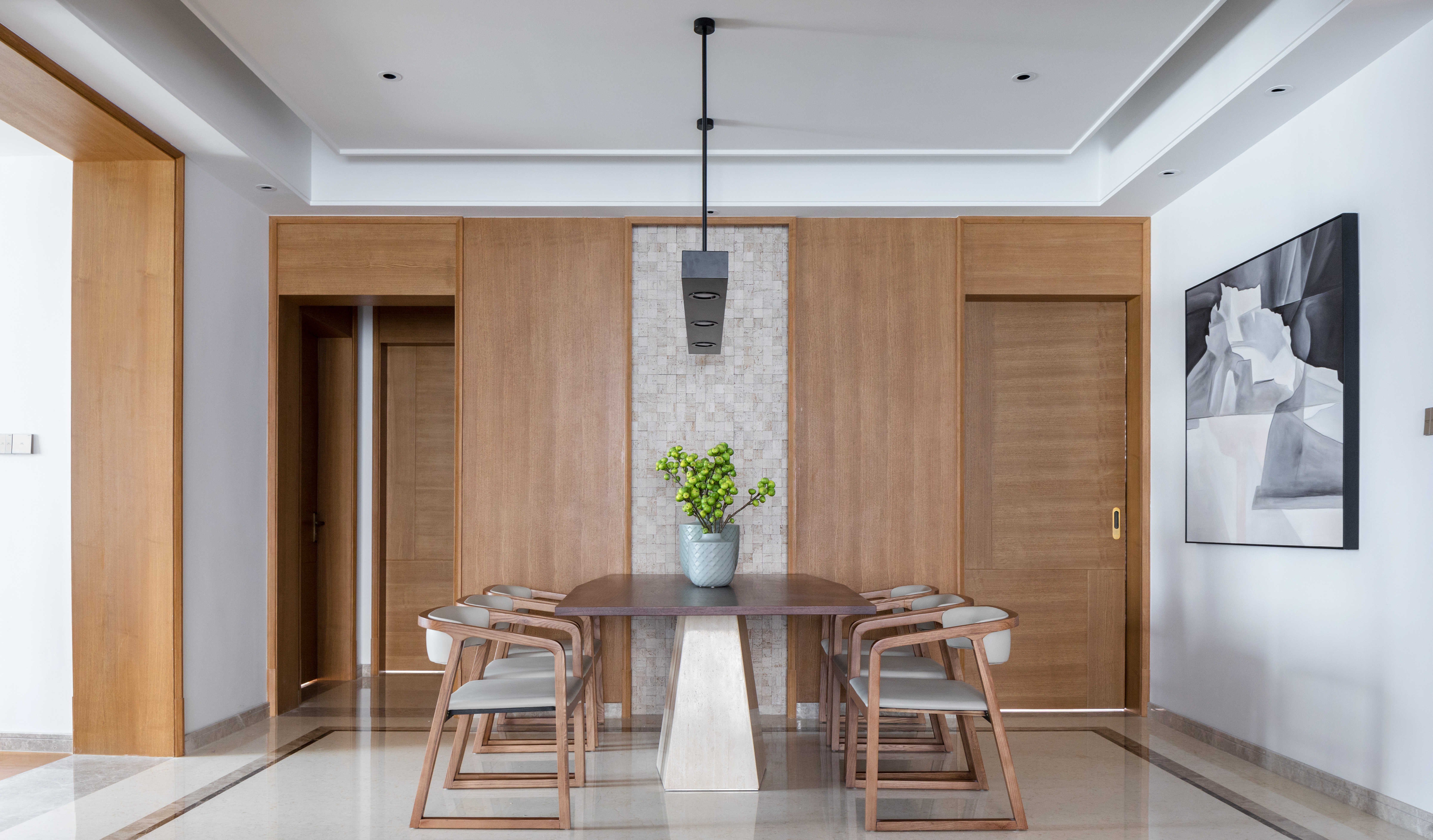 空间意境:当生活回归理性,“少即是多”的设计手法亦是一种简单的高品质生活体现。面对繁华喧嚣的都市,当回到属于自己的生活中,只有舍弃繁琐,追求更简单的生活,才能找到一份属于自己的心灵归属。