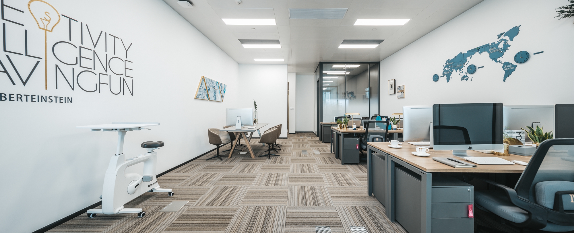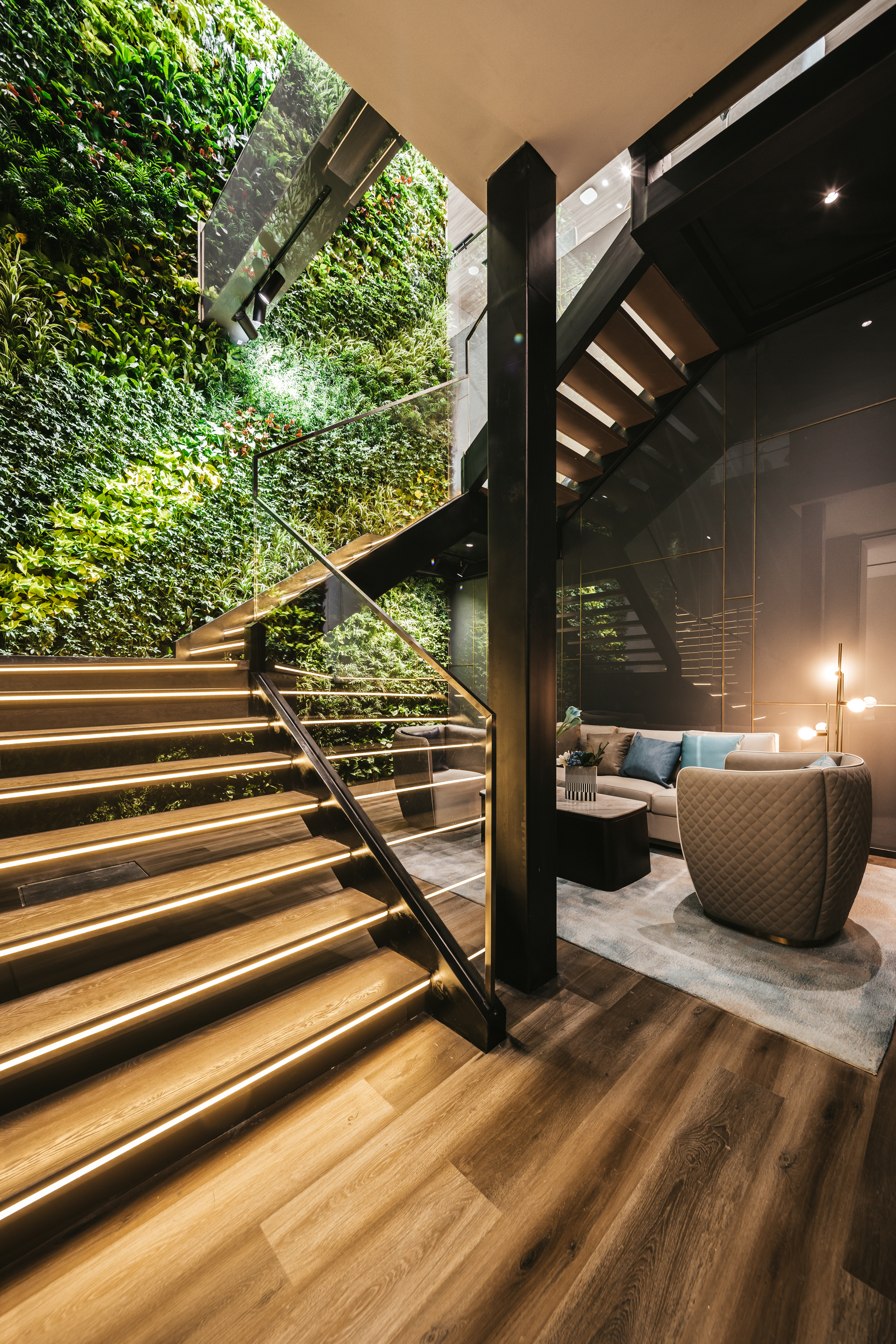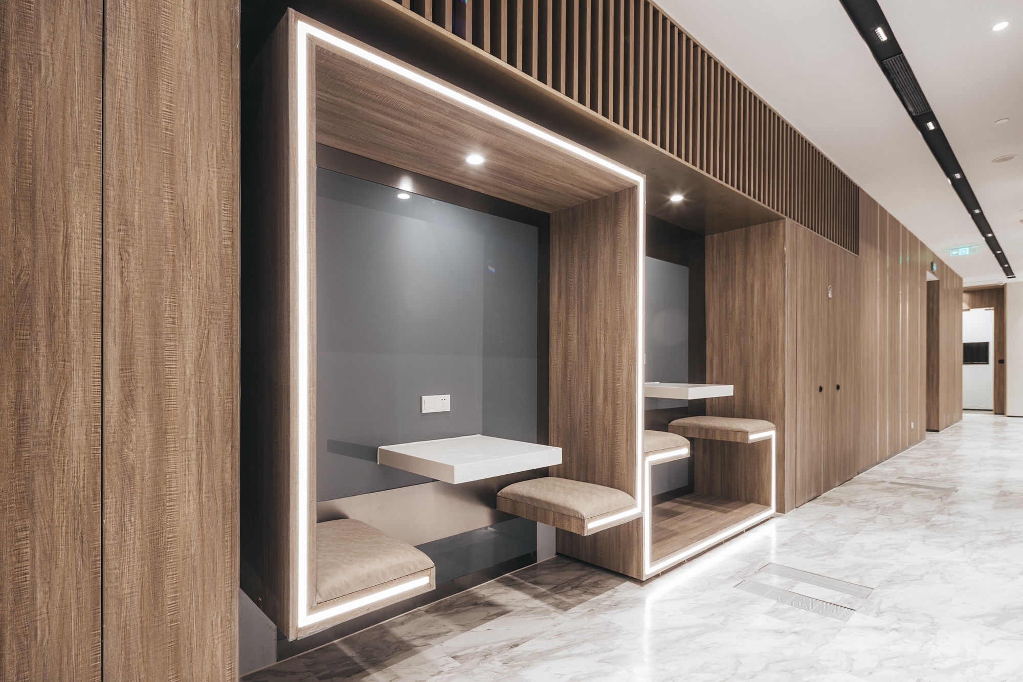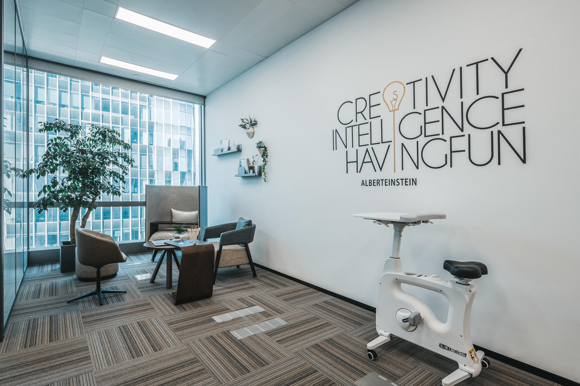 空间布局:空间设计布局上,Distrii办伴将17-18层打通,用楼梯联结上下,既扩大了空间视野,也加强了社交属性,促进空间内人员交流。考虑到金砖大厦办公空间金融企业居多,对灵活办公的需求更为强烈,因此在空间功能规划上,Distrii办伴以面向中大型企业,具有独立私密空间、独立走廊设计特性的超能办公室为主,配以少量小型具有格调独立办公室,进行多功能空间匹配,既保证空间的灵活性,又不失私密性。此外,金砖大厦空间还具有一个独特亮点——新型的地送风系统,这种新风净化系统,有助于加速办公空间中的空气流通、净化速度,并且还能