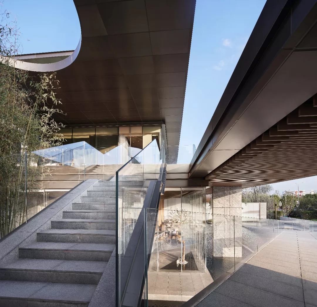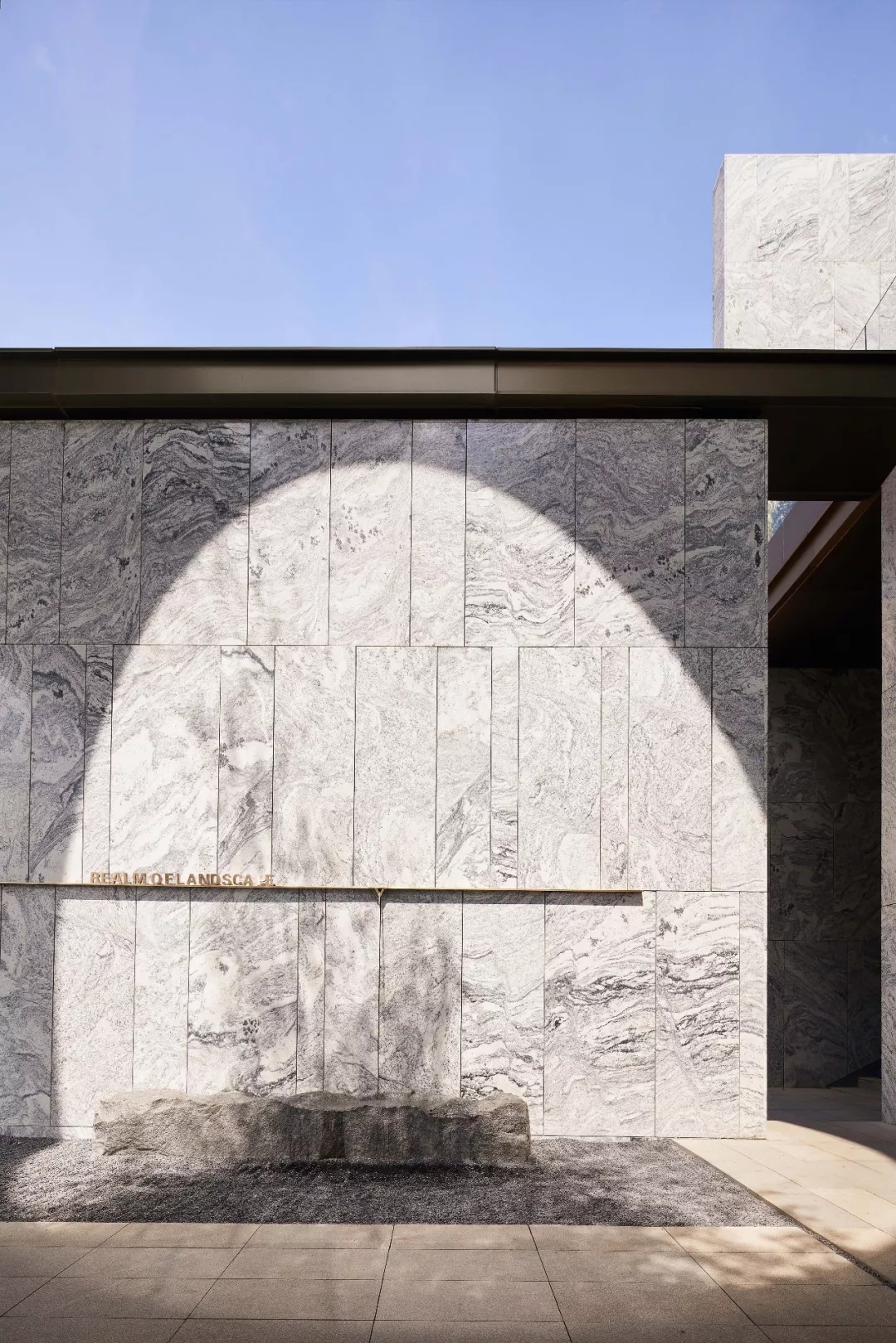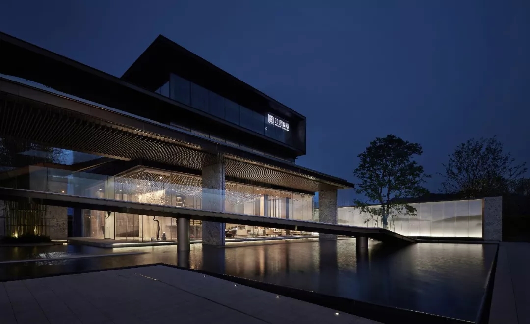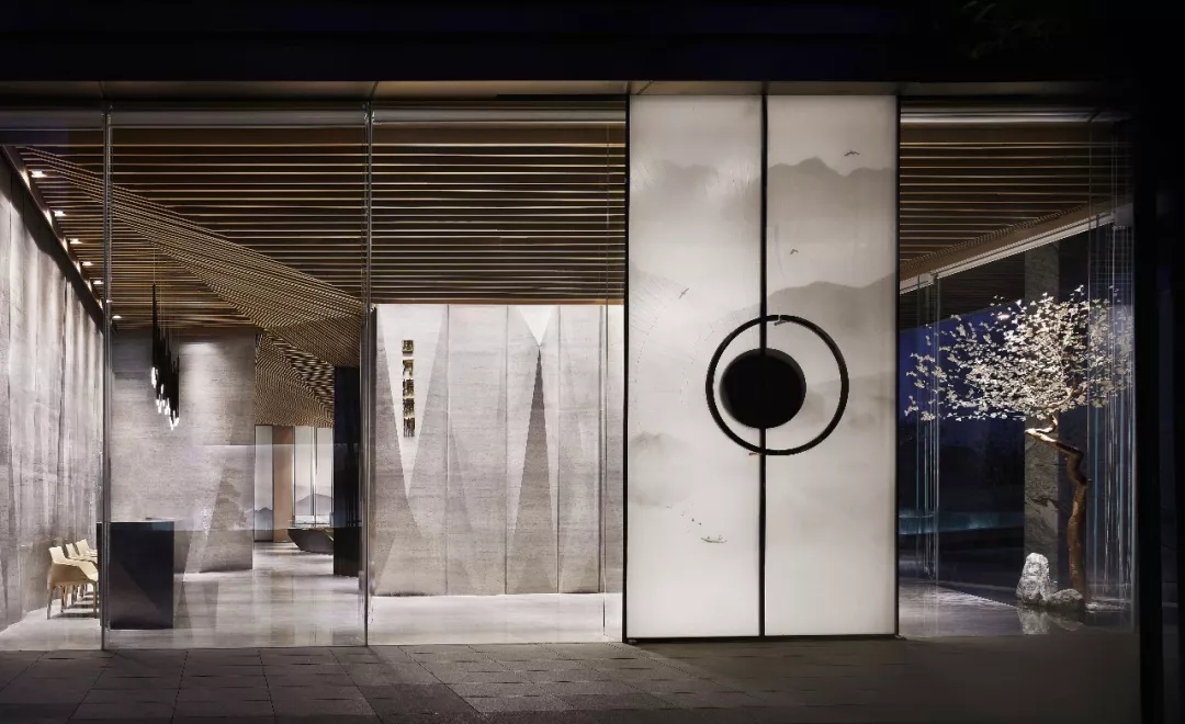 项目定位:在本案设计中,设计师通过追溯本源,立意营造,呈现了自然与传统交叠、人文与当代并置的隐逸场景,将空间的平面范式扬升至立体视像的高度,真正让人观境由心,归逸山水。大面积的玻璃轩窗,搭配水墨叠峰的卷帘,一开一阖间,意境互换,室内外的自然与人文相融共生