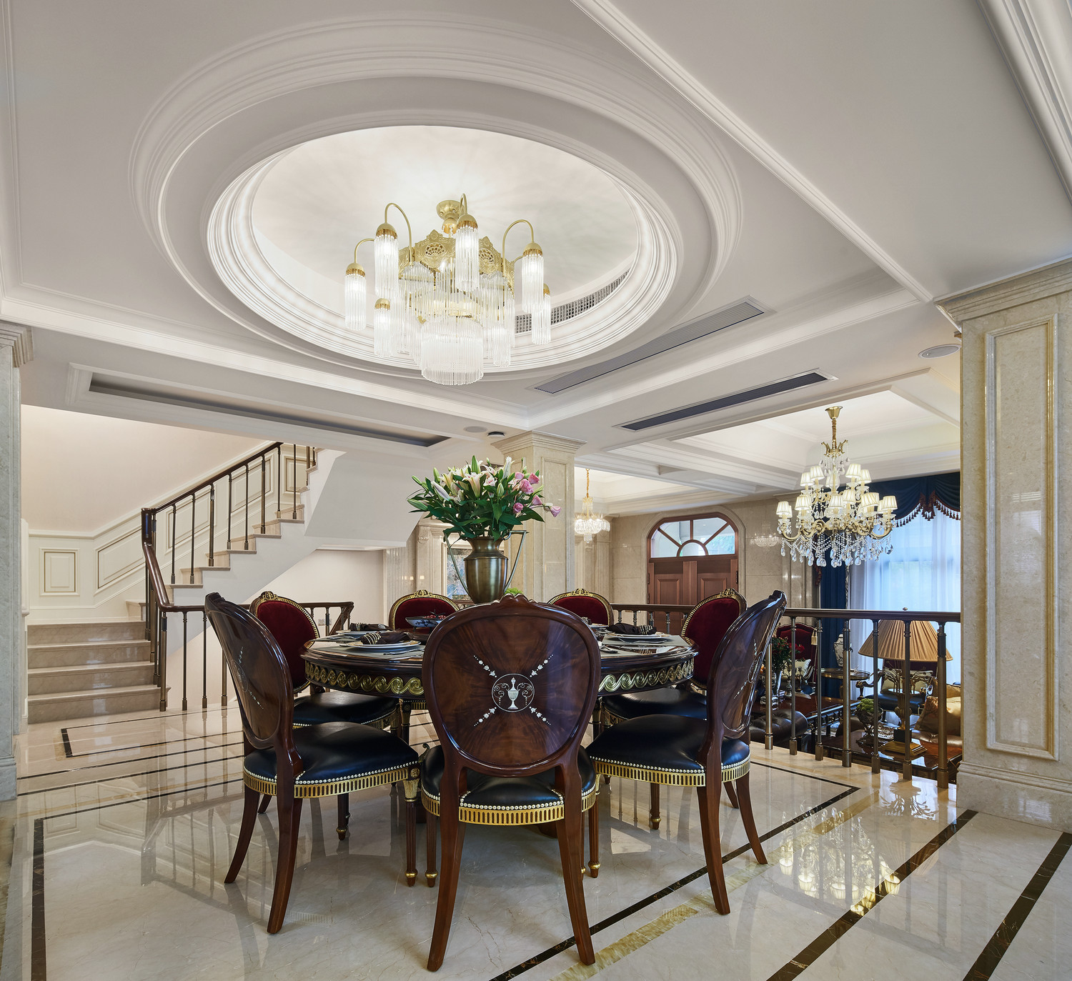 欧式风格素来以追求高贵奢华为主,在整个空间的氛围营造上,设计师也是力求奢华。但是除此之外,设计师更希望这是一个具有特殊存在意义的空间,是可以呈现主人丰富生活阅历的空间,因此结合主人的生活习惯以及爱好,设计师重新解构了传统的欧式风格,融入了当地传统的一些设计元素,使之呈现出更适合东方人的欧式风格。