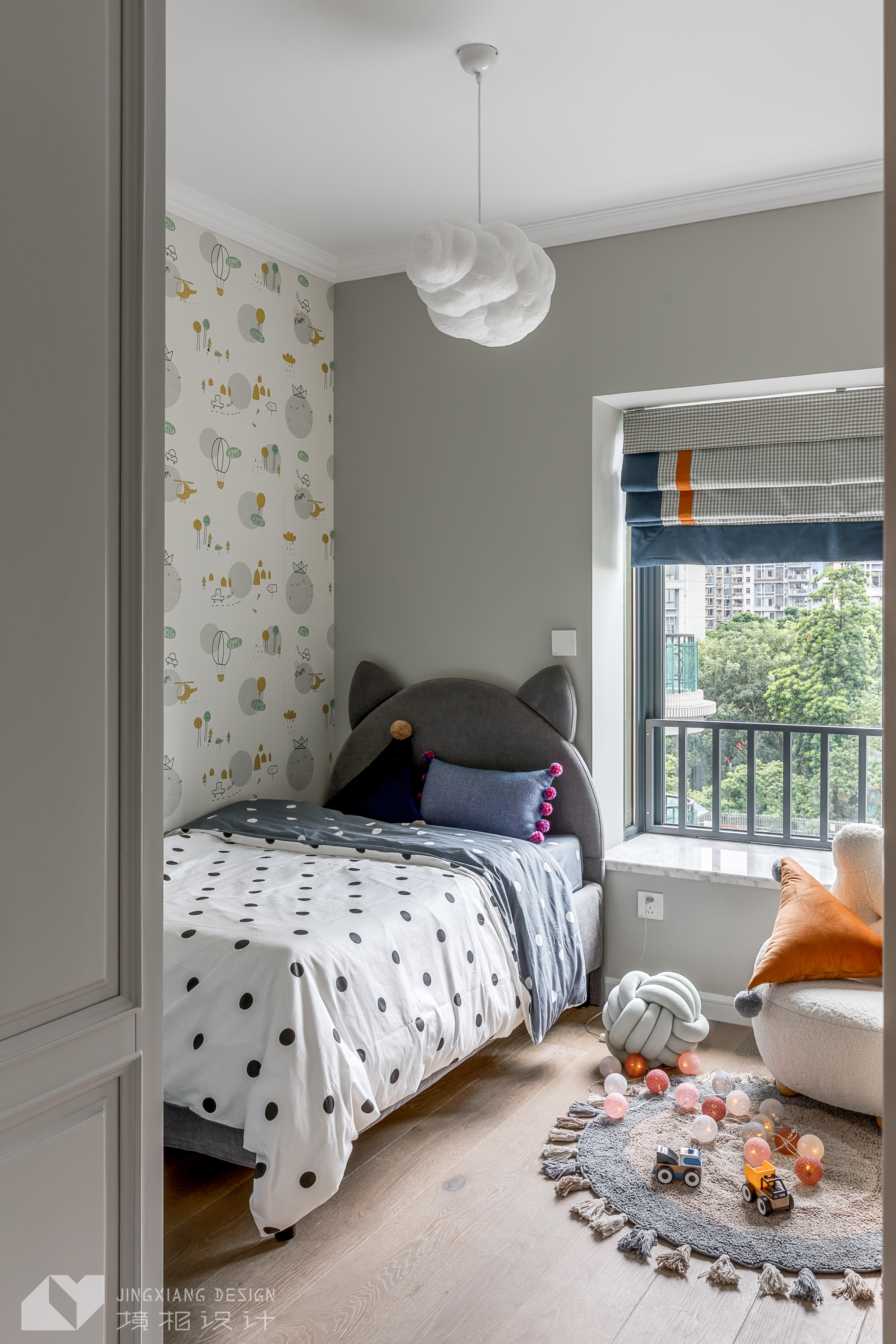 △墙面铺贴的卡通壁纸,纯洁的云朵吊灯,可爱的儿童床,柔软的地毯,有趣的玩具,无一不是送给这个未出世的宝宝最美好的礼物...