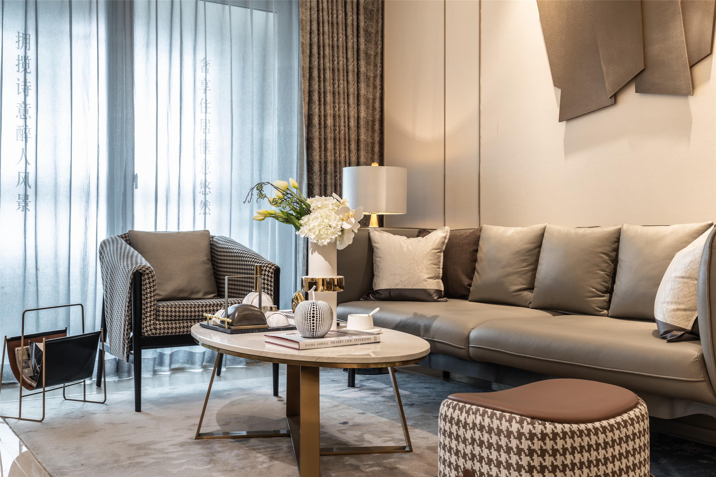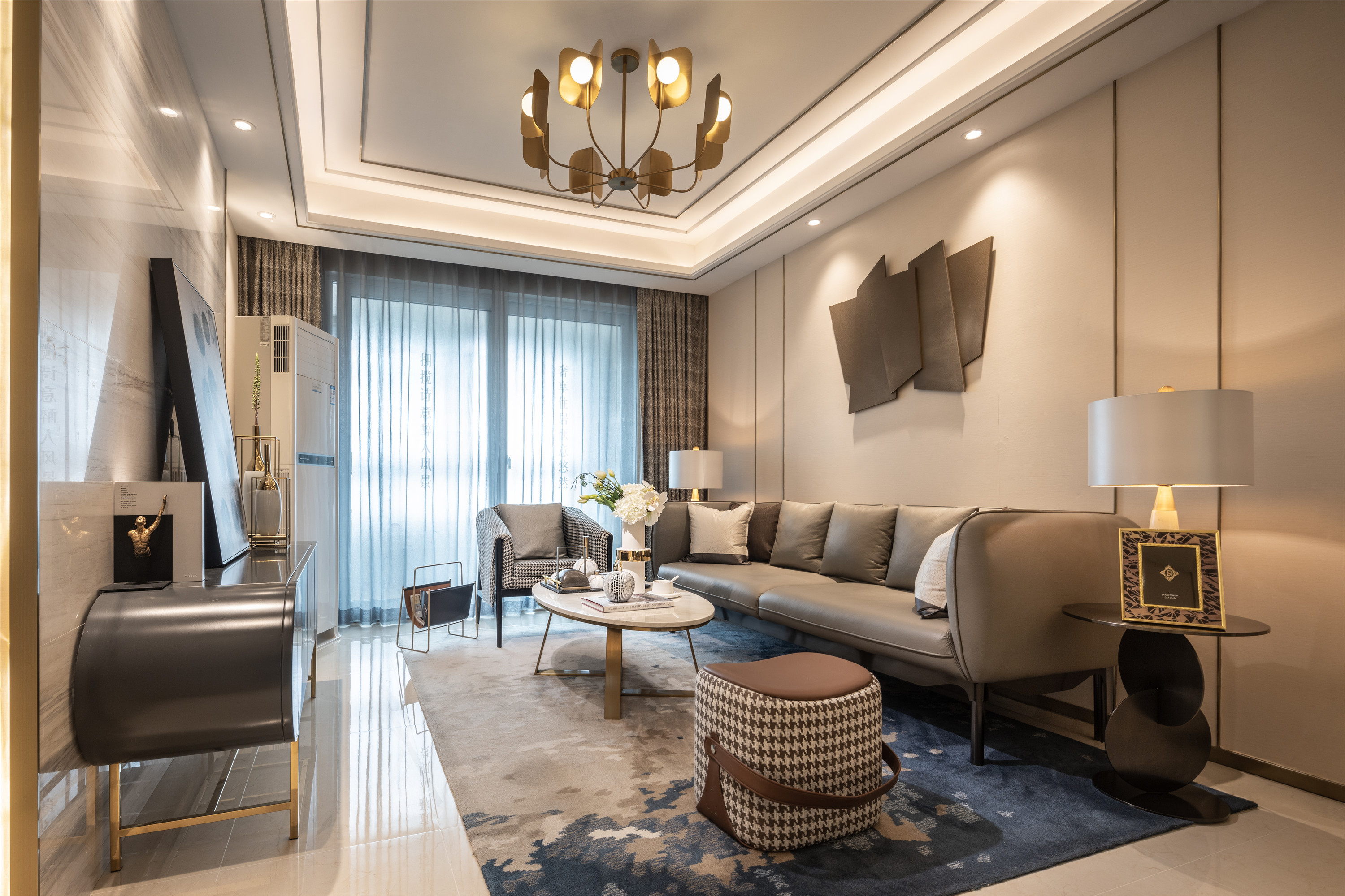 设计选材:“金属、线条、简洁”是现代的元素,大多采用浅灰、深咖等内敛色调。样板房项目设计在硬装上以现代的装饰手法,注重发挥结构及构成本身的形式美,造型简洁,反对多余装饰,崇尚合理的构成工艺,尊重材料的性能,造型上多采用简单的线条,色彩上大多冷静简单大方,使 居室其到平静感与空间融为一体,同时突出简洁、轻奢主题。