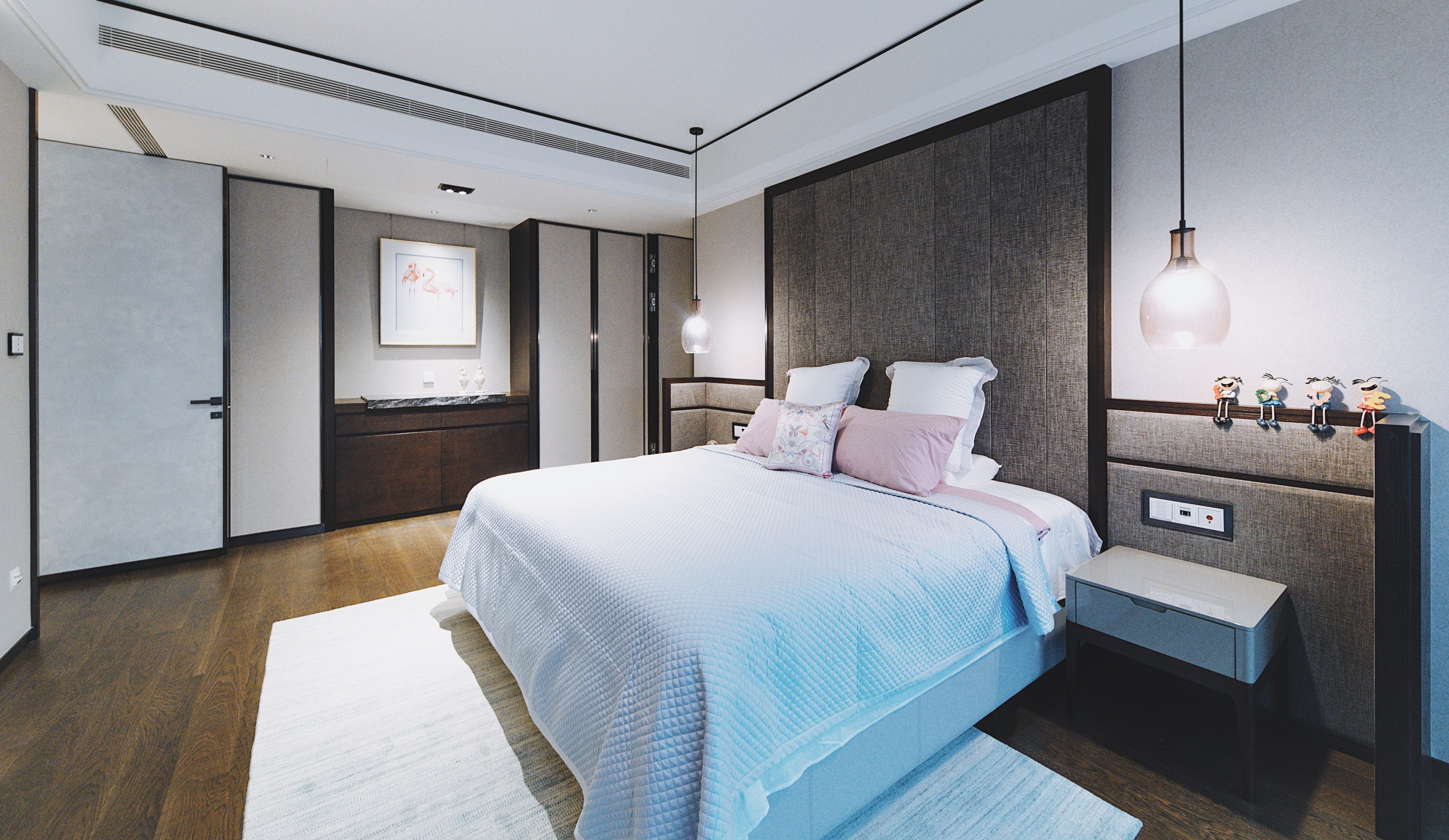 设计选材:在选材上选用了环保材料,软装则采用了真丝棉麻的布料作为床品和窗帘的首选,既环保又有自然气息。