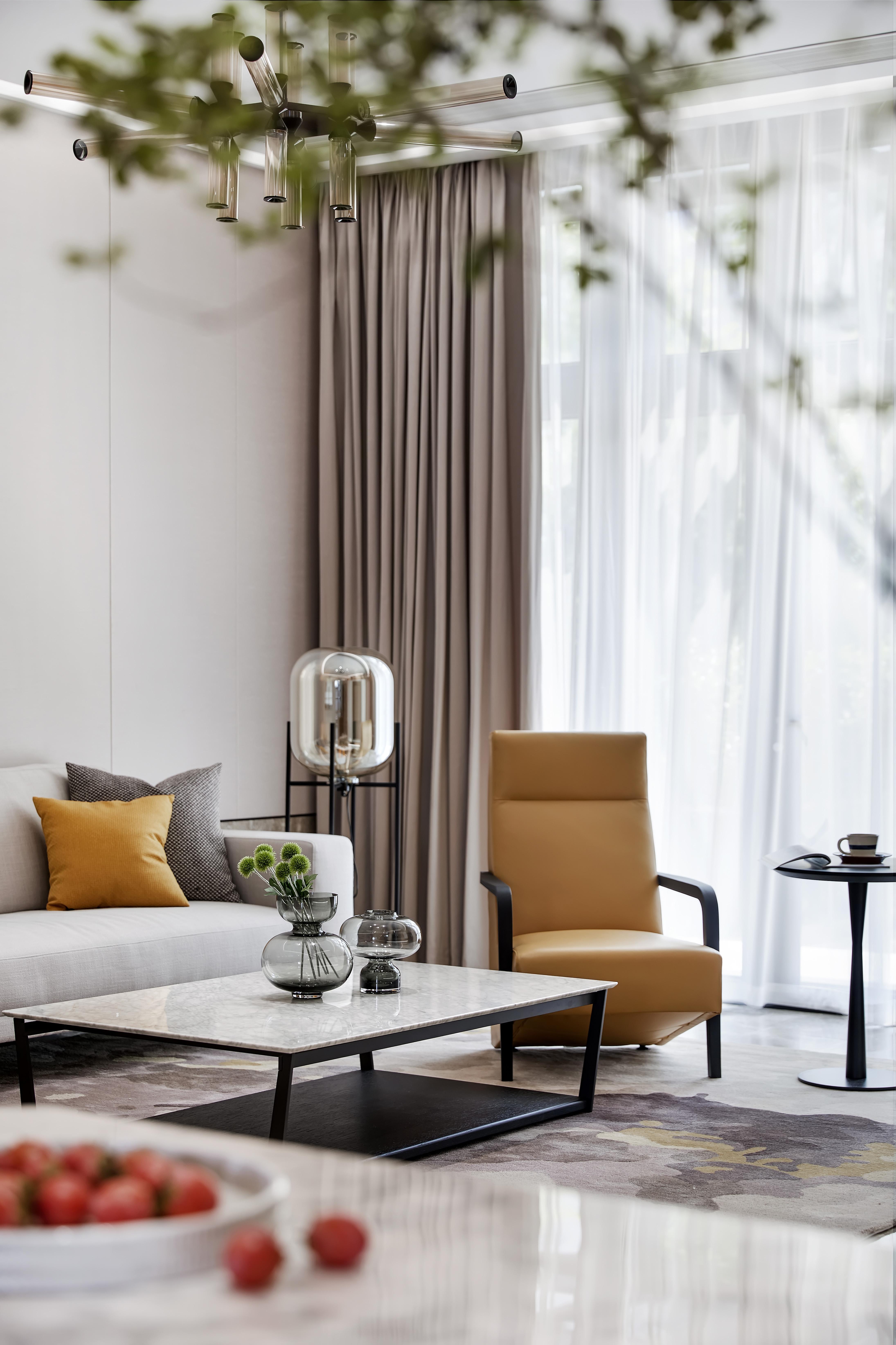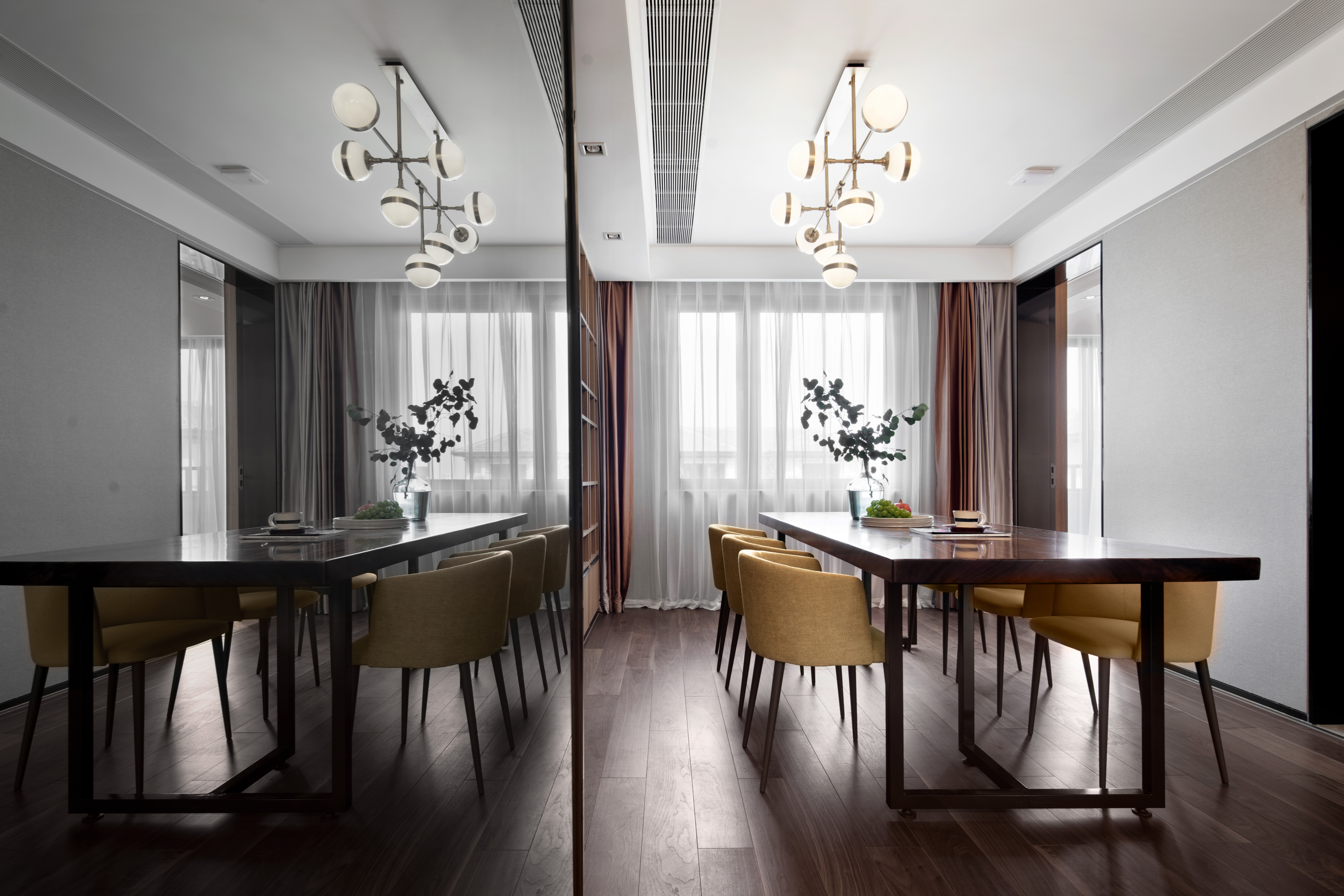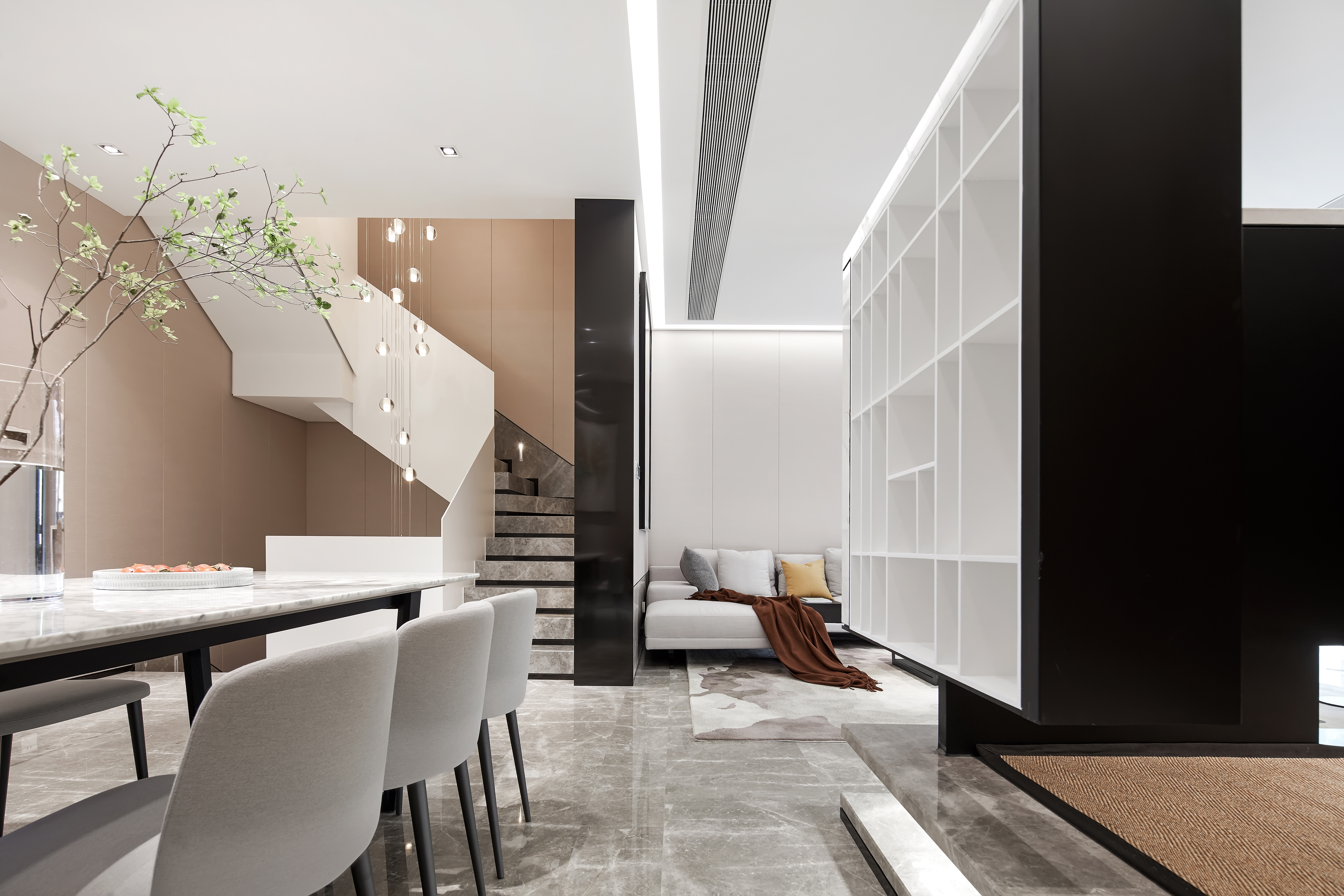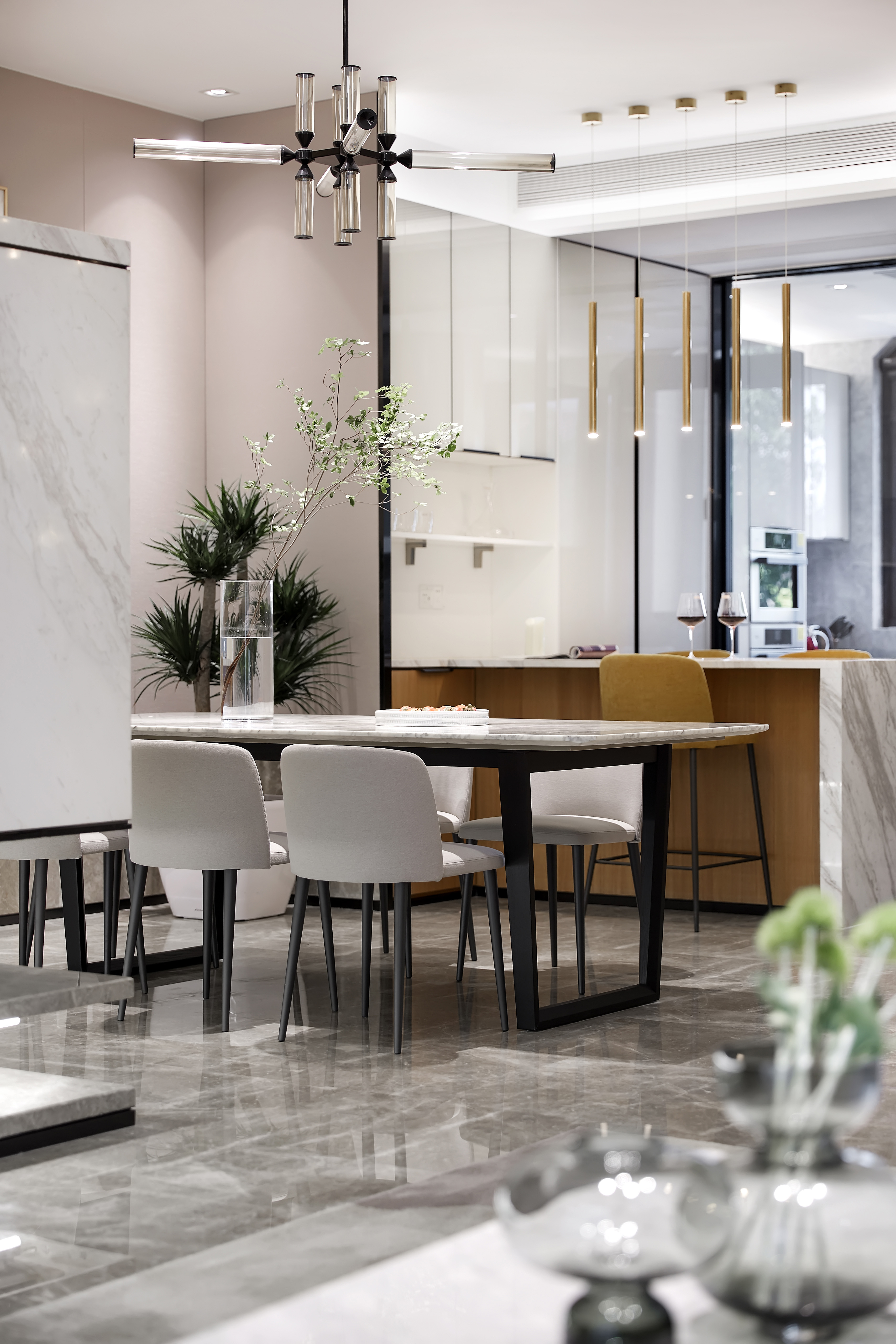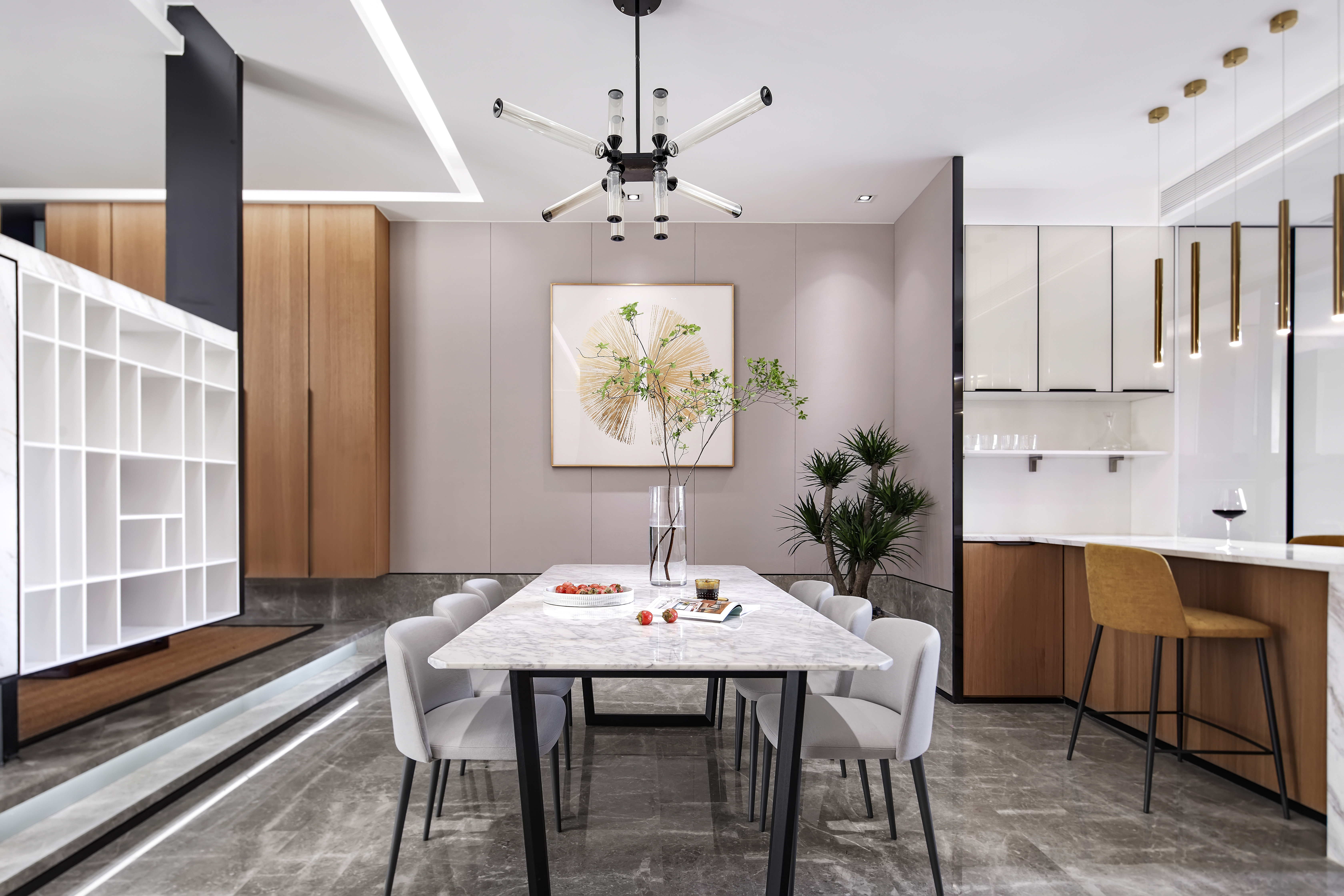 308.一桌, 一踏, 一树,零星点点,均凝聚着空间的形和神,与客厅餐厅若即若离,让设计促成了生活之间的清辉仙境。