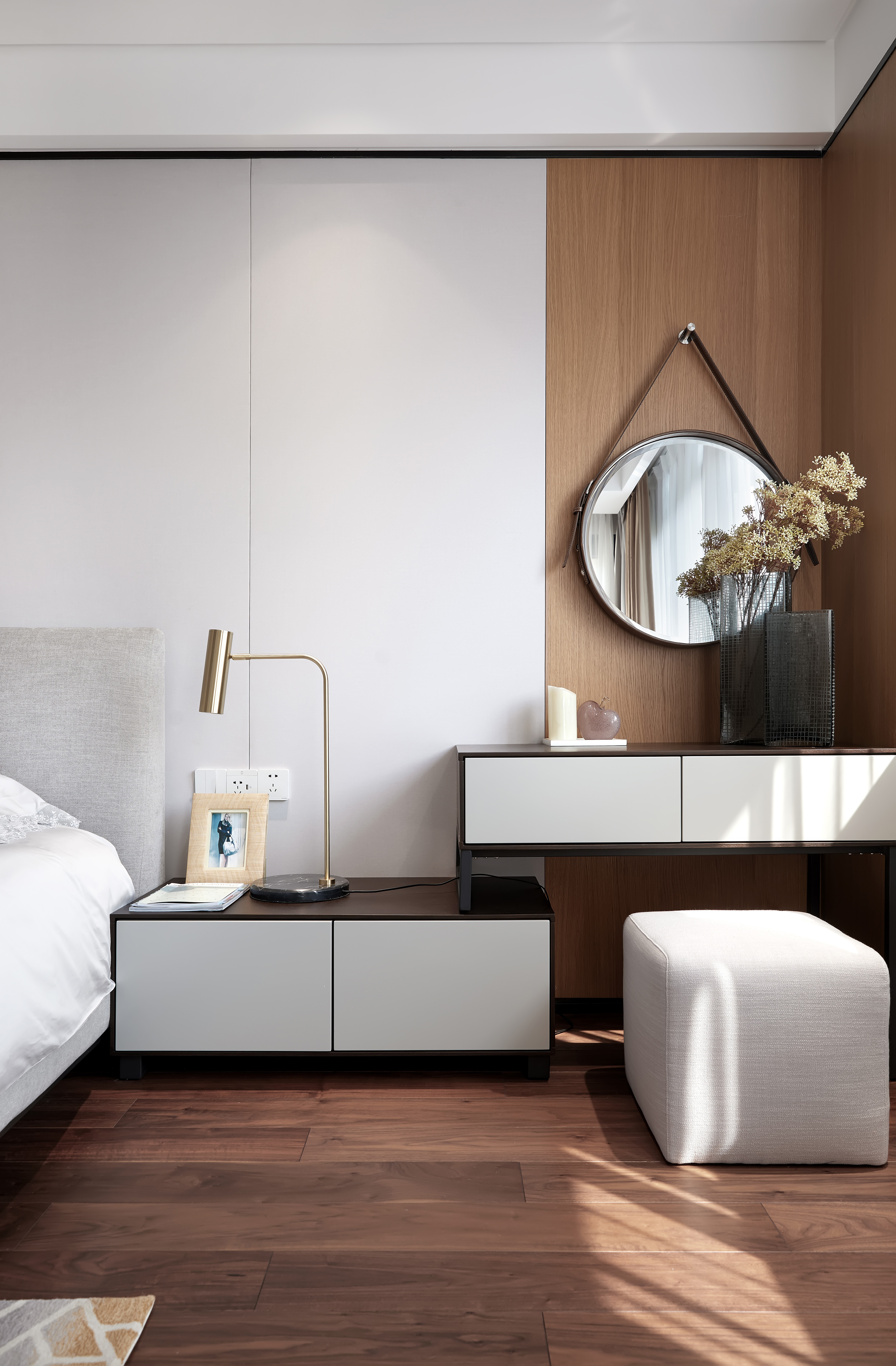 313.床头柜和桌子既有视觉上美感,又是实用功能的最好表达,既可梳妆又可小记。如此甚好。