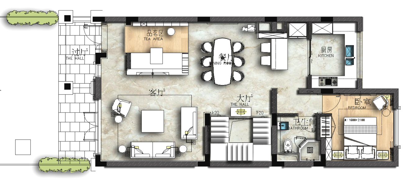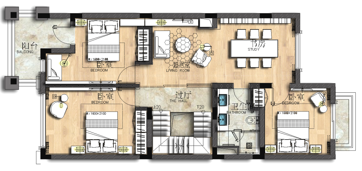 空间布局:一个好的空间,应该是符合其身份的,设计的迷人之处在于,它既能够完成功能上的需求,还可以加入对生活的更多想象力,让人在务实中生出理想主义的信念。公共空间客餐厅的布局经纬分明,既是独立又完全共融。客厅的转角沙发给出公共空间最大的自由,从进入空间的第一眼,便传达给人简洁舒适的第一感觉。二层书房的布局是我们摒弃了书房常规的一桌一柜,用一张原木大板桌做为这个空间的主角,把原来定位成书房的二楼打造成业主一家的精神领地,这里是全家的第二客厅,亲子,书房,休闲喝苶。。。最美好的时光在这里发生又在这里止步。