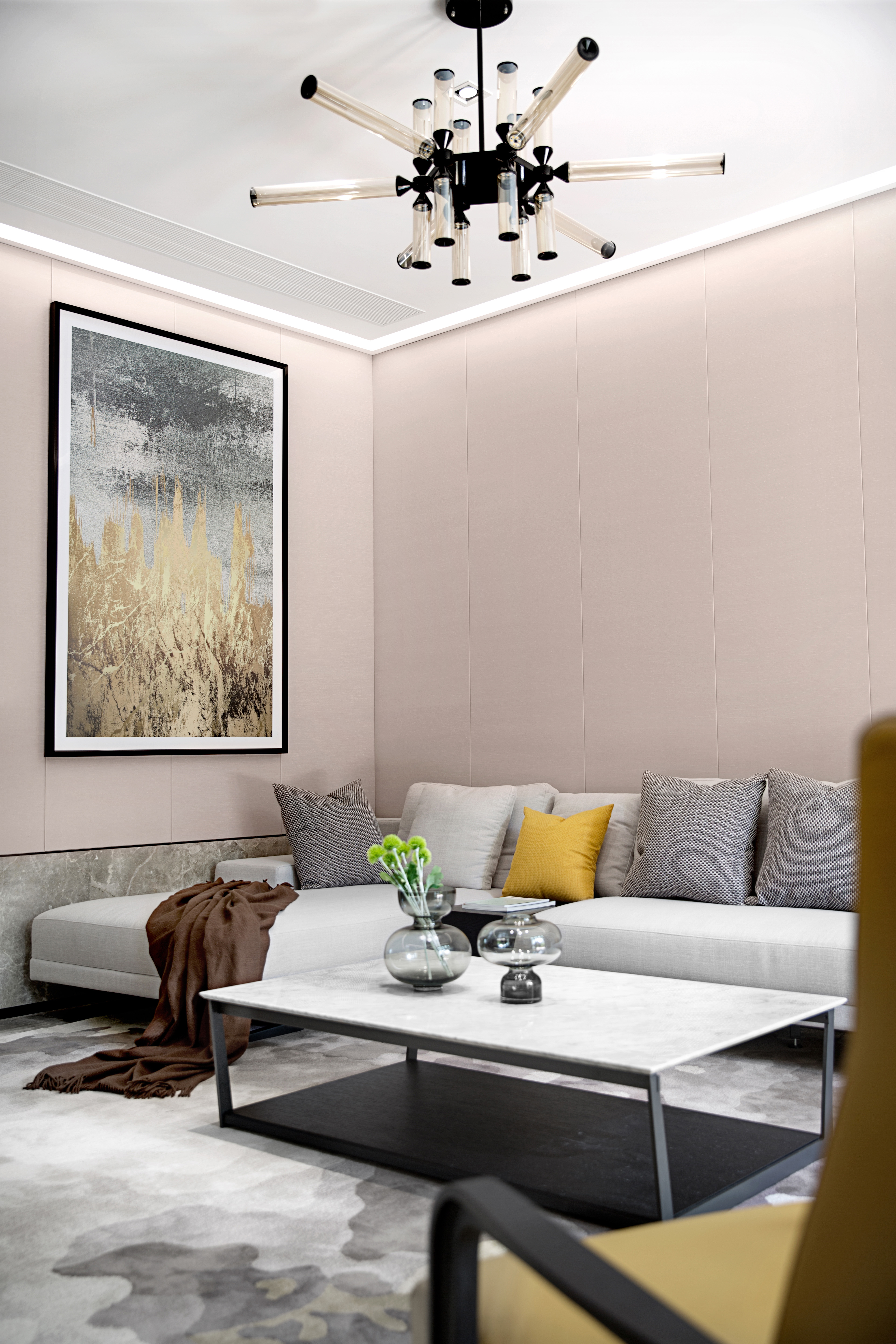 303.客厅沙发 地毯 挂画充分传递出自然自由的空间意境和实际的身心感受,那么温暖明亮,直达心头。