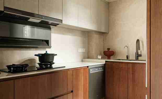 设计选材:基于川蜀多阴云天气的地域特点,采光仍然是人居设计的首要考虑之一。阳台均采用浅色木材,增强光线折射,客厅整体观感处于极富动态的电视墙、地板、挂画的映衬下,如同林间阳光的舒适悦动呼之欲出。力求在轻奢格调的阶层自信感上,进一步延伸美式自由风气。电视墙细节,铜、布、皮等美式元素贯穿其中,电视墙墙面为视觉增添动感,金色线条的运用非常亮眼,更与整体设计风格相得益彰。