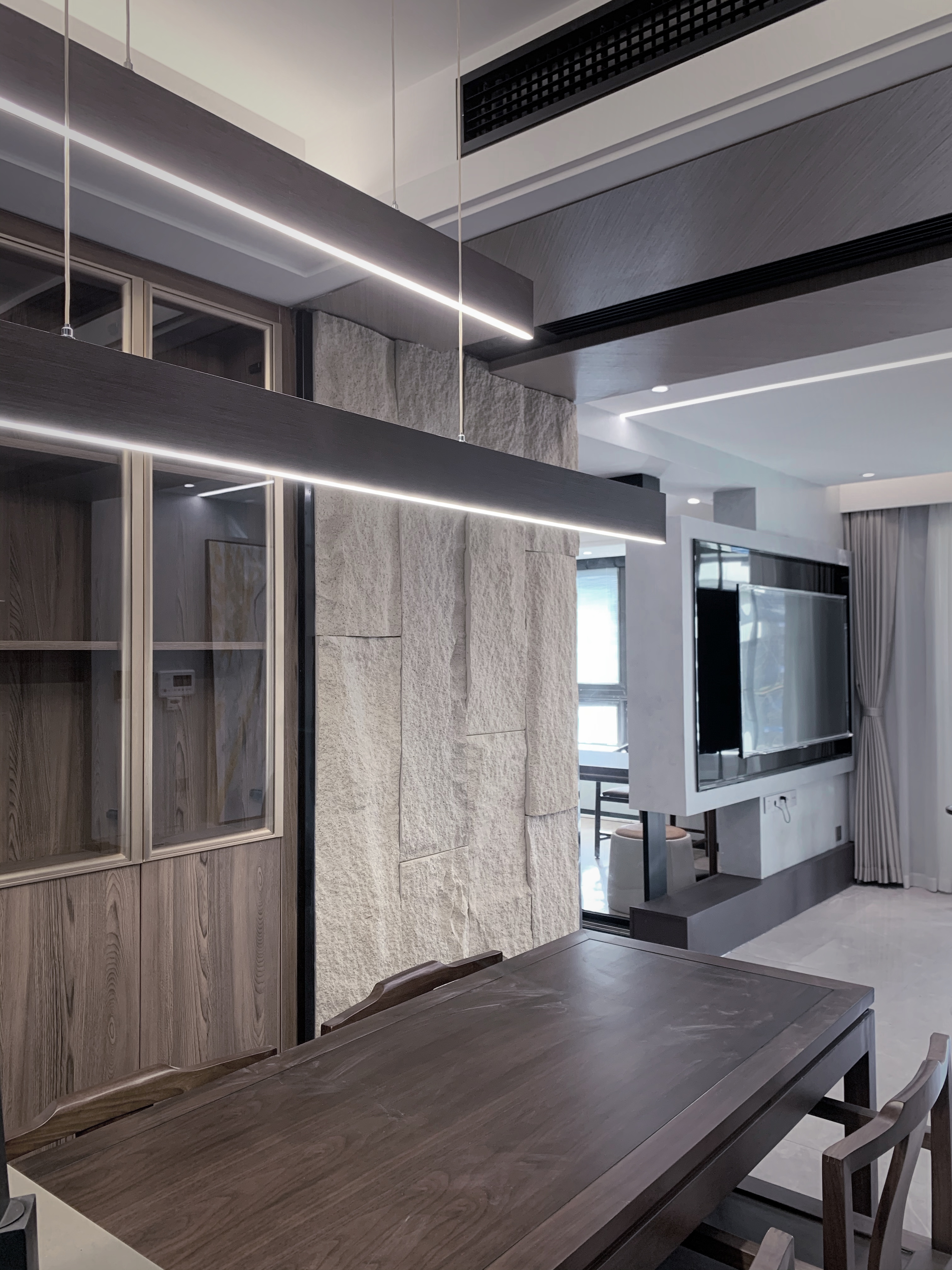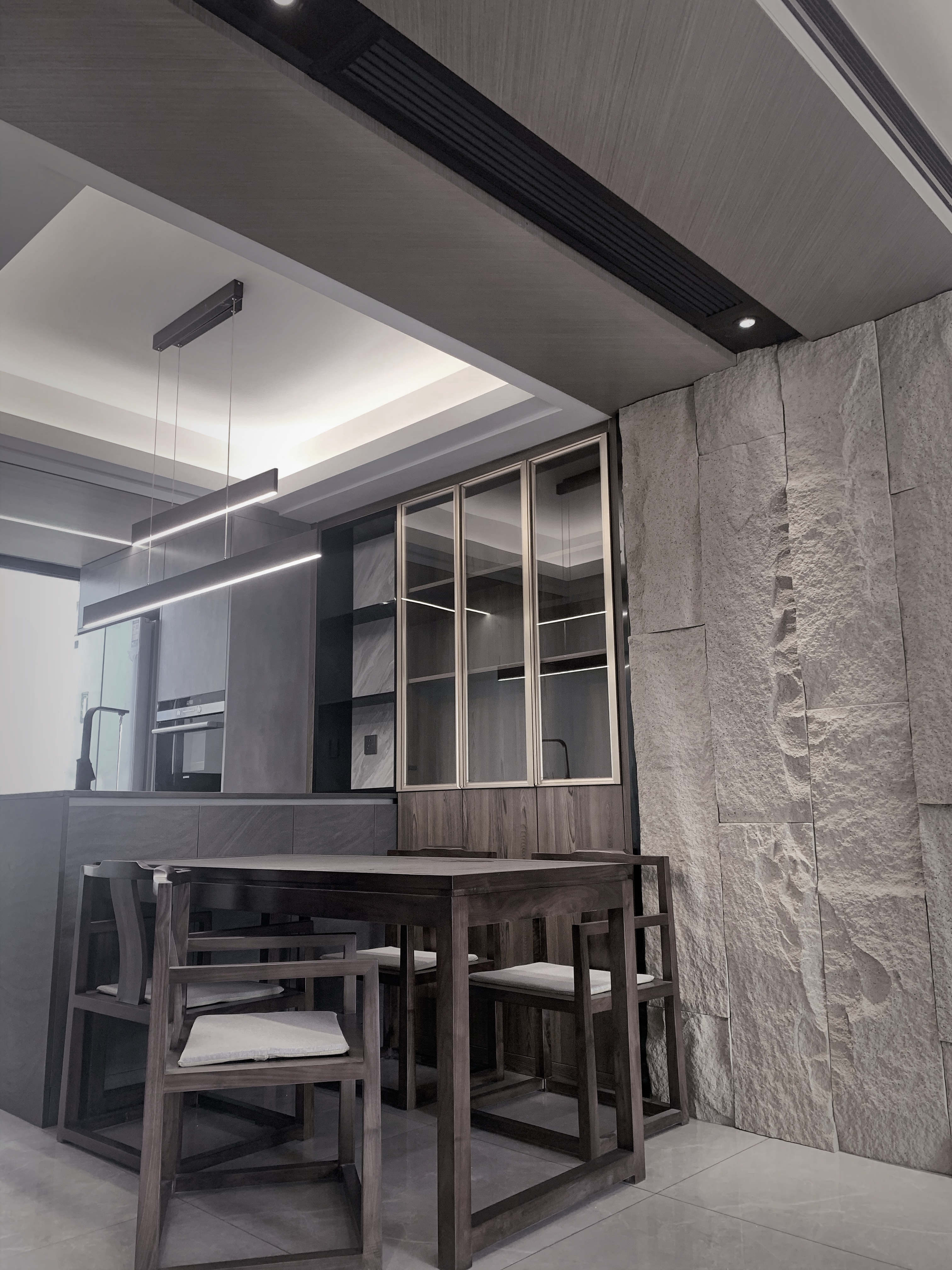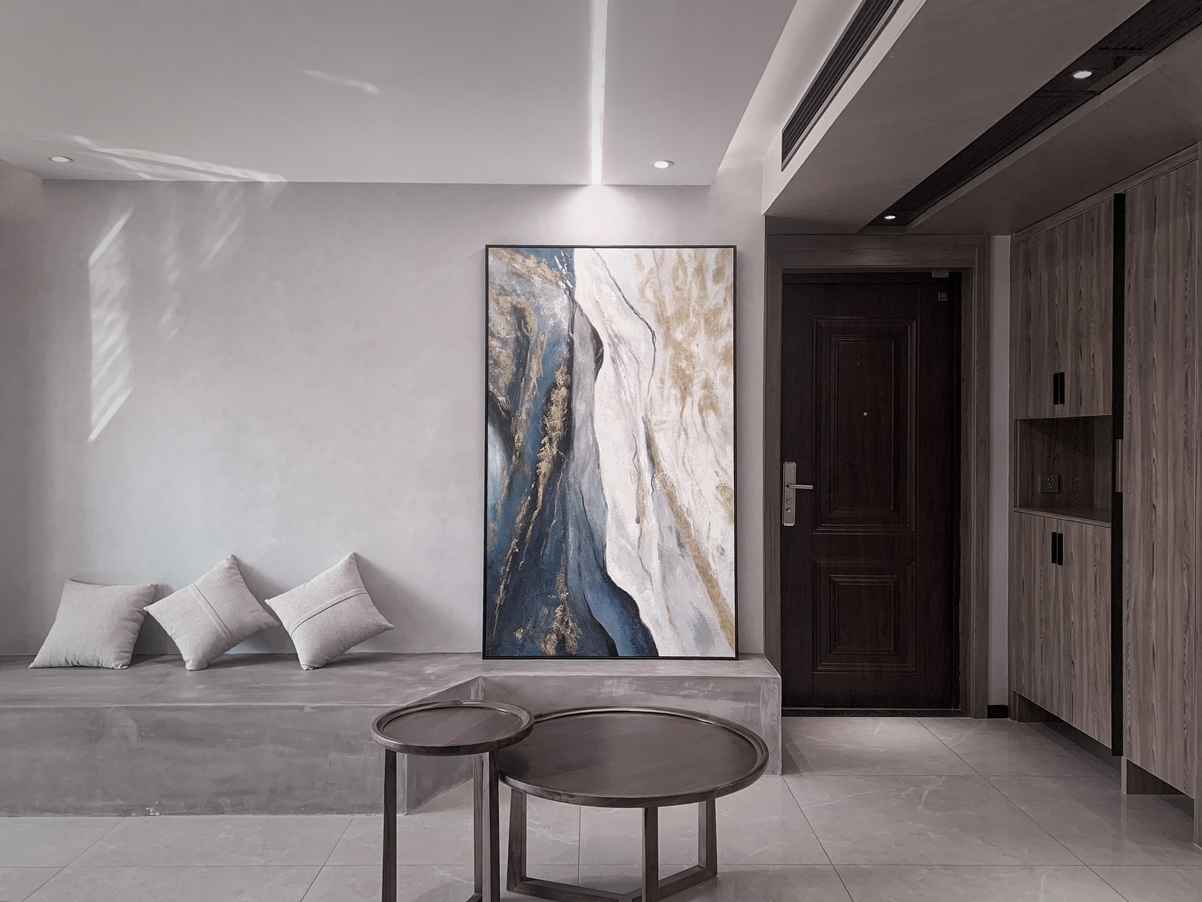 项目定位:客户是一名资深教师,对于室内空间布局要求特别高,想有一个特色的入户玄关和一个开放式茶室,原户型基本满足不要客户的基本需求,设计师在平面布局打破常规设计,给客户不一样的家居生活体验。