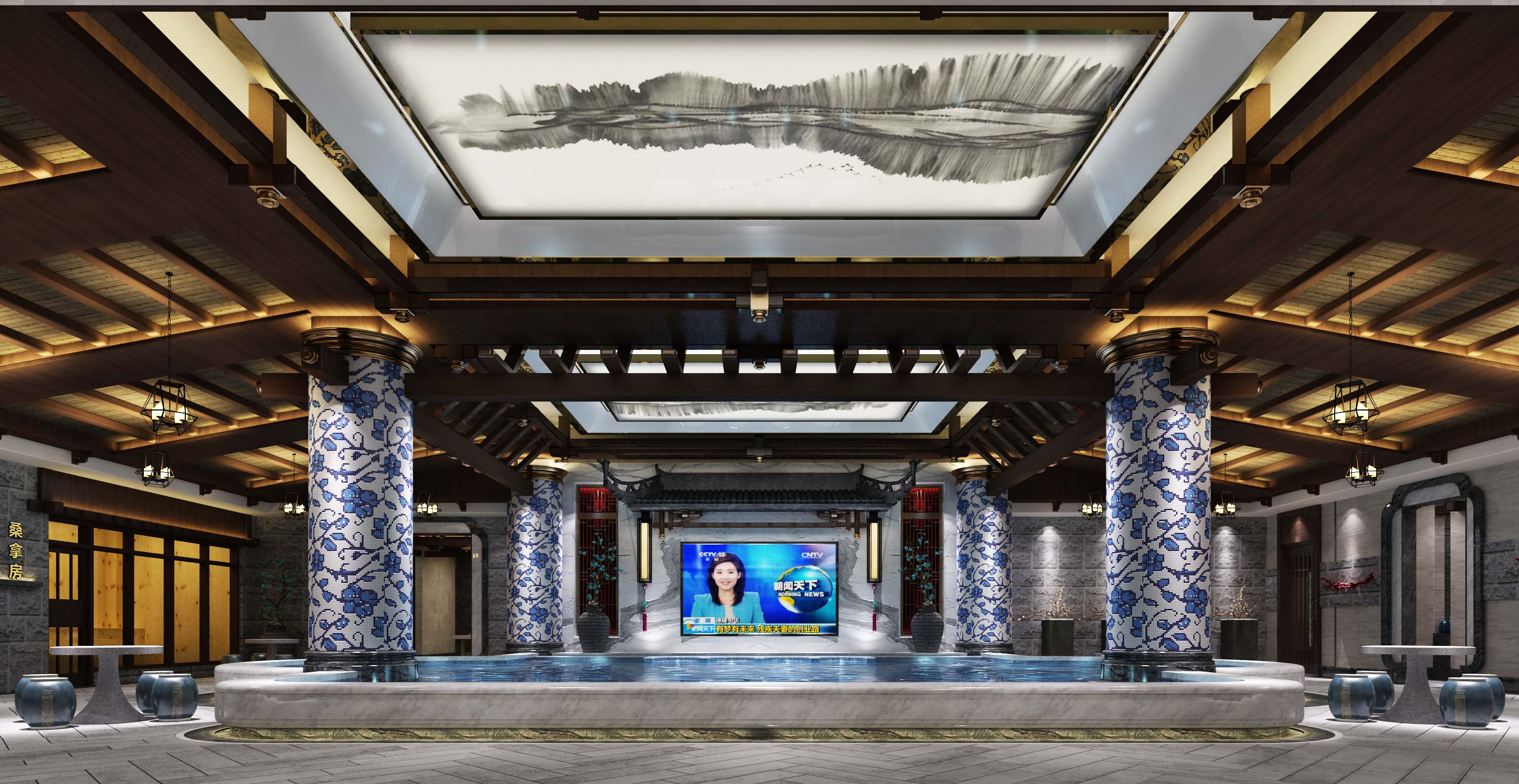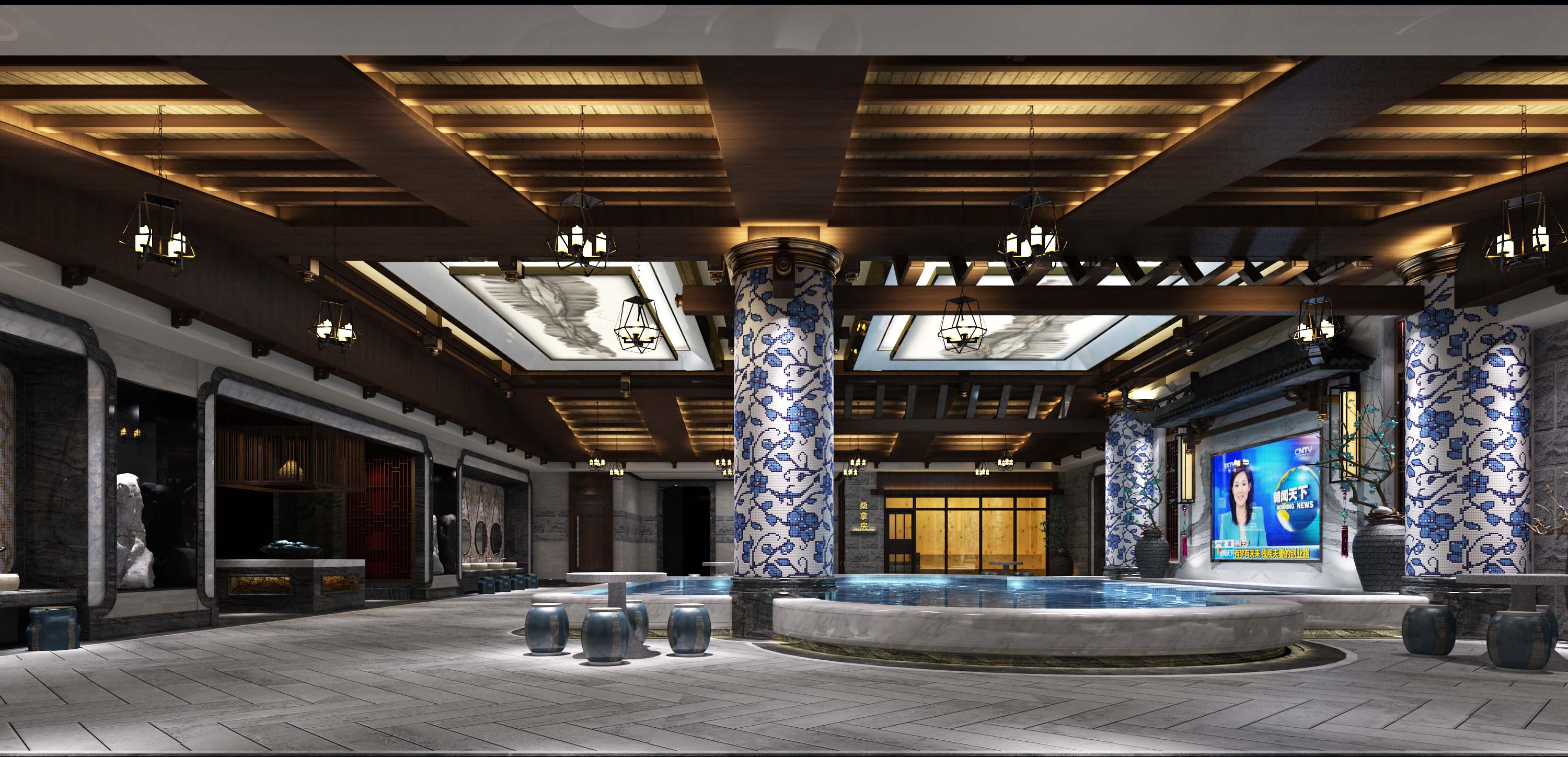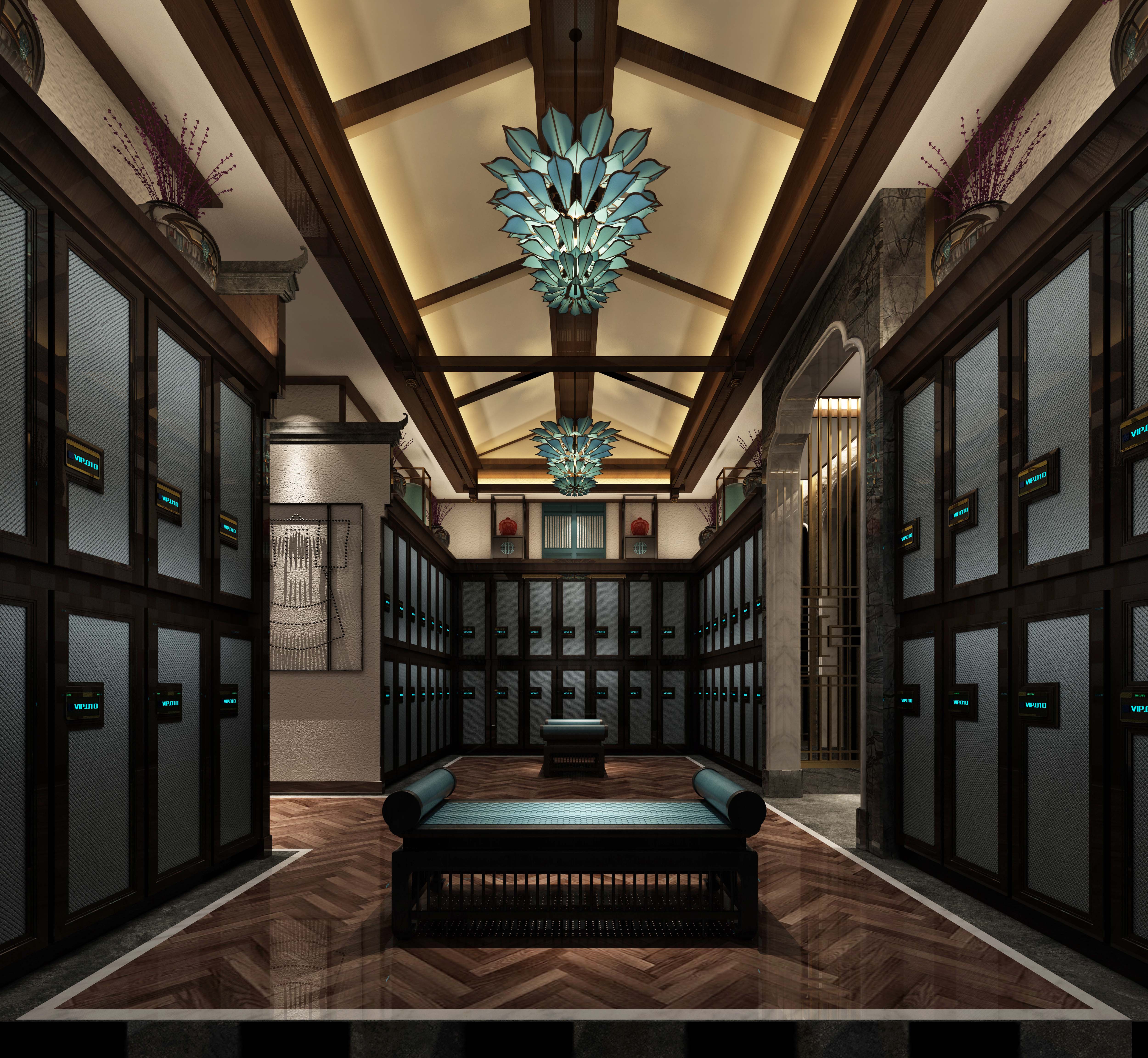 空间意境:本次设计为新中式古典艺术风格,其灵感源于盛唐时期的宫廷建筑,气势恢弘、壮丽华贵、高空间、大进深、金碧辉煌、雕梁画柱造型讲究对称,色彩讲究对比。中式古典风格常给人以历史延续和地域文脉的感受,它使室内环境突出了民族文化渊源的形象特征。