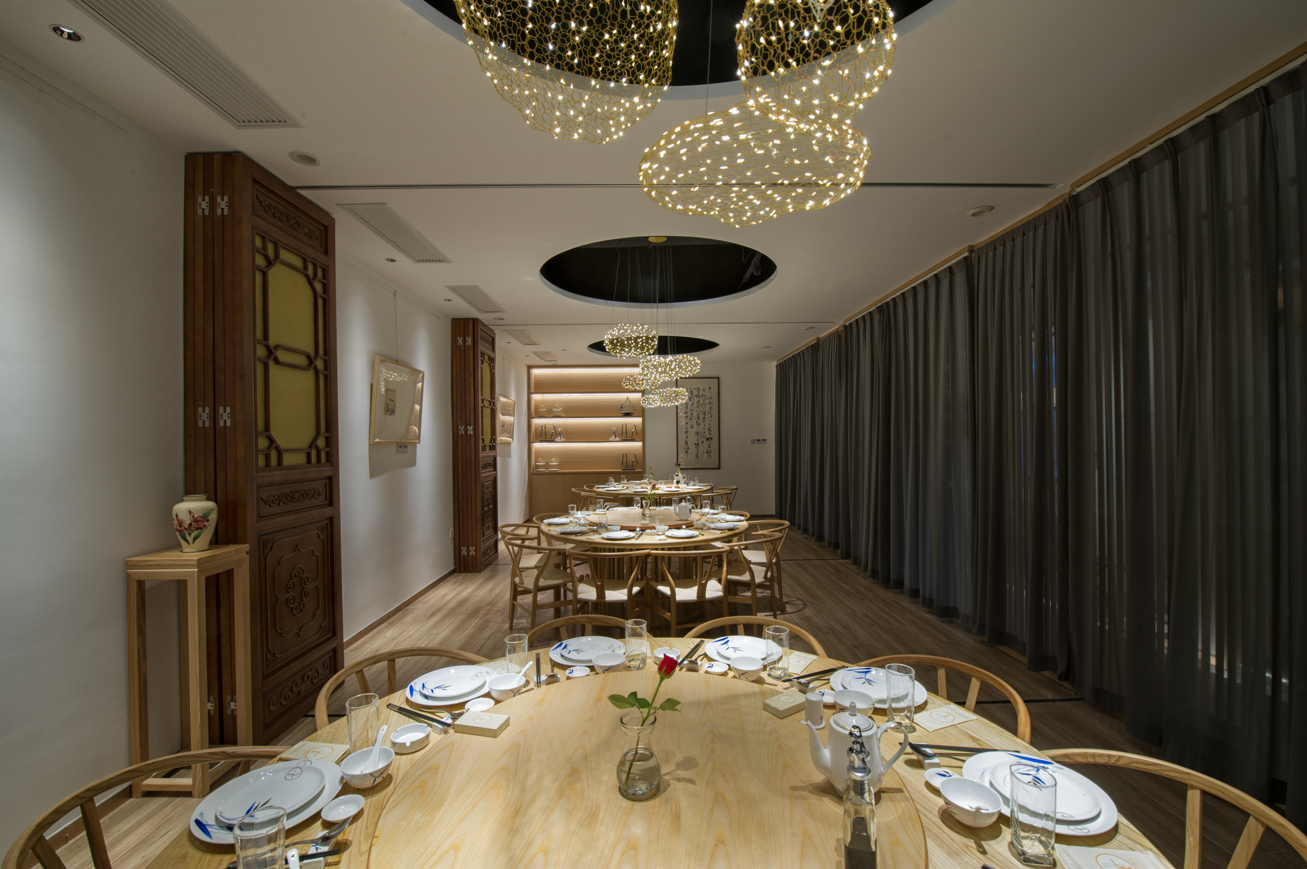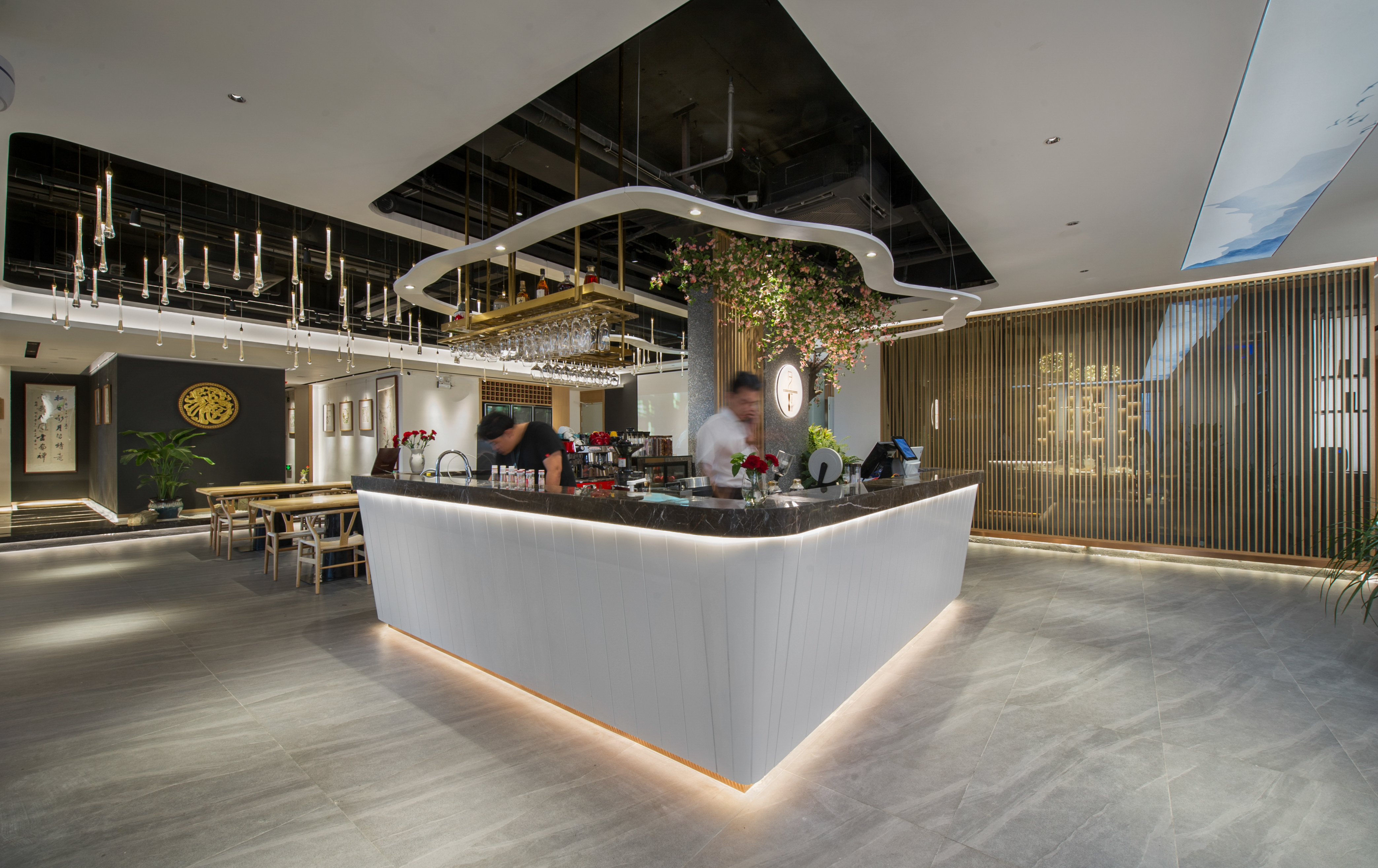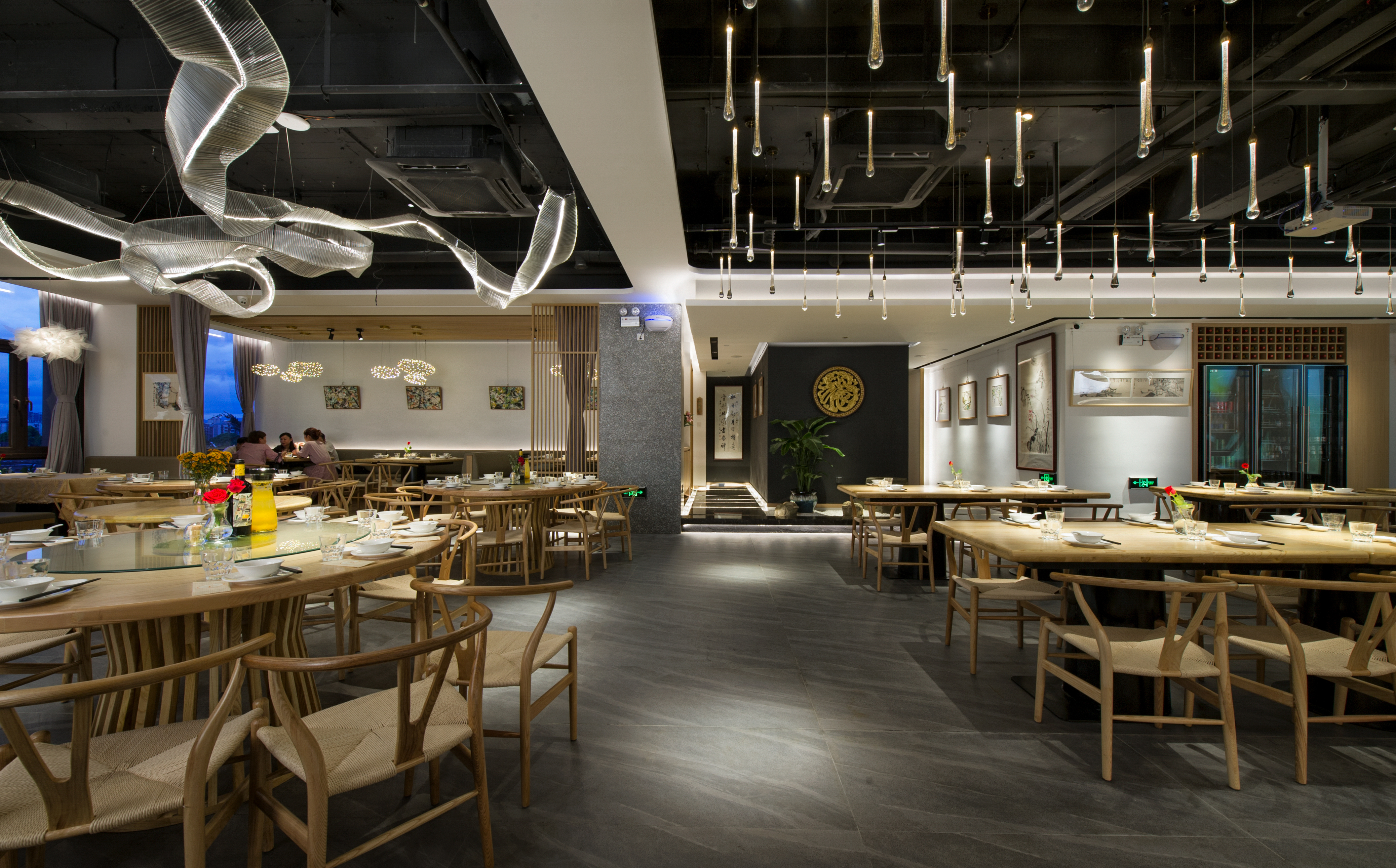 空间意境:新中式风格,秉承为顾客营造一个时尚、舒适、又不失文化底蕴的就餐环境为中心点。