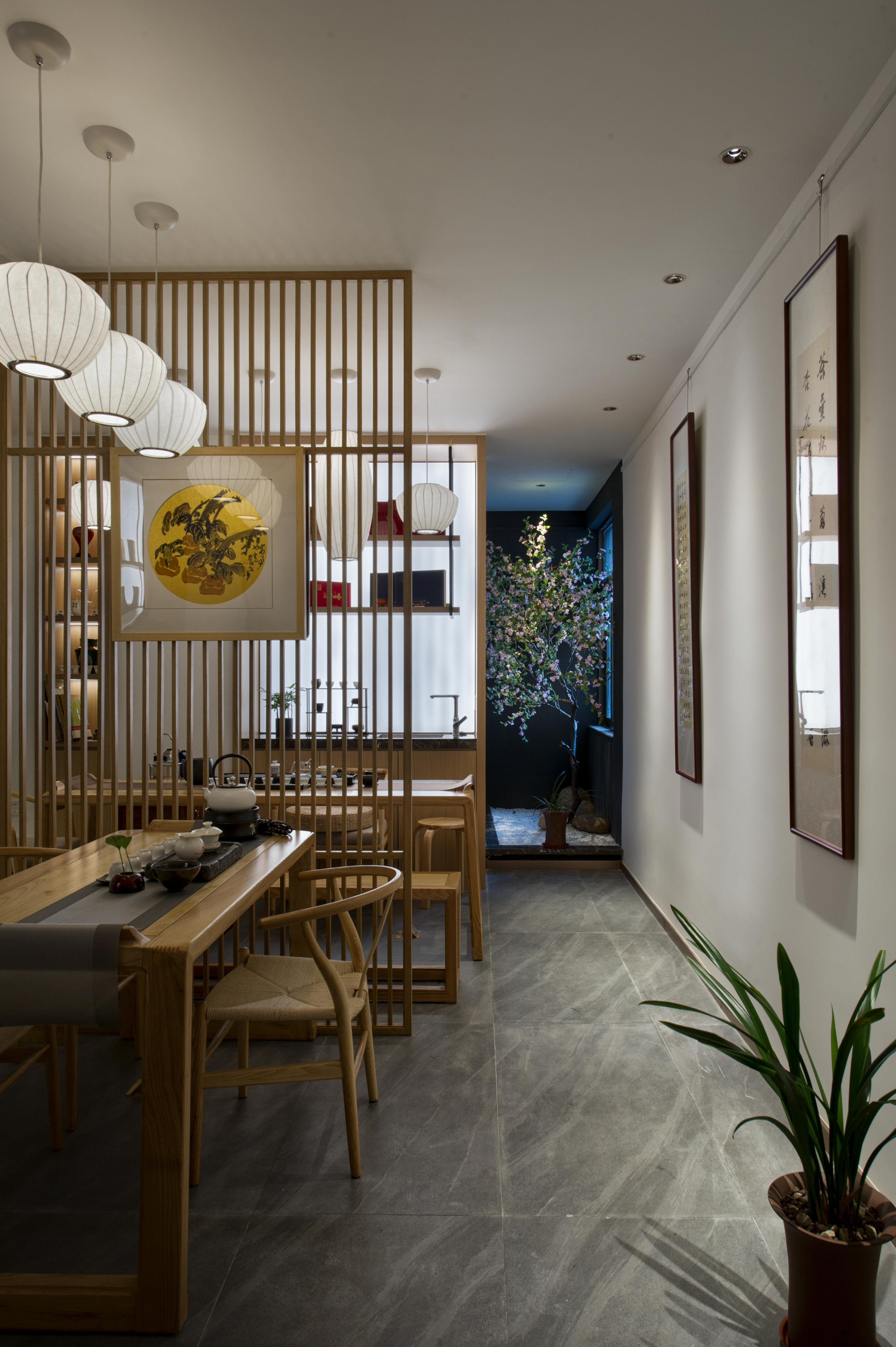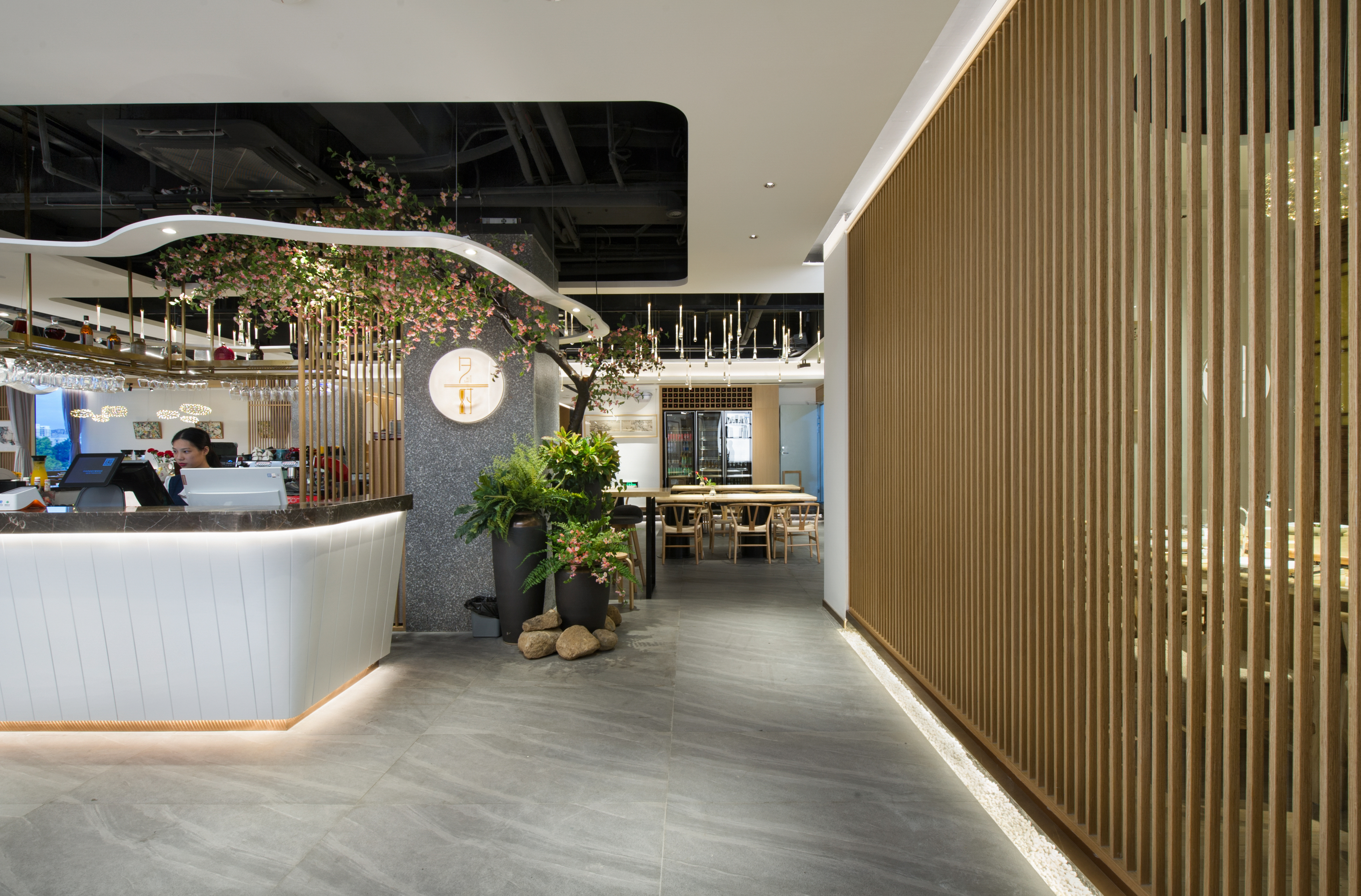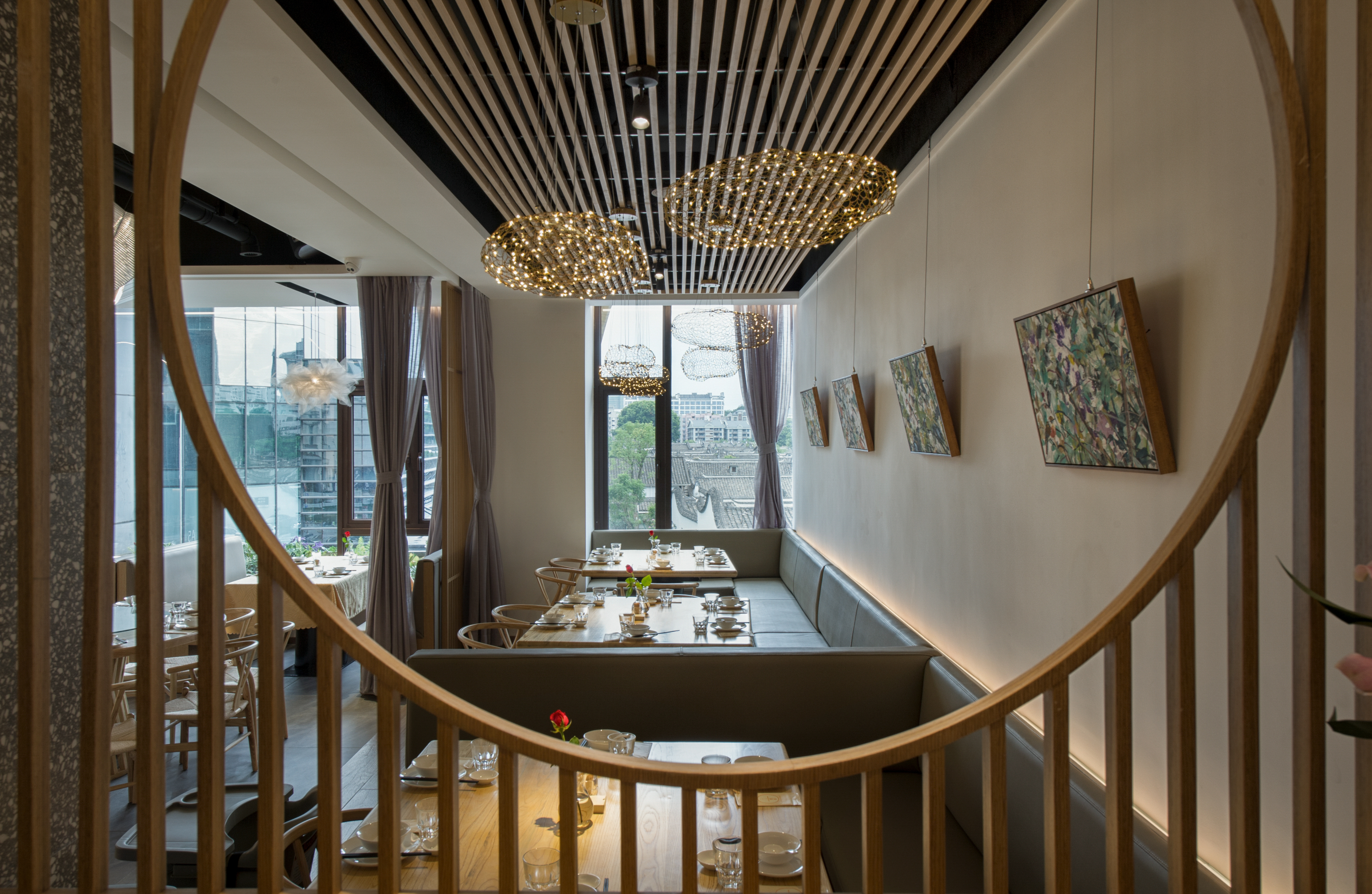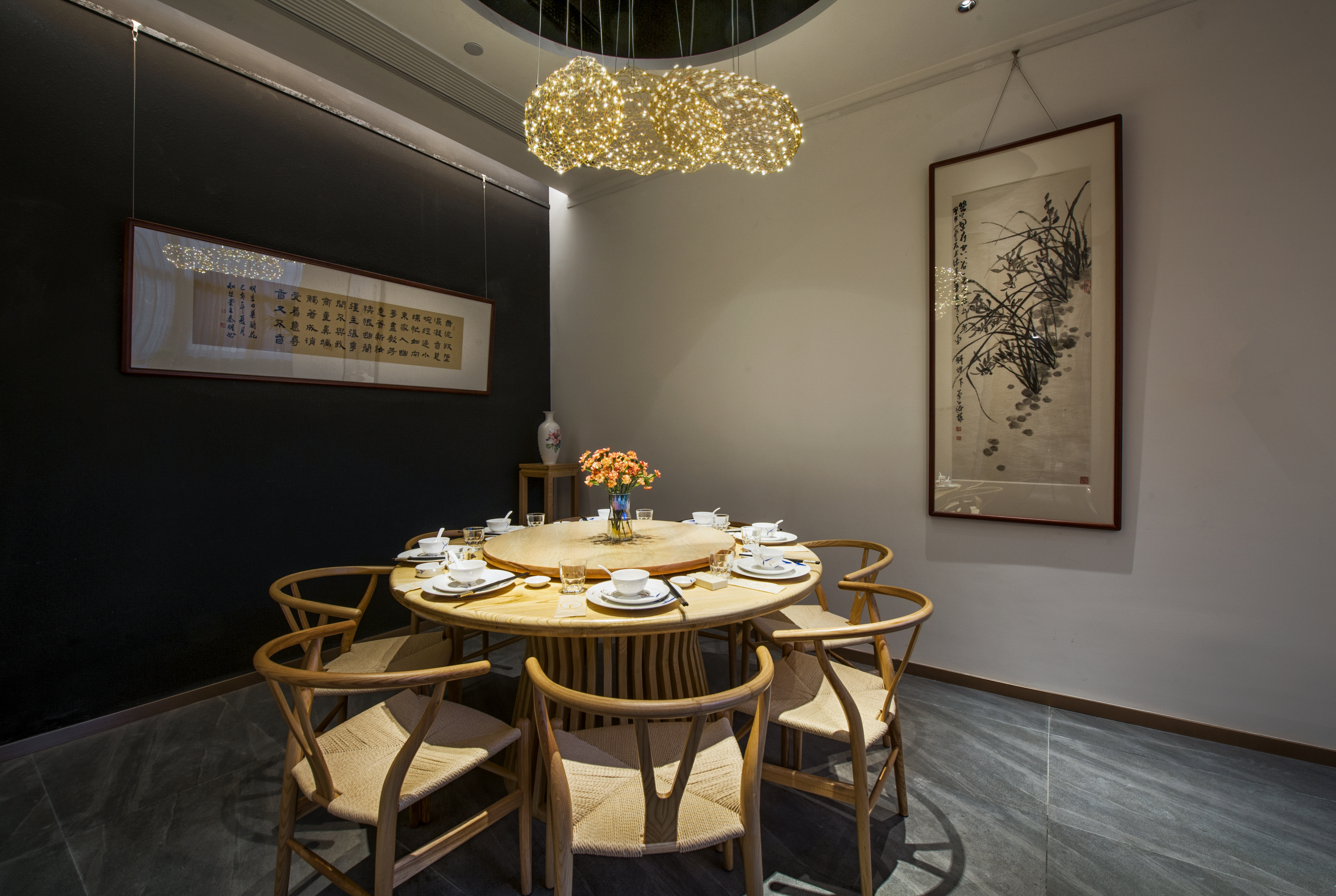 空间意境:新中式风格,秉承为顾客营造一个时尚、舒适、又不失文化底蕴的就餐环境为中心点。