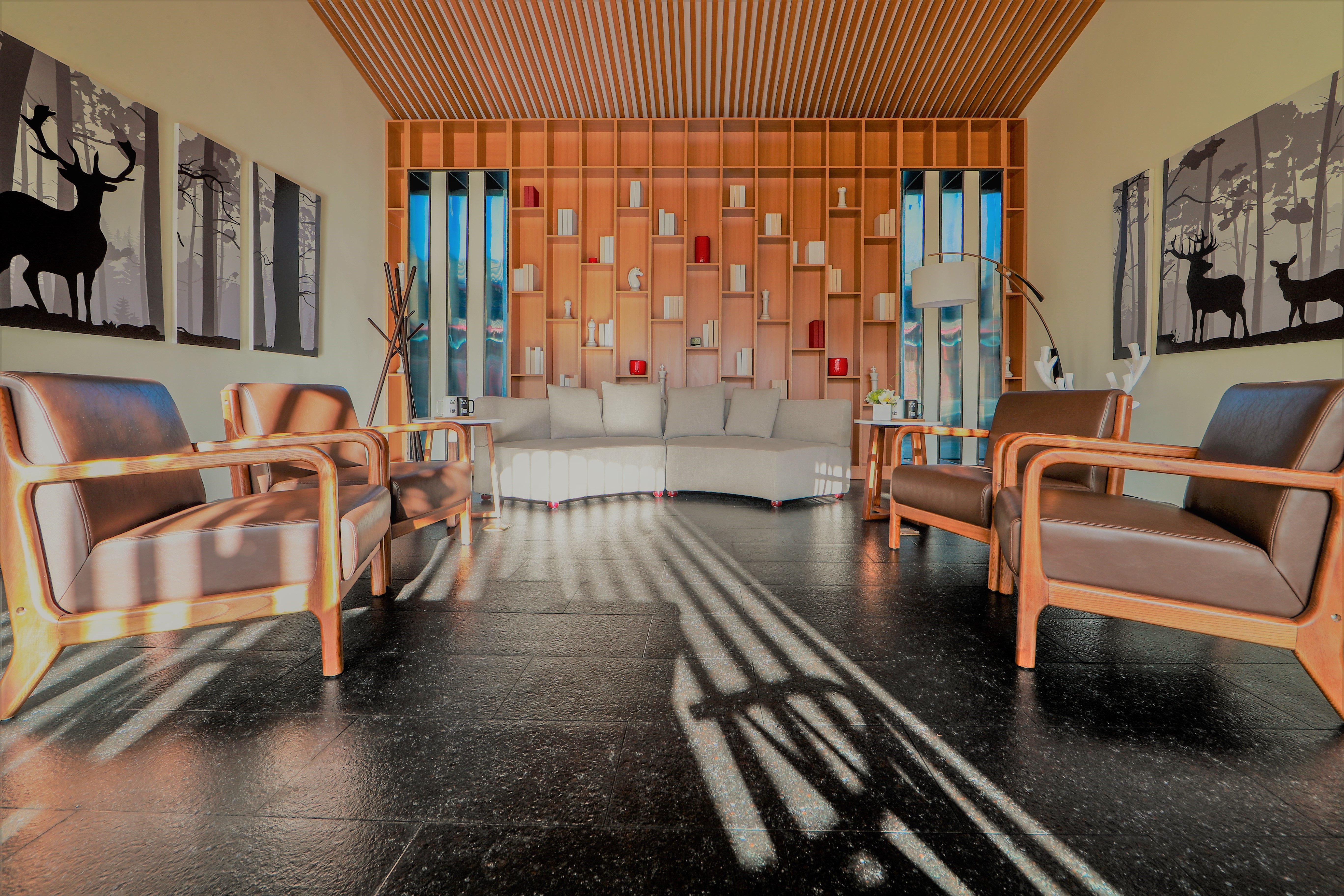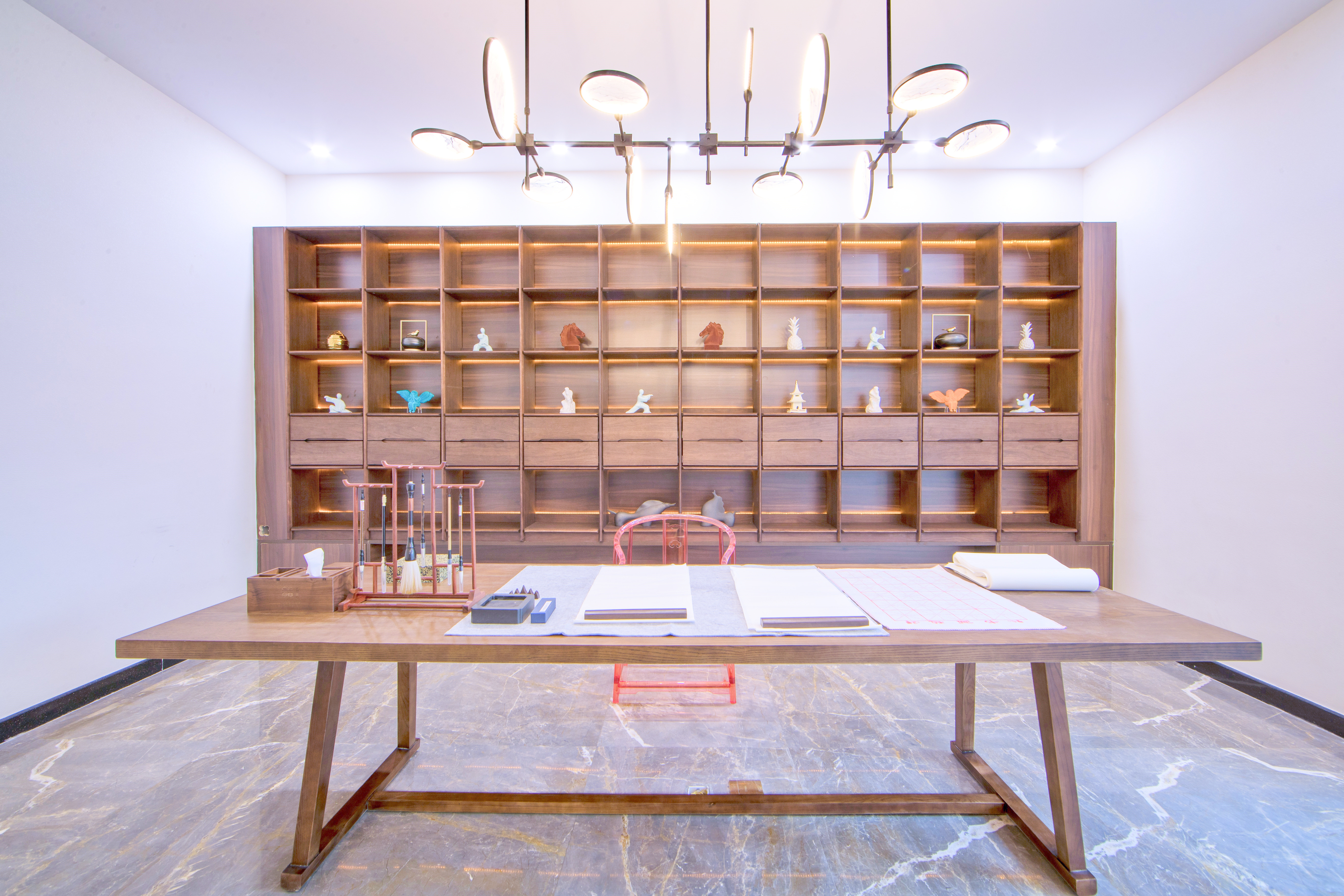 设计选材:大理石、木材、地面铺装