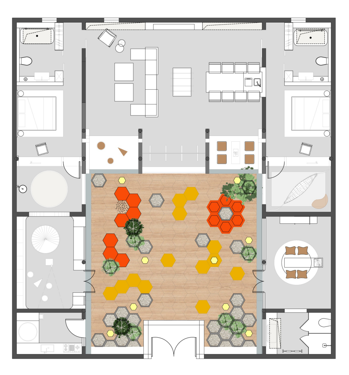 空间布局:增加室内活动区域,增加阳光照射区域
