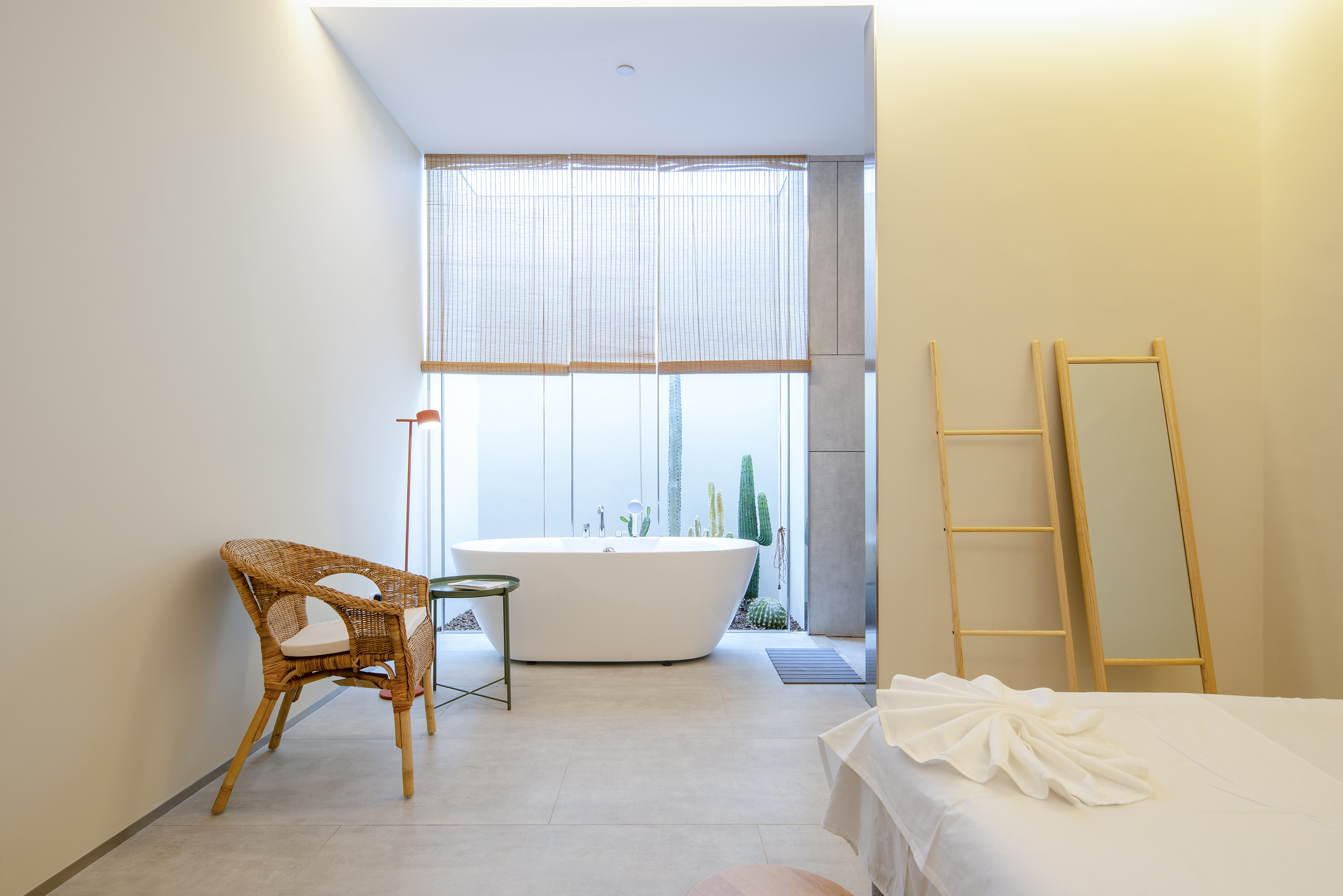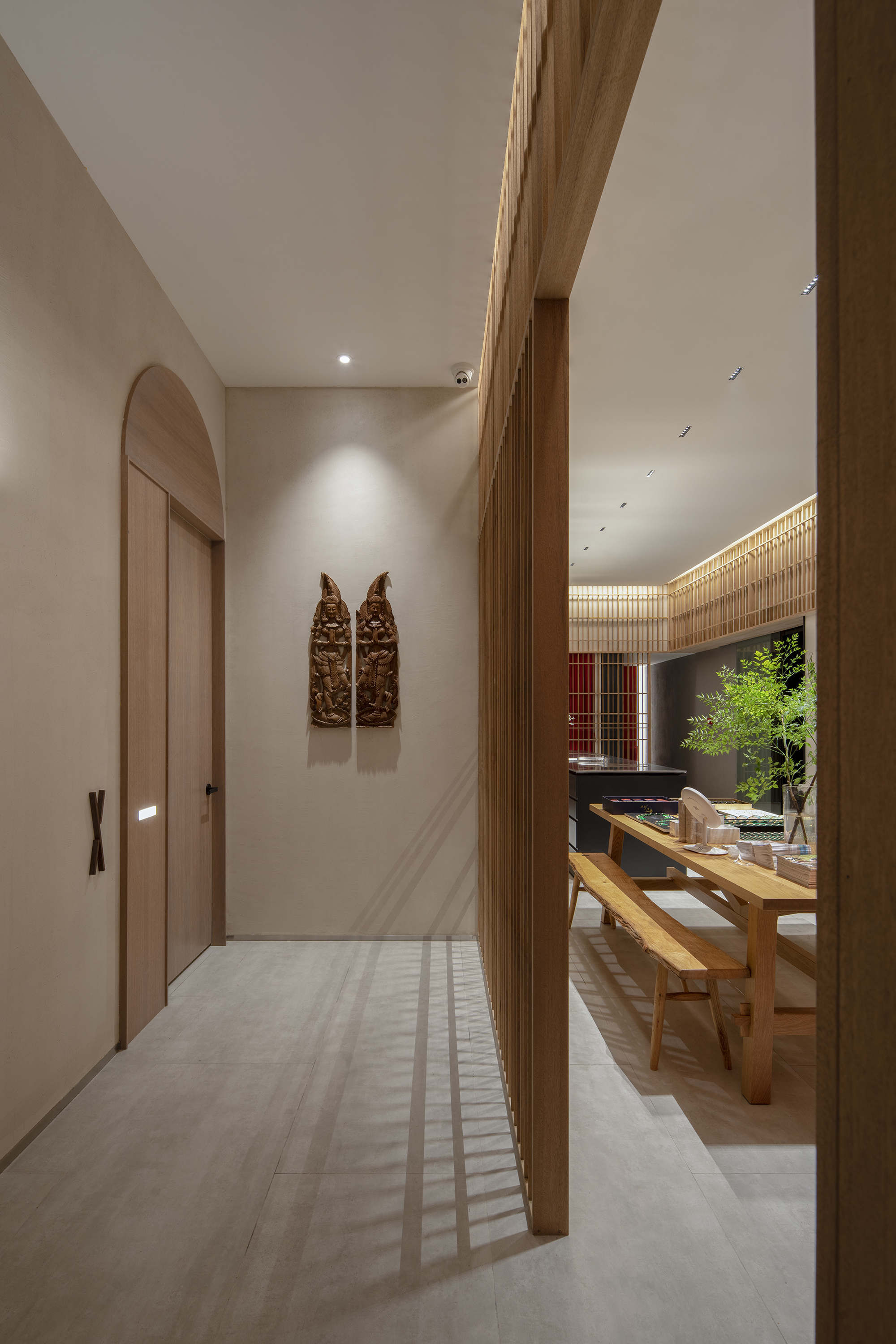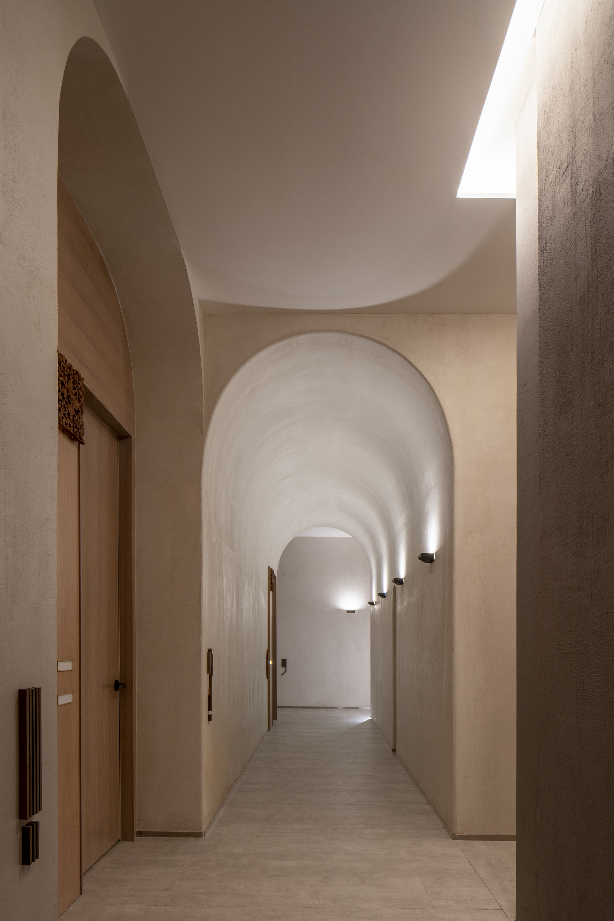 舒适环保的空气质量和舒适体验,是SPA馆为客户提供的最基本保障。我们为部分没有自然采光的房间单独设立人工天井,引入外部自然光线补充照明。采用工业级新风系统强制过滤入户空气,为所有房间营造自然通风和自然采光的舒适体验。完工后的实测数据表明,所有房间室内空气质量远高于国家标准。
