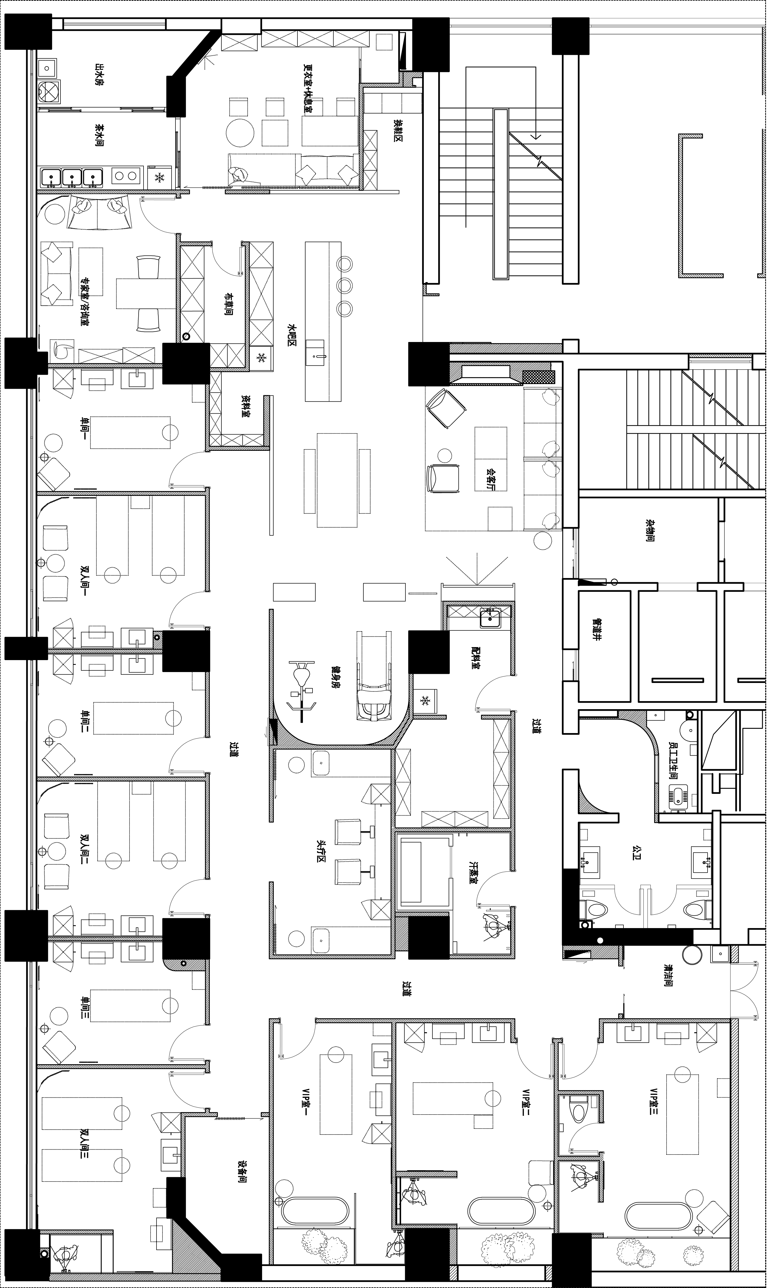 这是一个在原址基础上进行改造设计的SPA改建项目。我们决定对项目实施从空间到功能的全新改造,为每一位客人营造舒适且轻松的SPA体验。