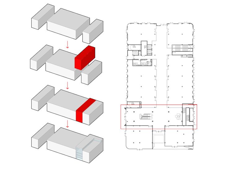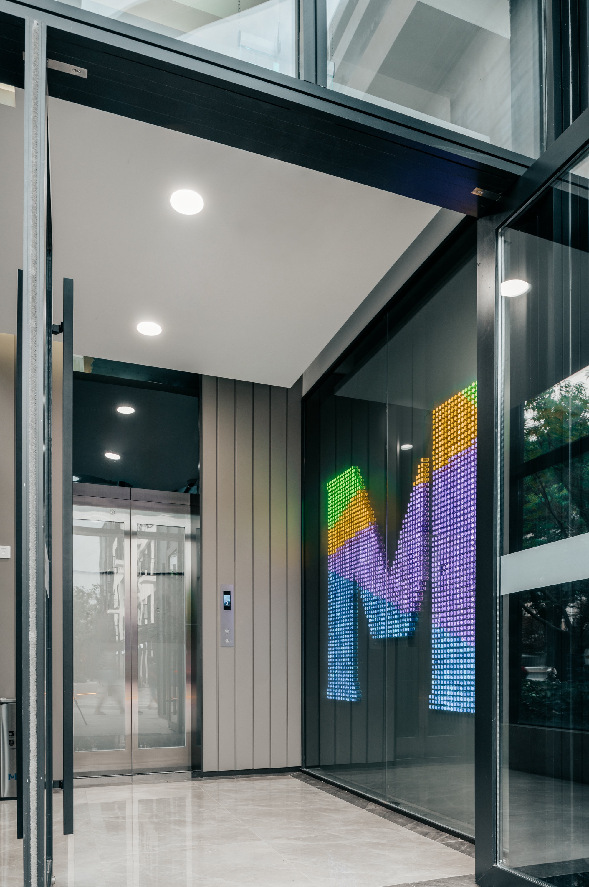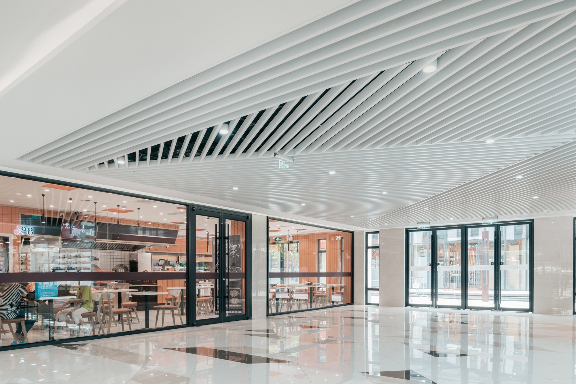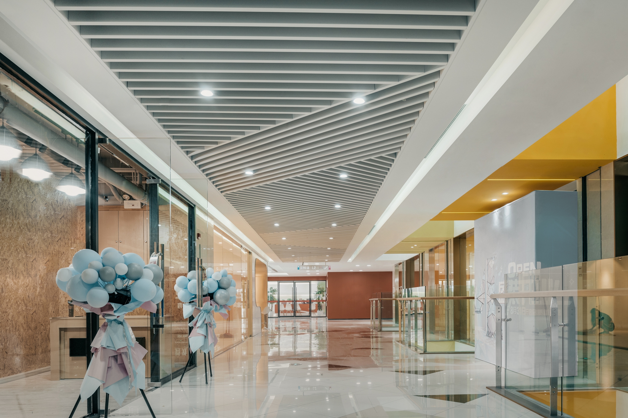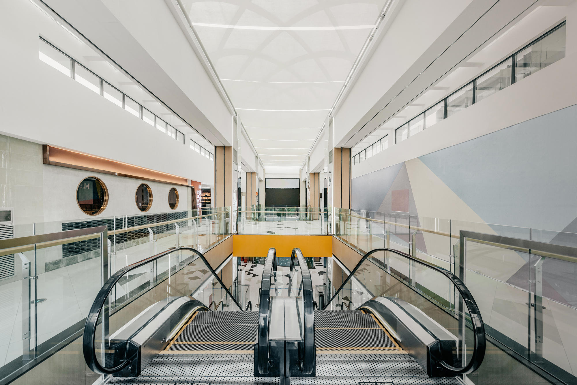 空间布局:设置玻璃采光顶,提高建筑的自然采光率和通透性,使空间进一步拉伸和扩大,极大程度地将空间美的一面展现出来