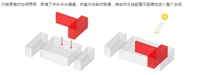 打破原有的空间界限,新增了多处采光通道,将室内与自然联通,使自然光线能毫无阻碍地进入整个空间 -