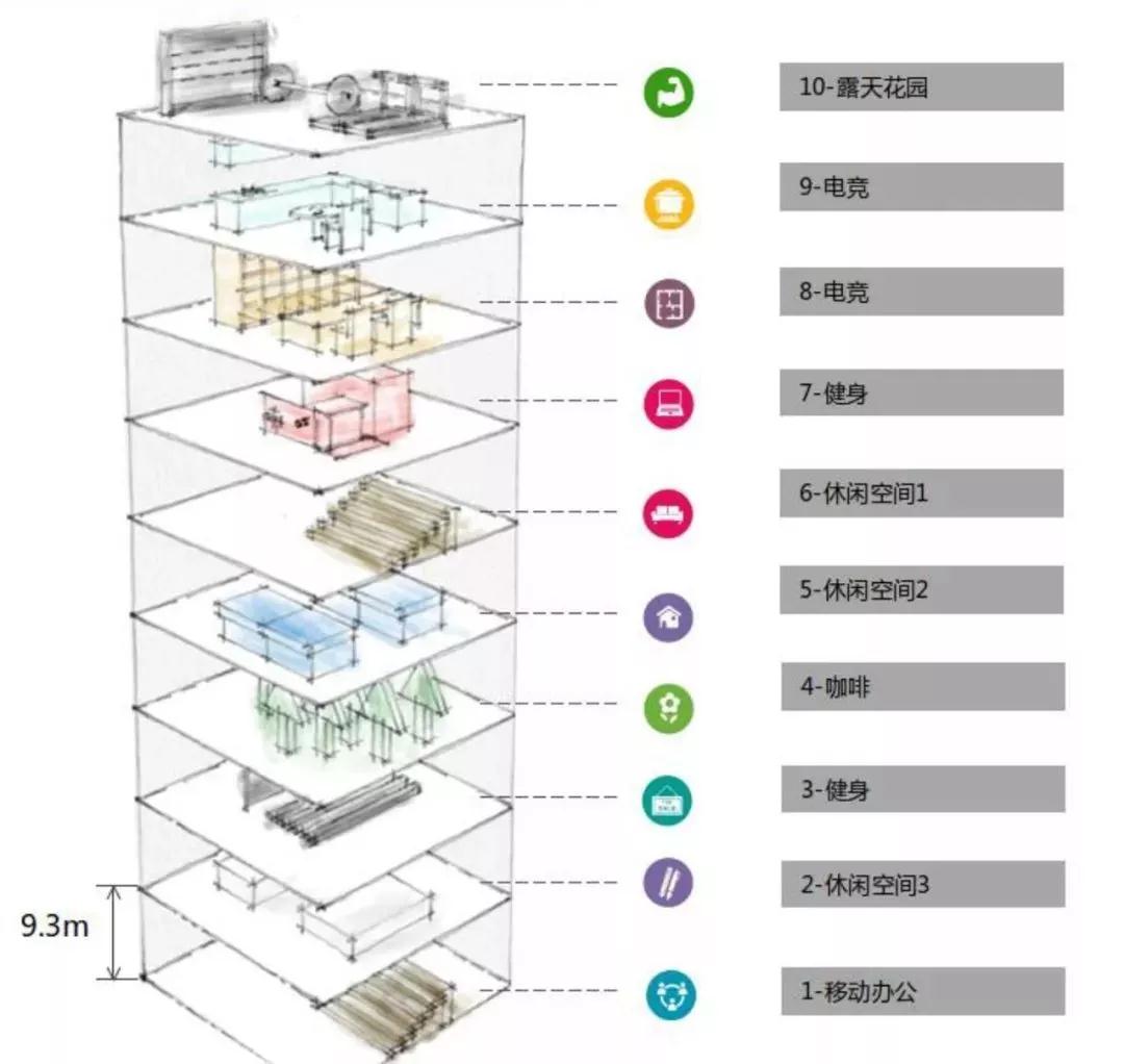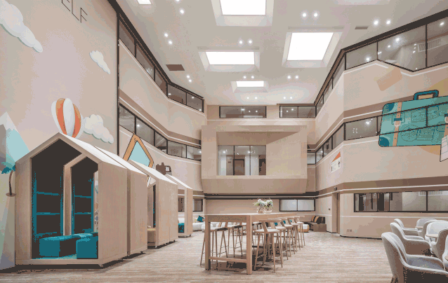 采用新颖的垂直城市客厅设计,以“室内空间共享”的概念实现生态共享,创新设计移动办公、电子竞技、休闲娱乐、健身中心等,为公寓的住户提供更多的交流场所。