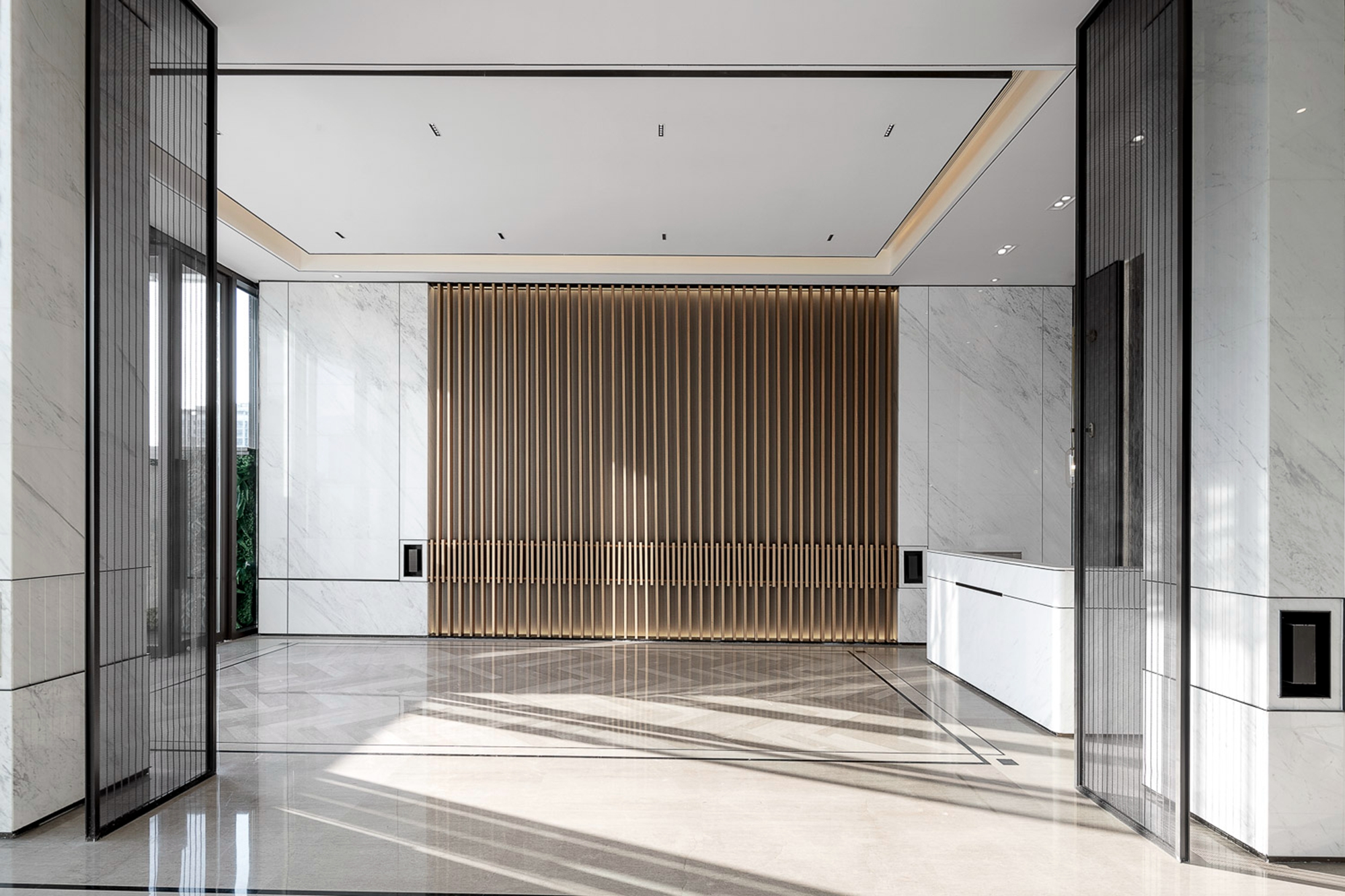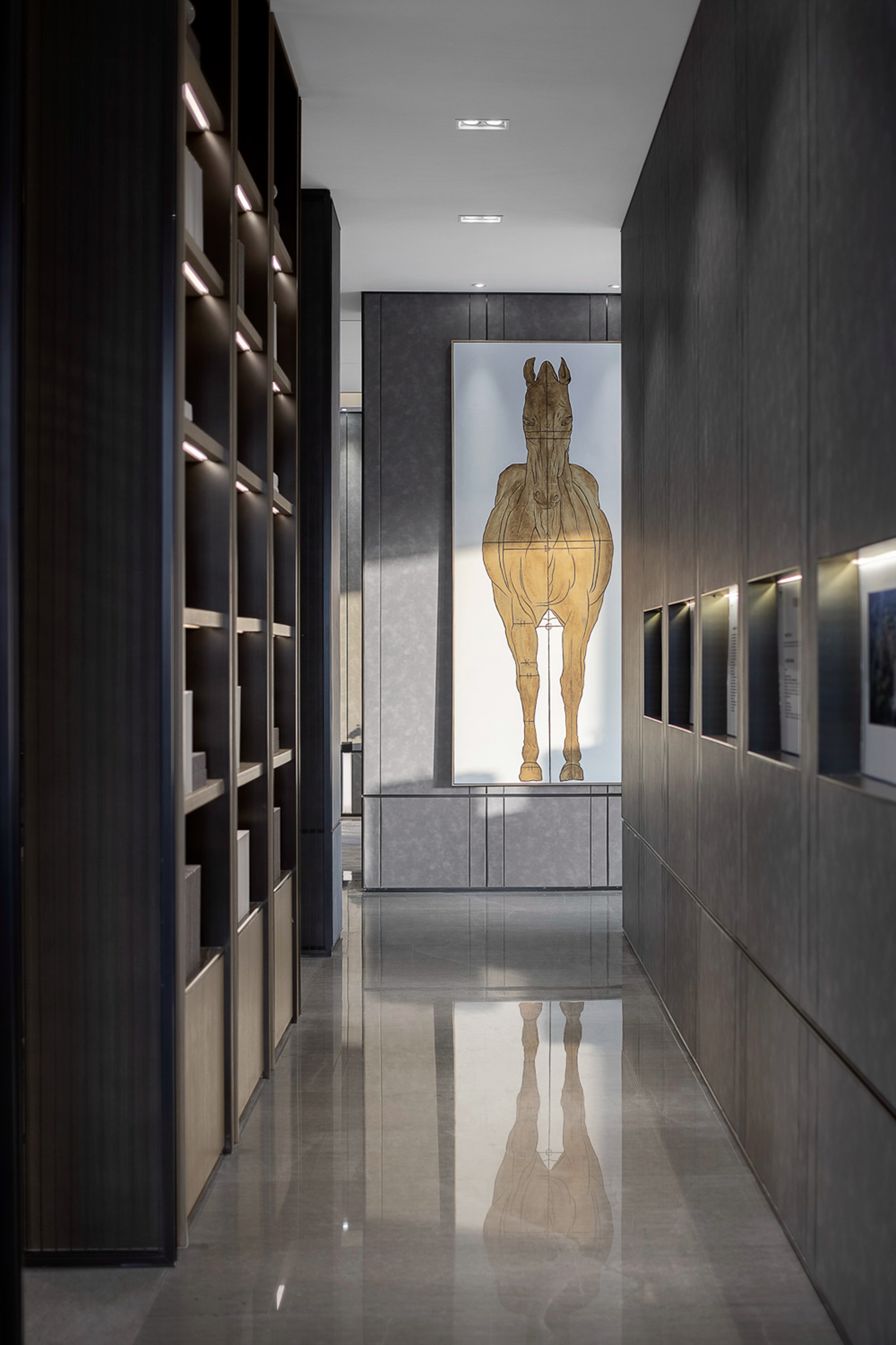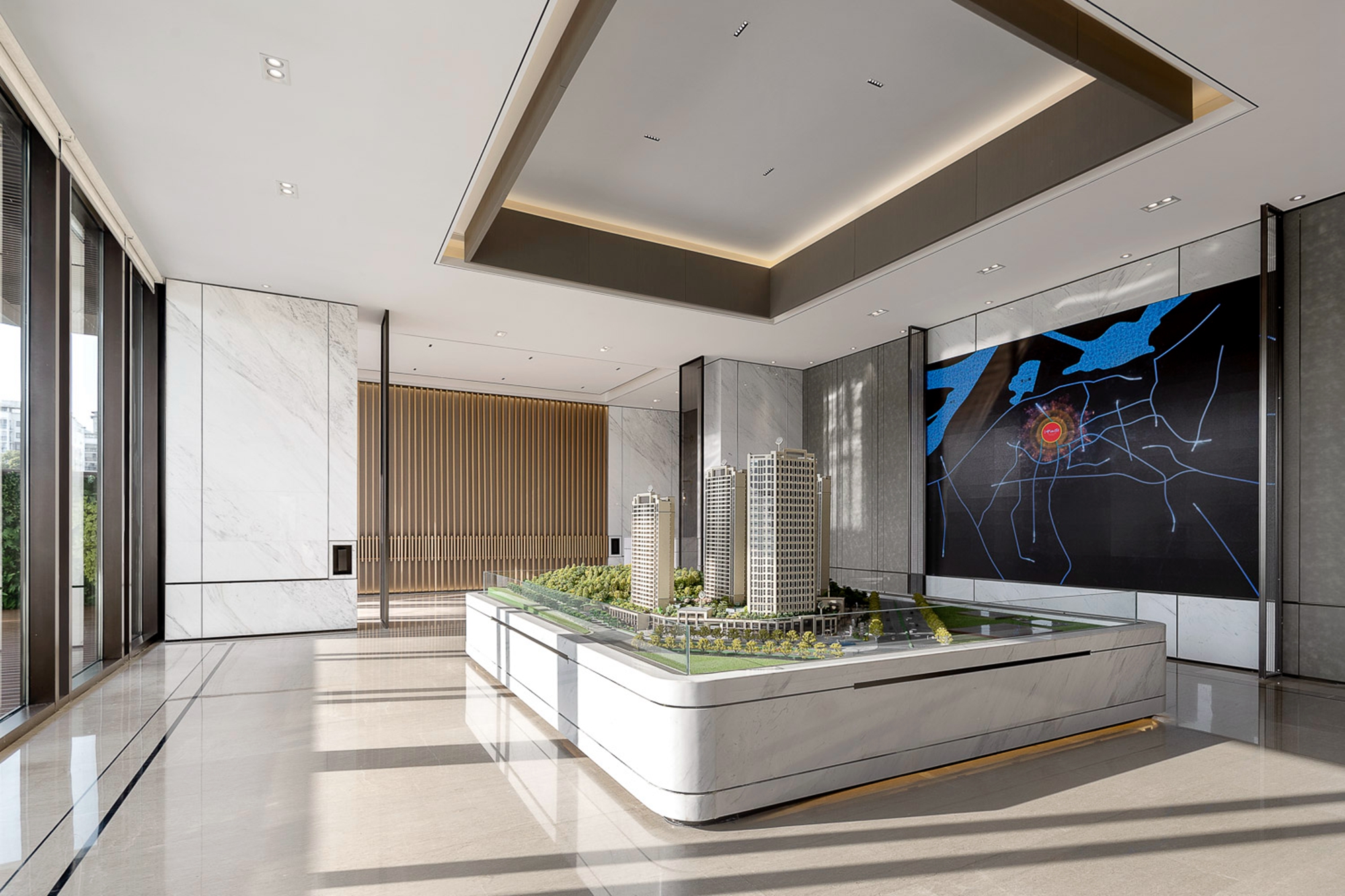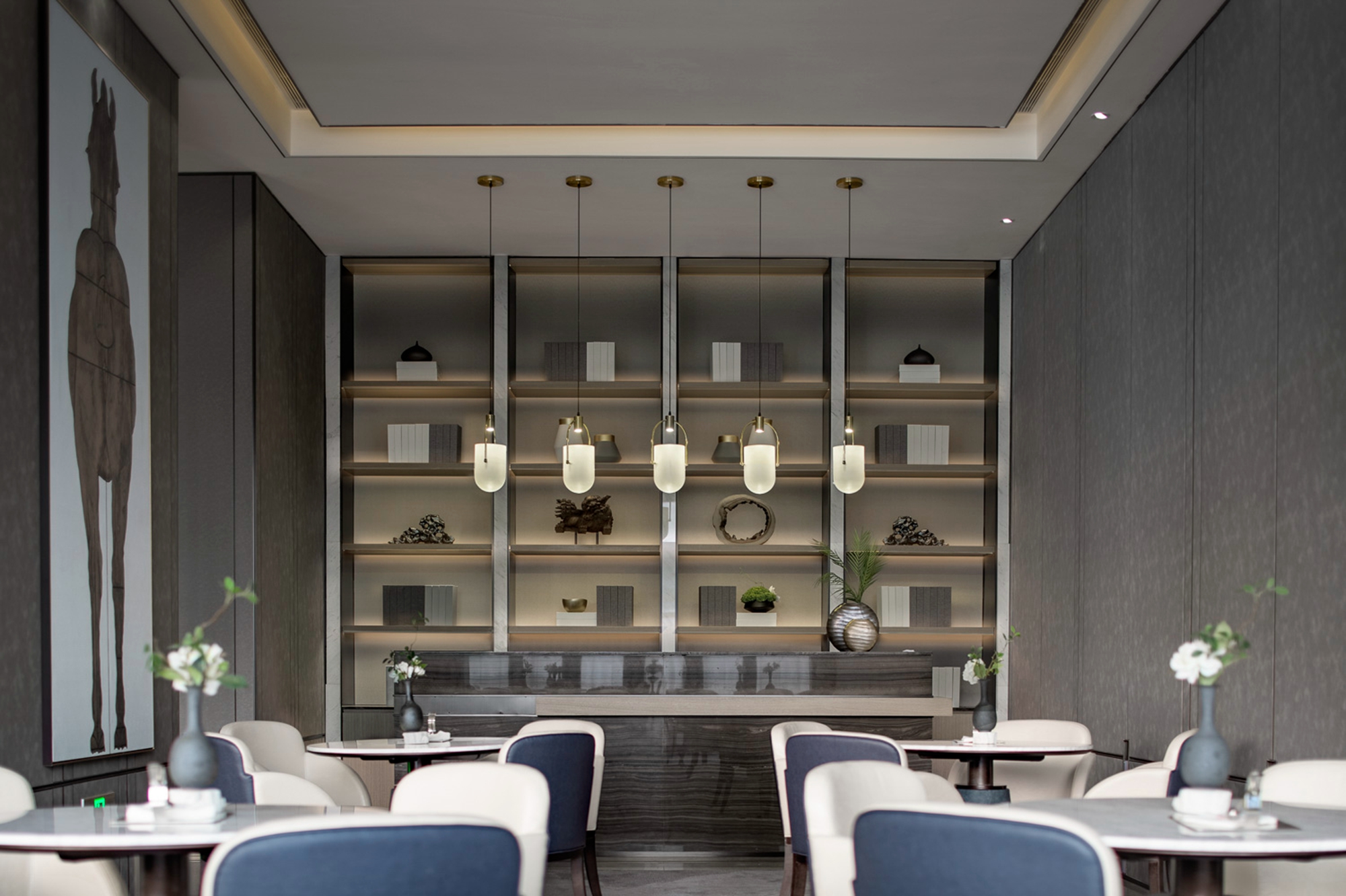 空间布局:空间形式使视线得以延展,不用过多的装饰,使空间显现出现代东方美学内敛的气质。