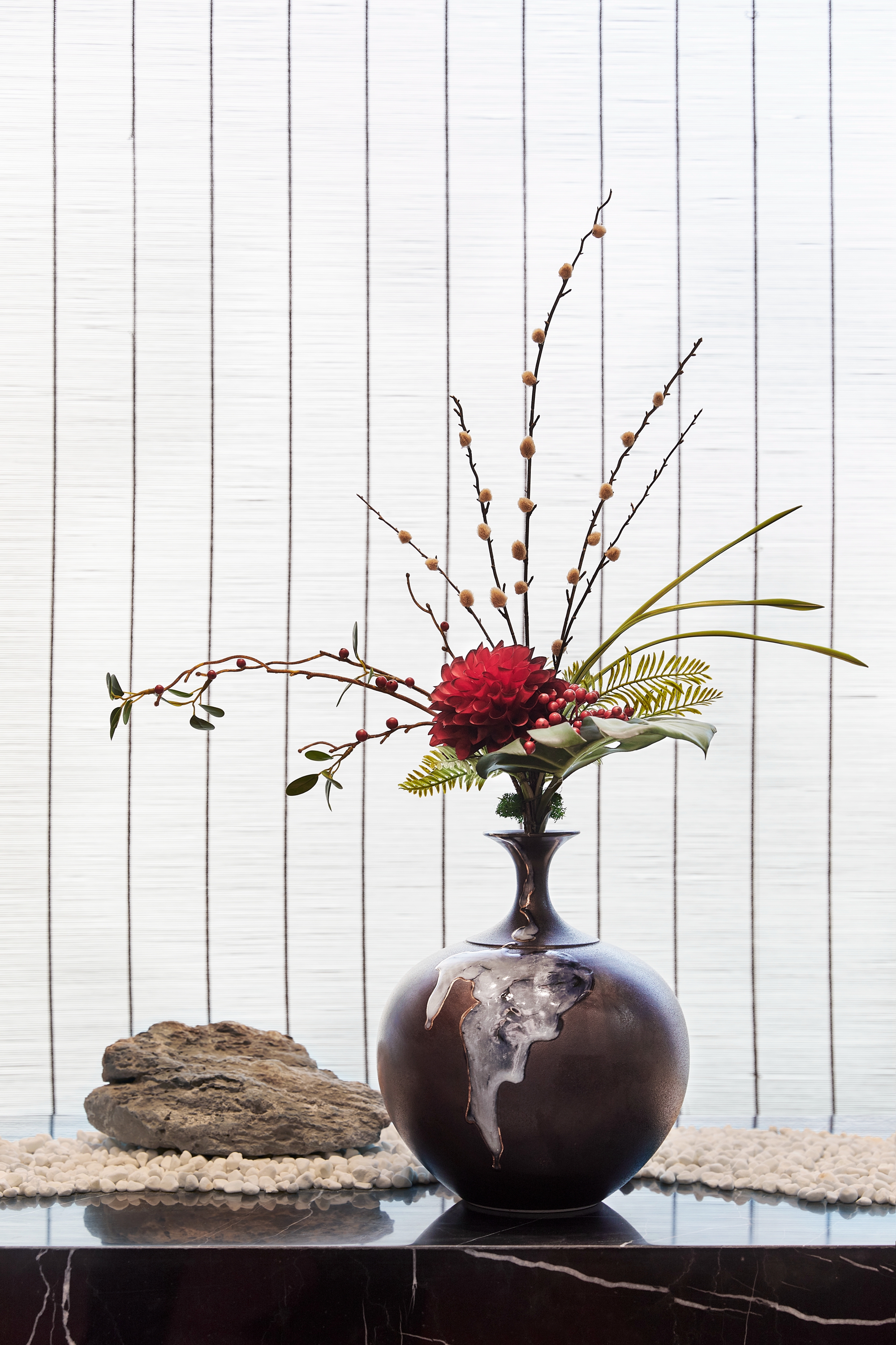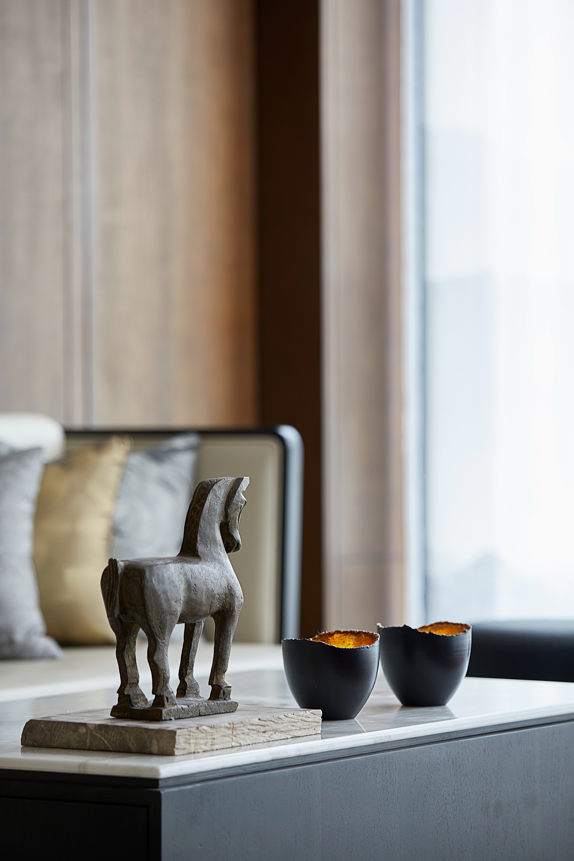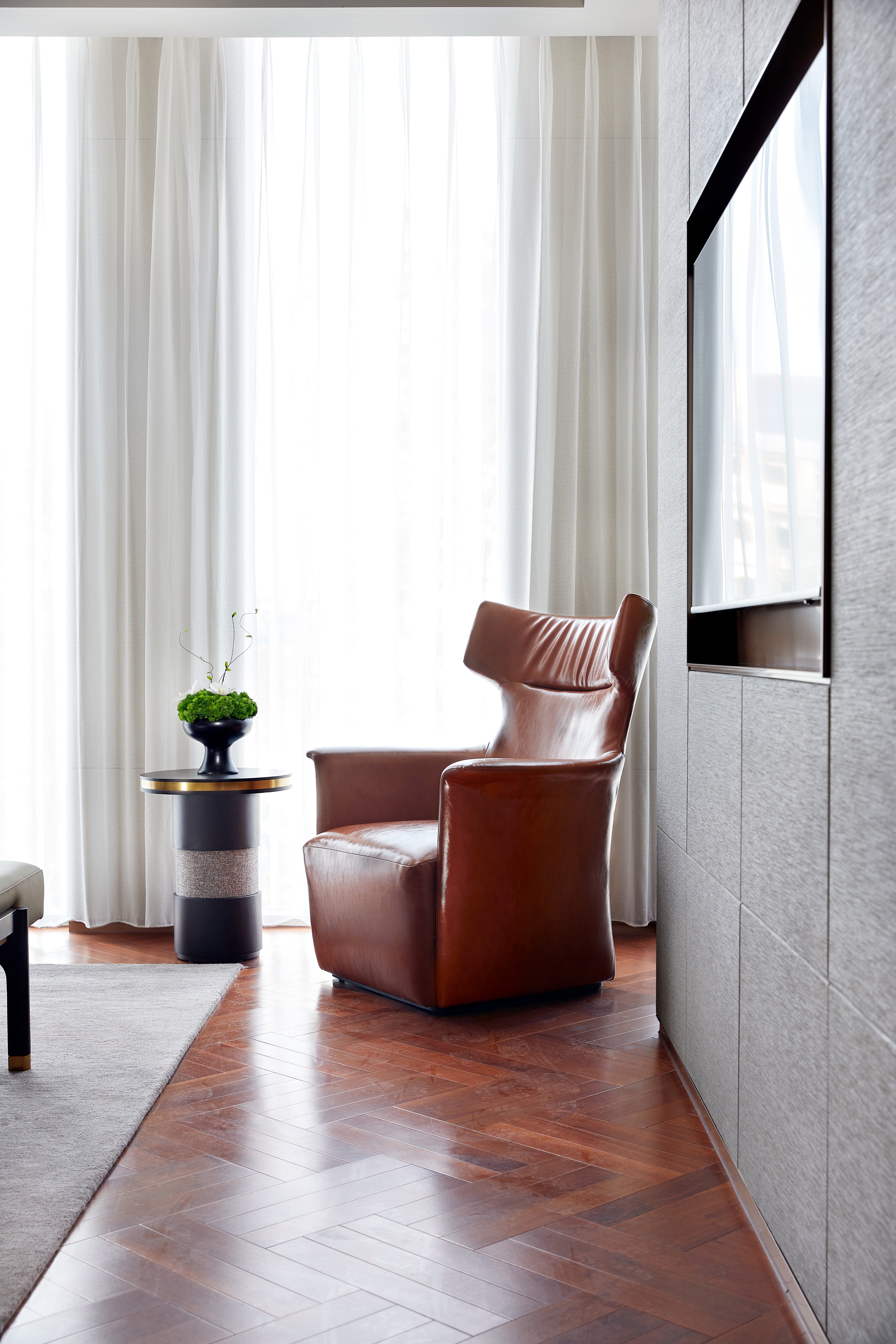 设计师以不凡的空间场景布置,室内真正的奢华不是流于表面,而是每个细节都经得起推敲。随着光影观赏天花背景之时,仿佛尘缘中琴声,月皎波澄。心旷神怡之际,耳边一阵微风忽起伏。悠悠扬扬,一种情韵却是令人回肠荡气。东方审美与情趣在视线延伸中娓娓道来,步移景异。客房中恰到好处的那抹红色很好的体现出淡妆浓抹总相宜的意境